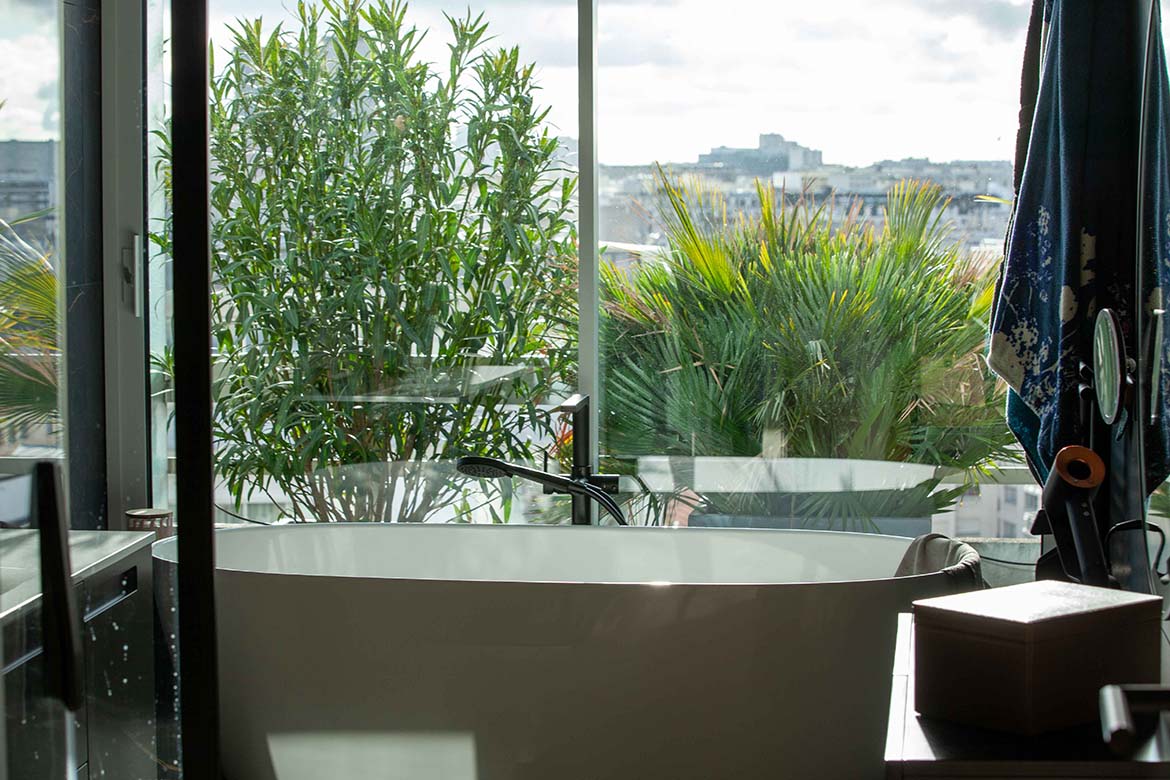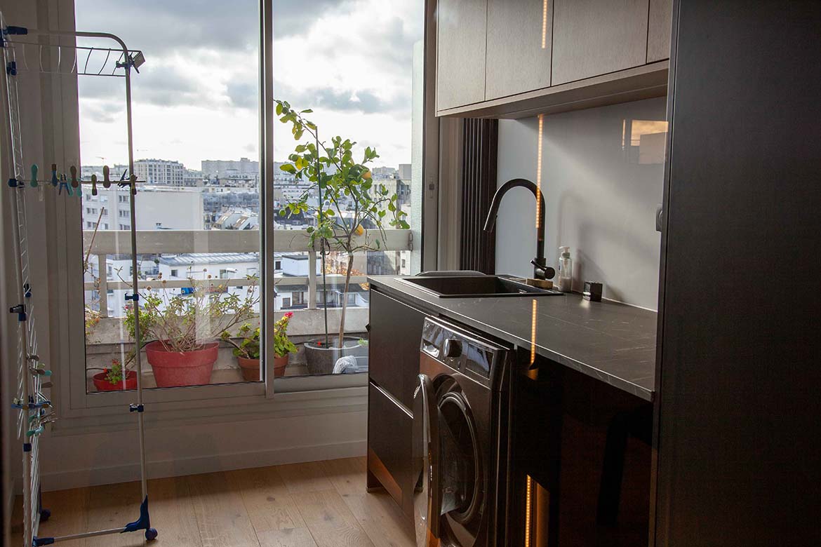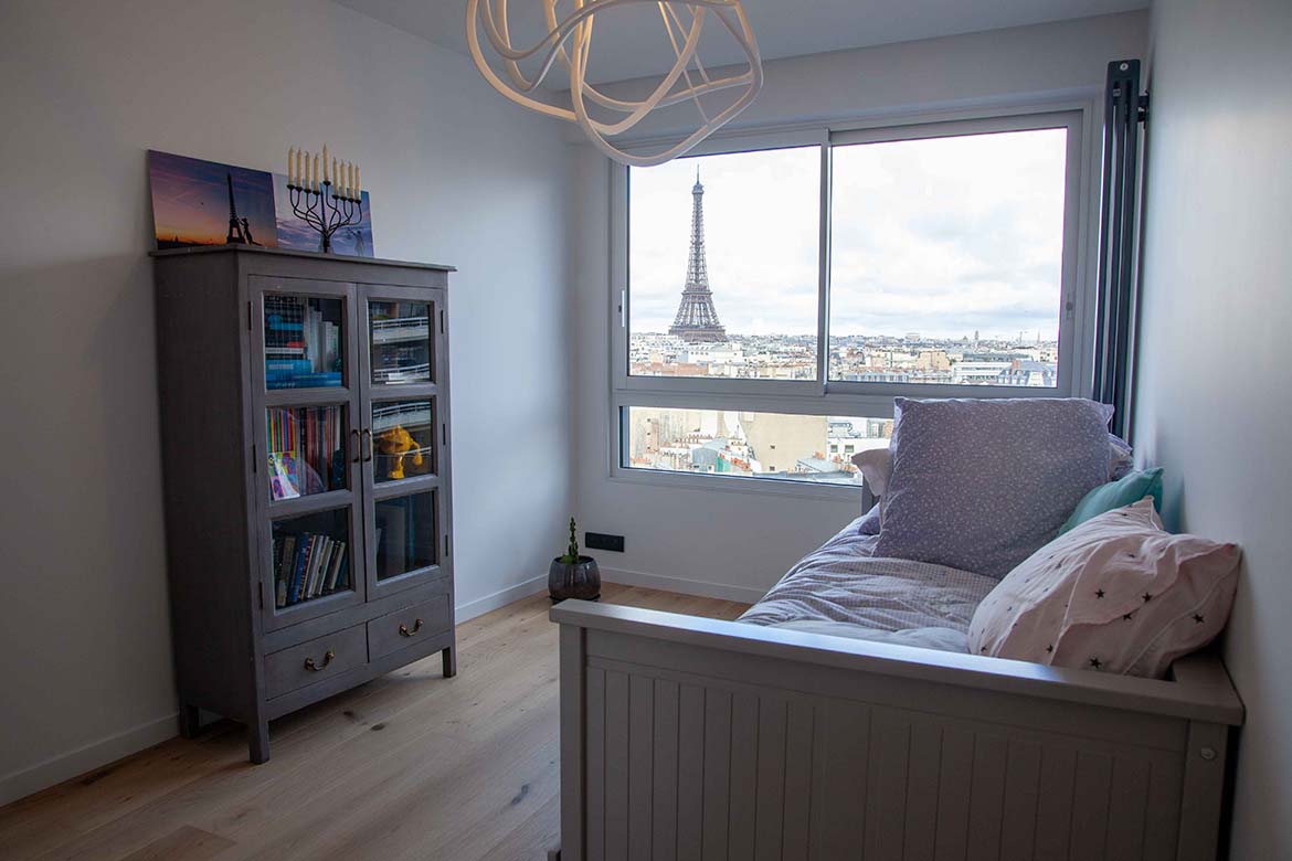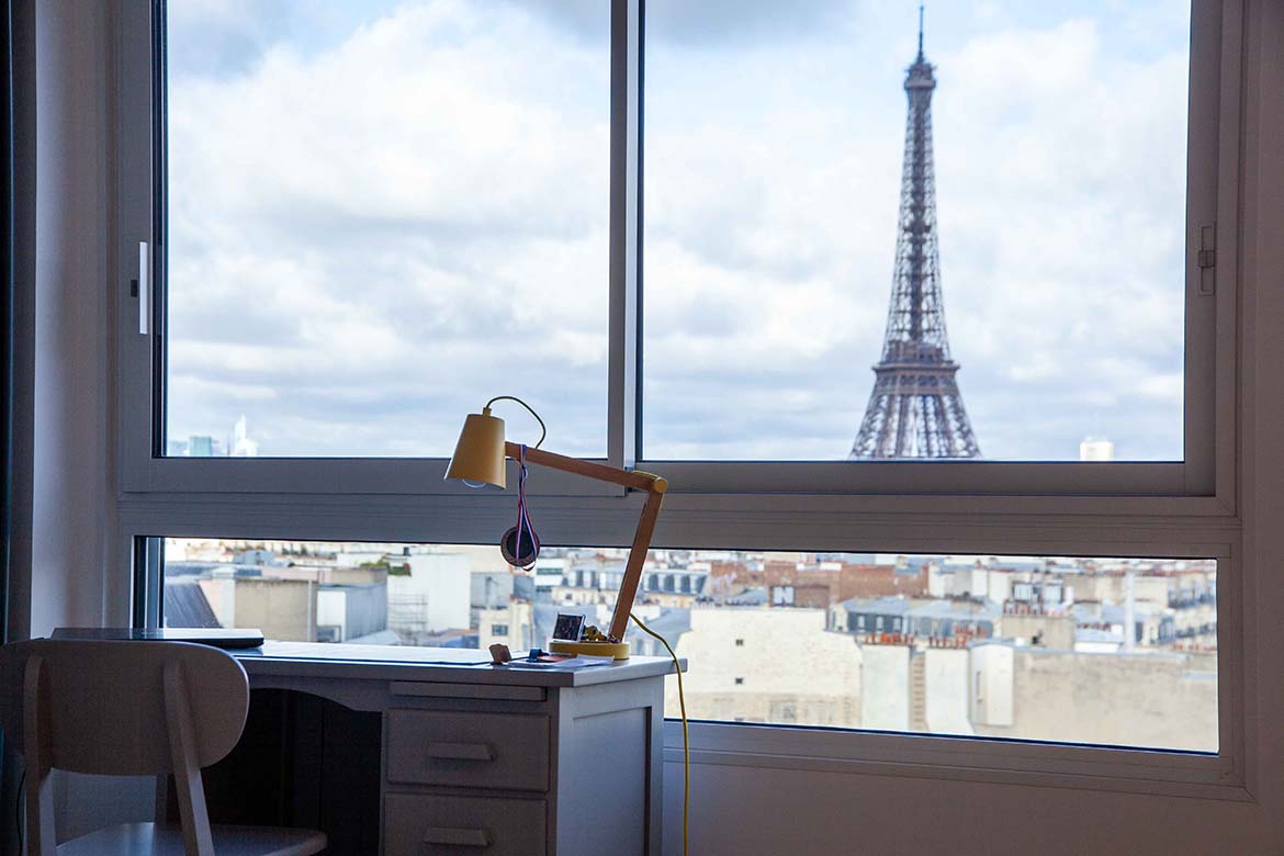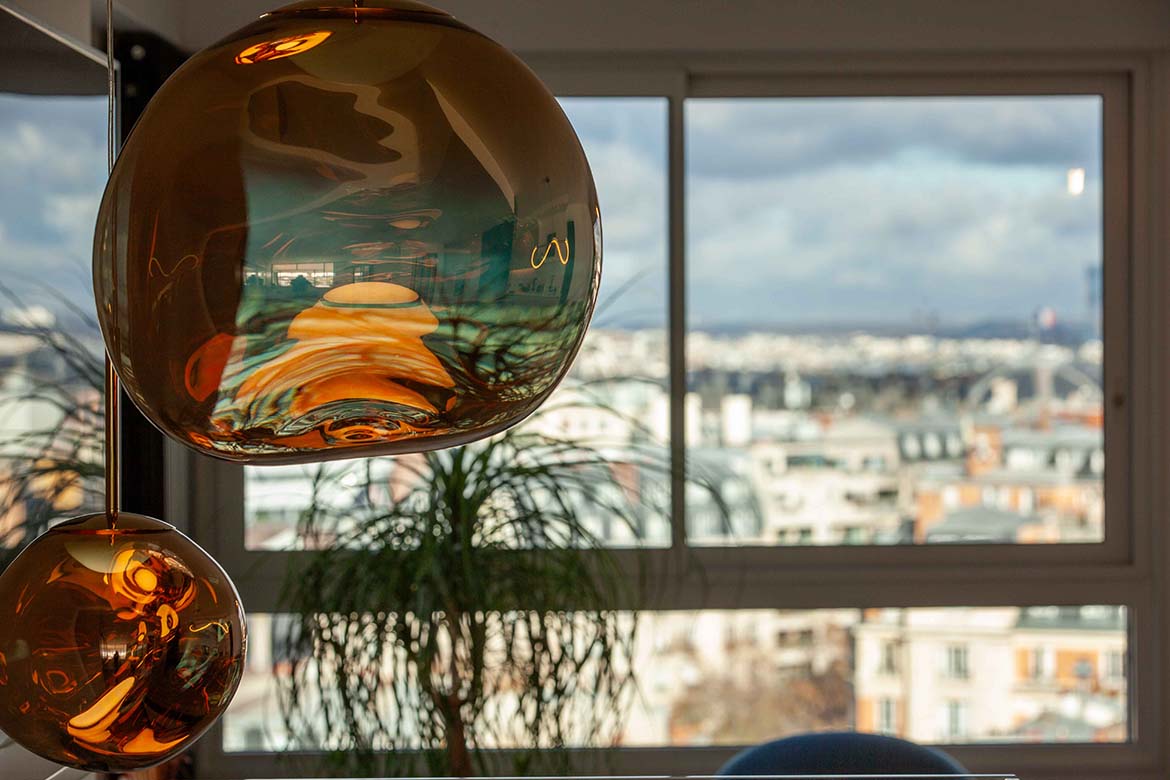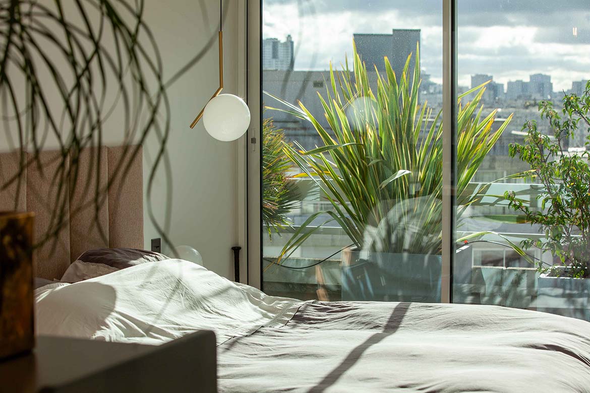 Appartement en duplex dans une résidence originale et emblématique des années 70. L’appartement est un écrin de douceur et de lumière. Il offre une belle terrasse avec vue sur les toits de Paris et sa majestueuse Tour Eiffel. Ce rooftop perché au 13e étage offre un temps suspendu.
