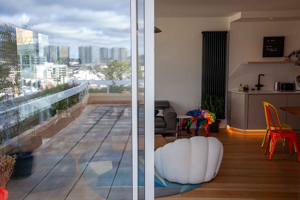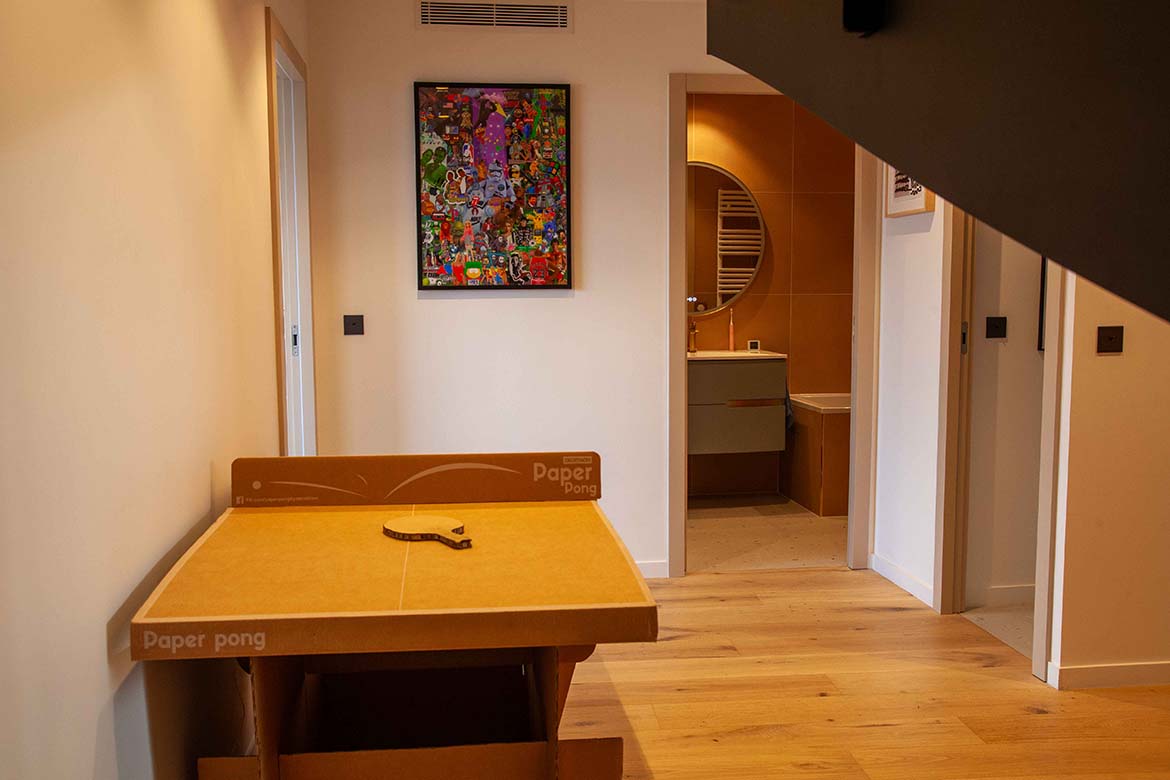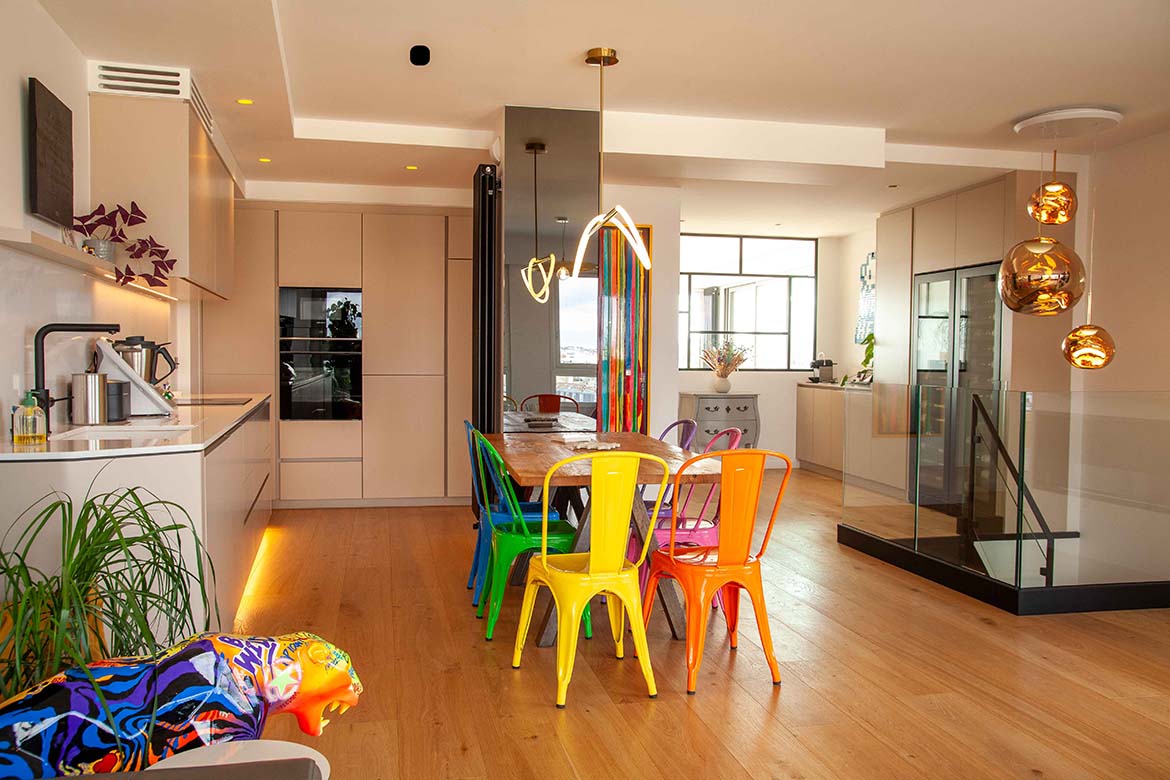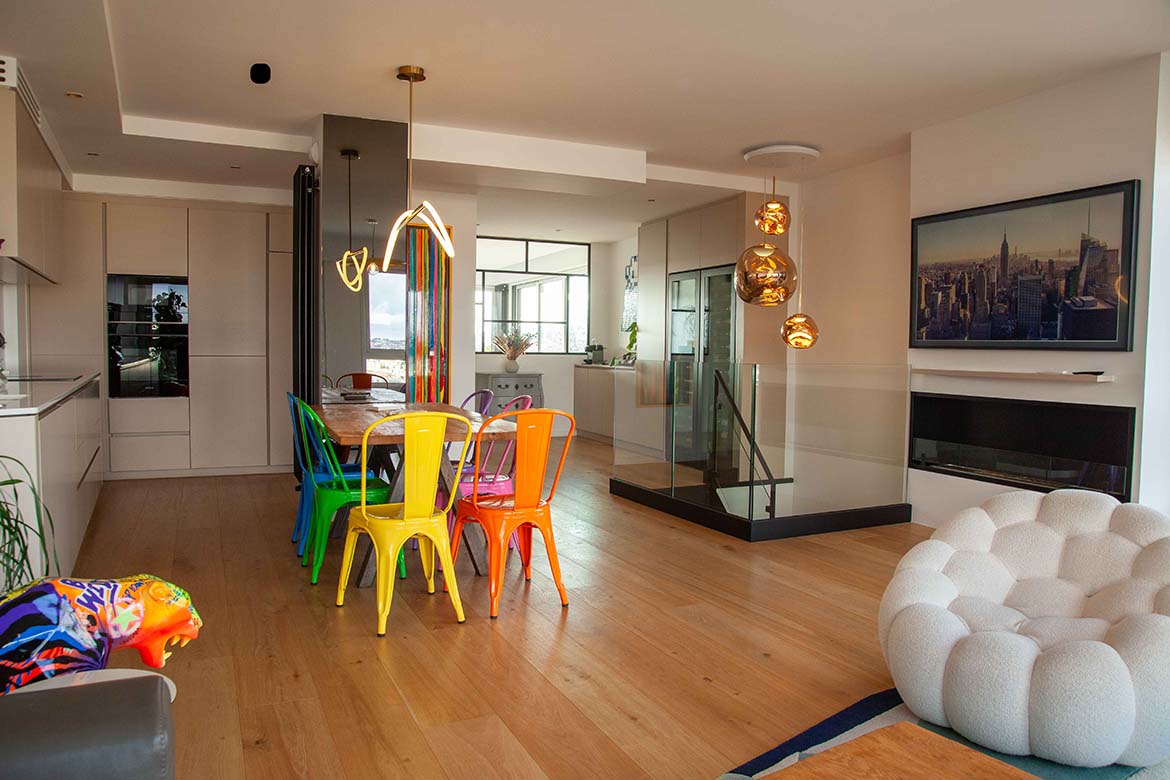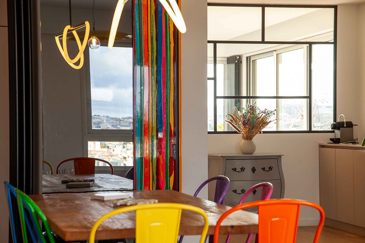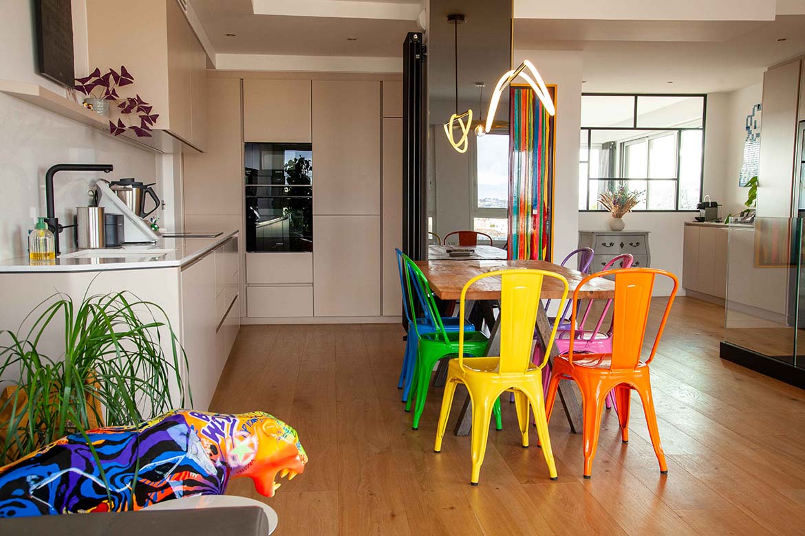 Appartement en duplex dans une résidence originale et emblématique des années 70. L’appartement est un écrin de douceur et de lumière. Il offre une belle terrasse avec vue sur les toits de Paris et sa majestueuse Tour Eiffel. Ce rooftop perché au 13e étage offre un temps suspendu.