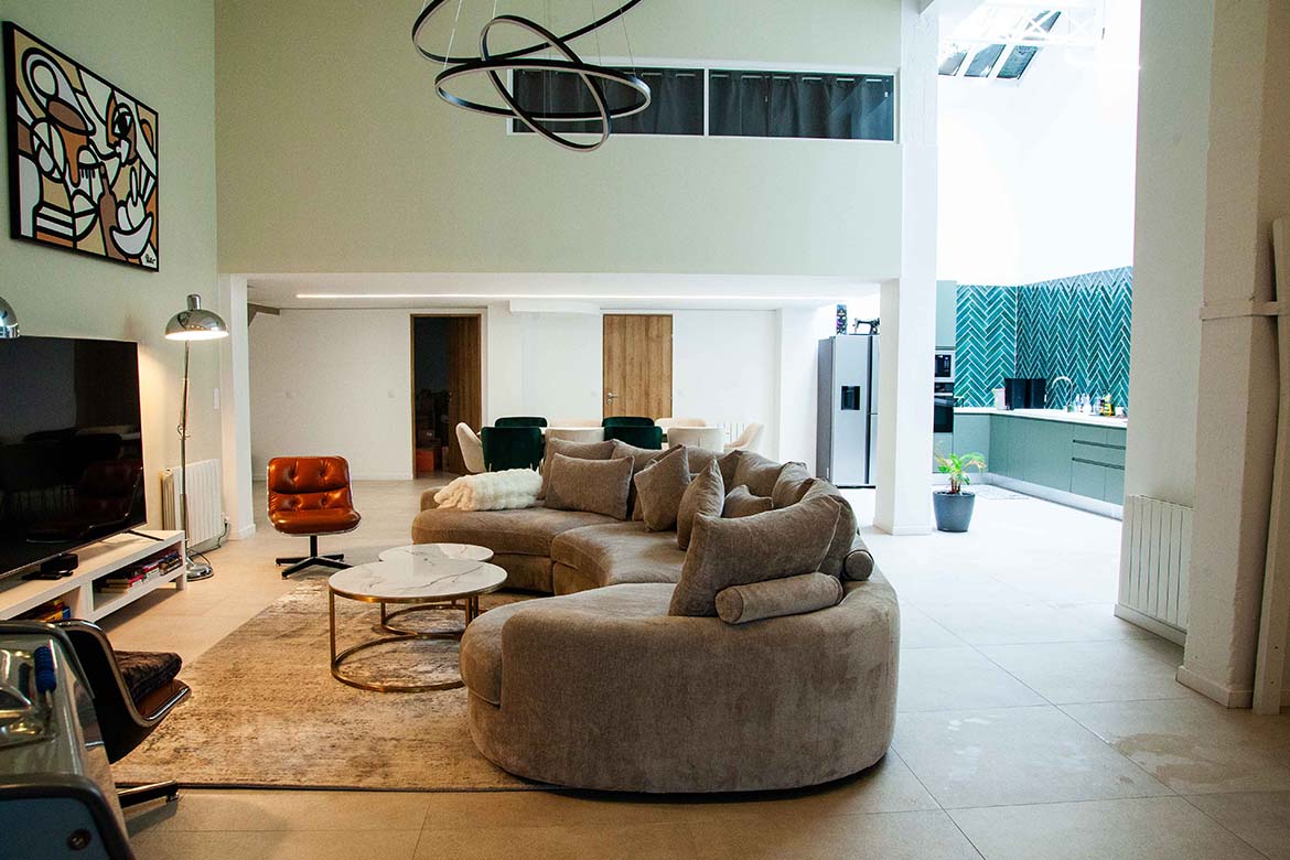 • Style industriel moderne, lignes épurées et volumes ouverts