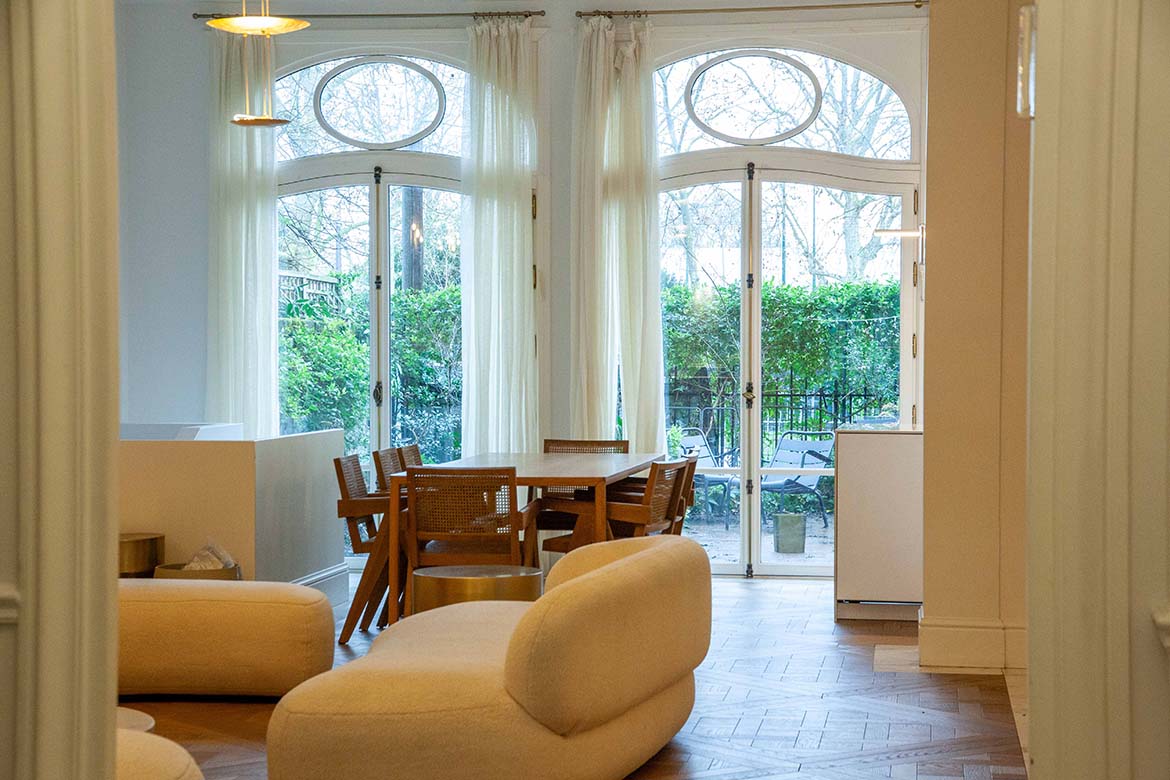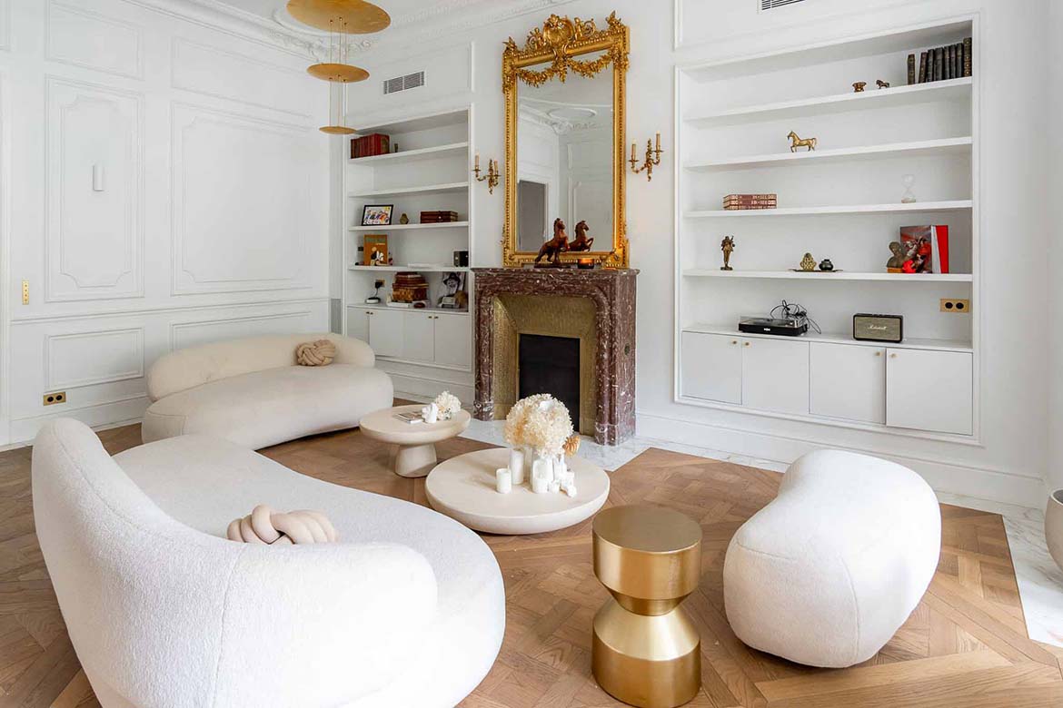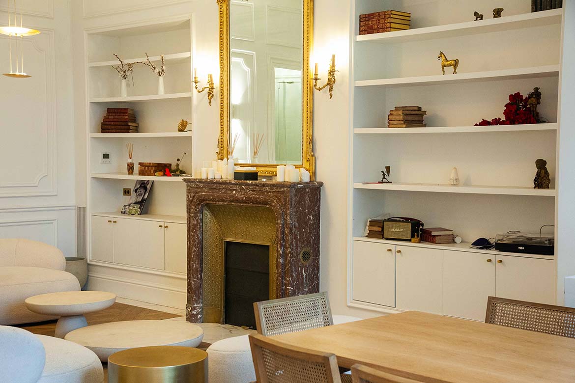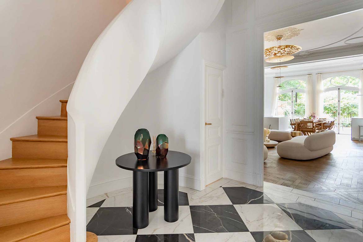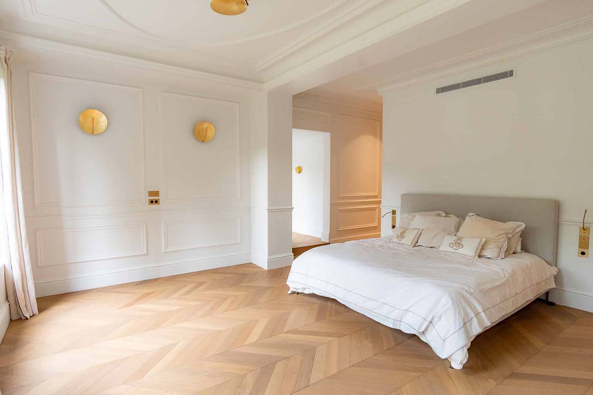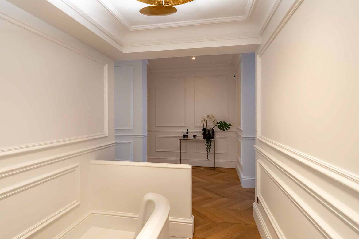 Dans le très chic 16ᵉ arrondissement de Paris, au cœur d’une voie privée classée au patrimoine — où se dresse l’immeuble de Marcel Pagnol, mais également des artistes, familles royales et écrivains — ce somptueux appartement haussmannien de 280 m² marie avec élégance le cachet historique et une esthétique contemporaine minimaliste. Ce triplex d’exception, rare et sophistiqué, est idéal pour vos productions audiovisuelles, shootings de mode, publicités haut de gamme ou événements exclusifs. Le rez-de-chaussée comprend un grand salon avec cheminée, moulures et miroir doré, ouvert sur une cuisine, salle à manger baignées de lumière, avec accès à une terrasse végétalisée. Un salon TV dans l’enfilade de l’entrée complète les espaces de réception.