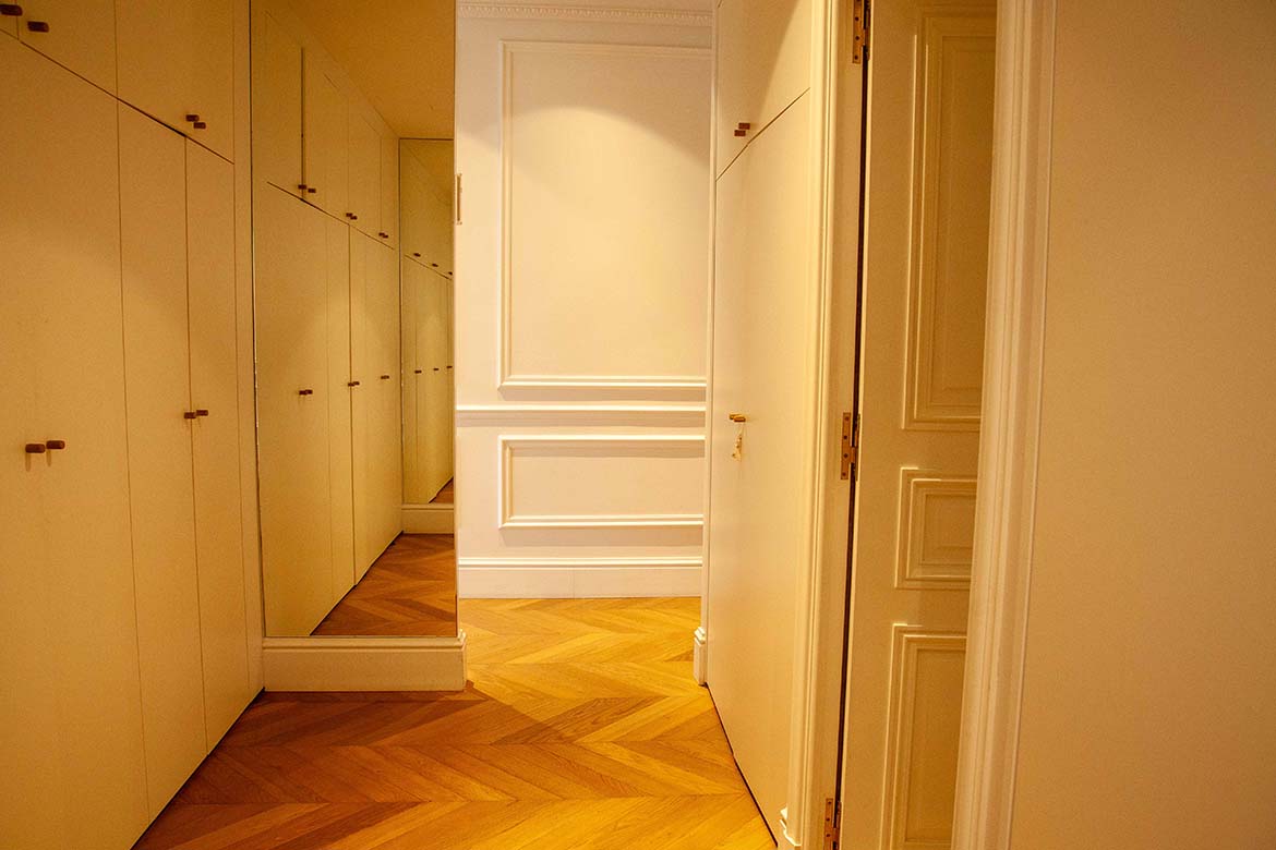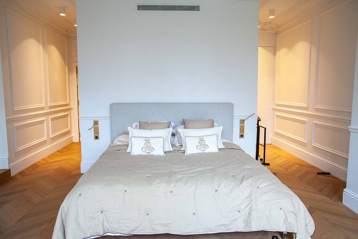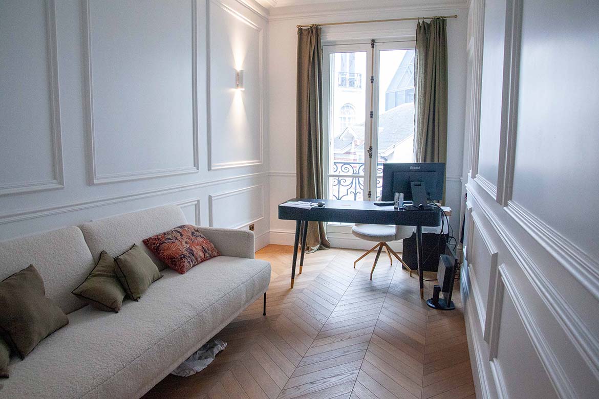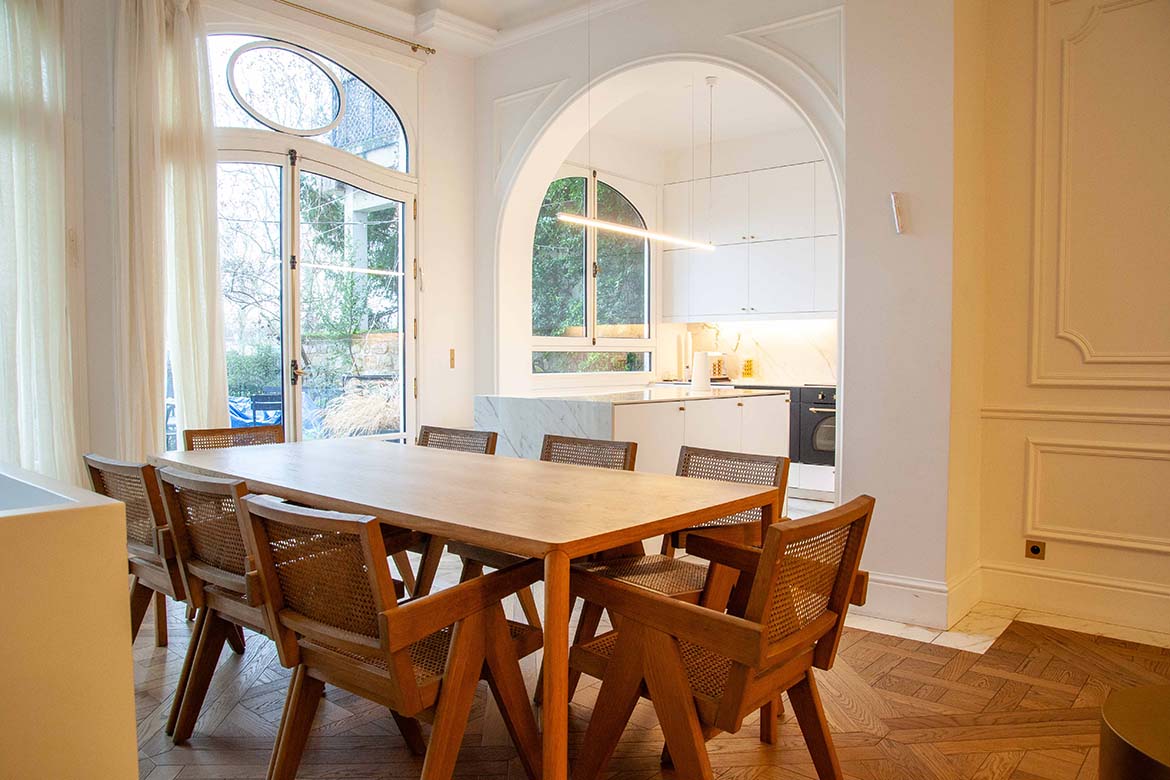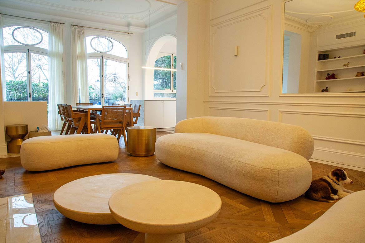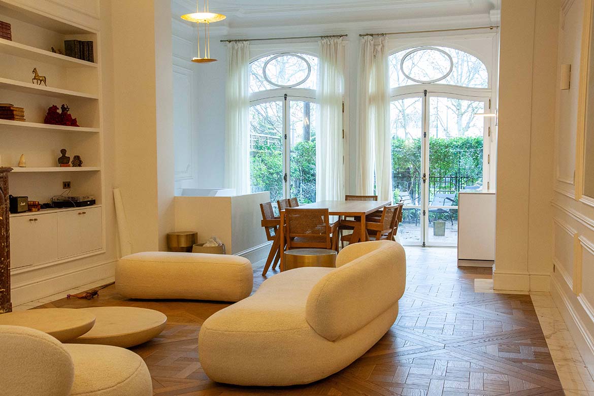 Dans le très chic 16ᵉ arrondissement de Paris, au cœur d’une voie privée classée au patrimoine — où se dresse l’immeuble de Marcel Pagnol, mais également des artistes, familles royales et écrivains — ce somptueux appartement haussmannien de 280 m² marie avec élégance le cachet historique et une esthétique contemporaine minimaliste. Ce triplex d’exception, rare et sophistiqué, est idéal pour vos productions audiovisuelles, shootings de mode, publicités haut de gamme ou événements exclusifs. Le rez-de-chaussée comprend un grand salon avec cheminée, moulures et miroir doré, ouvert sur une cuisine, salle à manger baignées de lumière, avec accès à une terrasse végétalisée. Un salon TV dans l’enfilade de l’entrée complète les espaces de réception.