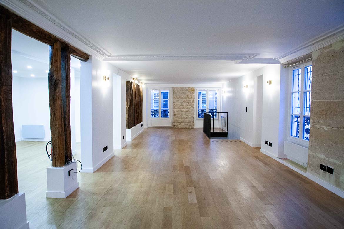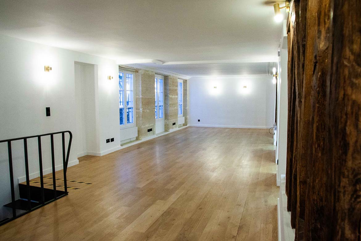 Local sur rue entièrement rénové de 525m2, situé au RDC, 1er étage et sous-sol . Grandes baies vitrées en façade. Parquet en chêne massif, cuisine équipée, grande hauteur (3,60 m), pierres apparentes et poutres bois, Courant faible sur l’ensemble des surfaces. Double accès (sur cour et rue). Ce local, situé dans un ilot semi piéton, est parfait pour représenter une agence de communication, un bureau d’architecte, ou une galerie d’Art… une boutique…A vous de voir.