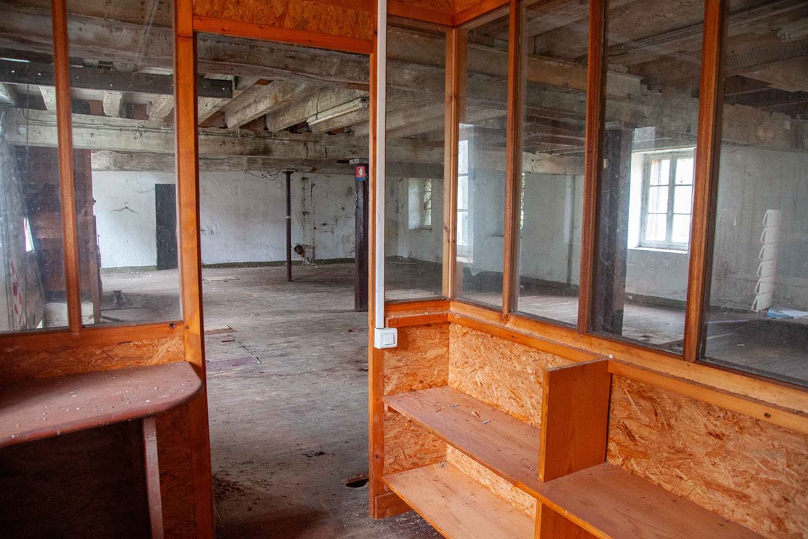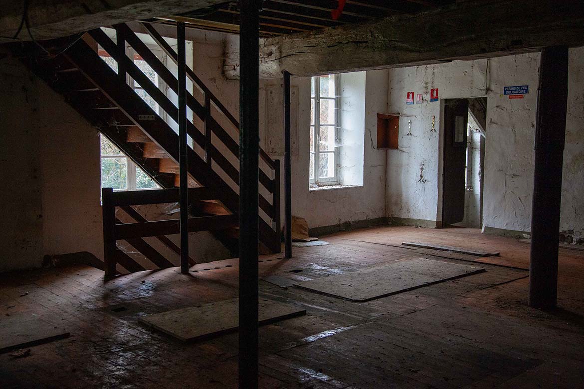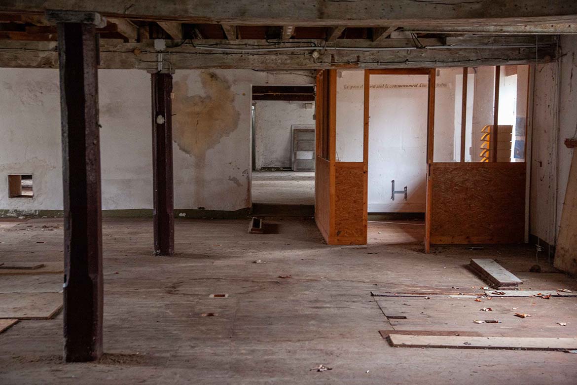 Situé au bord de l’Orge, ce moulin existe depuis plusieurs siècles. En provenance des champs puis des coopératives de Beauce, le grain etait d’abord stocké en silo. Puis, avant d’être broyé, il est amené au bon degré d’humidité par humidification ou séchage (selon les années) et nettoyé des impuretés grossières (cailloux, maïs) par tamisage. Il passe alors par une série de cylindres en acier (pour les farines blanches) ou de meules en pierre (pour les farines bises) et de tamis qui affinent progressivement la farine, séparant l’amande de son enveloppe. Les moteurs étaient situées au rez de chaussée, les cylindres et les meules au premier étage et les tamis au second étage. Le grain, puis la farine, transportés par circuit d’air, circulaient donc plusieurs fois entre le premier et le deuxième étage. Lorsque la farine avait atteint le degré de pureté et de finesse recherché, elle est stockée en silo, puis ensachée ou chargée en vrac dans les camions de livraison. L’activité s’est arrêtée en 2012, mais les lieux témoignent de cette histoire: l’ingéniosité et le travail des hommes. Aujourd’hui en friche, et promis à une belle reconvertion, ce lieu propose un décor tout a fait exceptionnelle sur les marches de l’Ile de France, pour des films contemporains et pour des films d’époque.