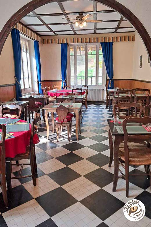 Situé en Auvergne dans les gorges de l’Allier , un ancien hôtel restaurant vintage près du petit village de Prades (avec une petite plage aménagée au bord de l’Allier ainsi que ses jolies orgues basaltiques ) , surnommé le » petit Nice « , dans le cercle de la légende de la Bête du Gévaudan est un lieu chargé d’histoire et de renommée par la venue de Giscard d’Estaing , Fernand Reynaud , Annie Cordy. Ce chalet entouré de montagnes, de forêts, d’une petite source (la merveilleuse), de l’Allier en contre bas est d’une superficie de 650 m2 , comprend 12 chambres ( de quoi loger une petite équipe de tournage !) avec salle de bain privative, 1 salle de restaurant de (70m2) , 1 réception , 1 bar d’époque (21m2) , 1 cuisine professionnelle , une grande terrasse (200m2) qui surplombe les gorges . De par son charme , sa sérénité , son histoire , son environnement nous permet de se délasser , et d’abandonner le stress d’une vie moderne. Derrière un terrain arboré de 6 ha avec sa source la merveilleuse (qui était nationale il y a une centaine d’année) Avant 1900 ce bâtiment était une usine d’embouteillage . L’hôtel a 12 chambres avec salle de bain privative sur 2 étages , au RDC une salle de restaurant de 70 m2 , un bar d’époque ( avant 1900 ) , une pièce de réception , une cuisine professionnelle.