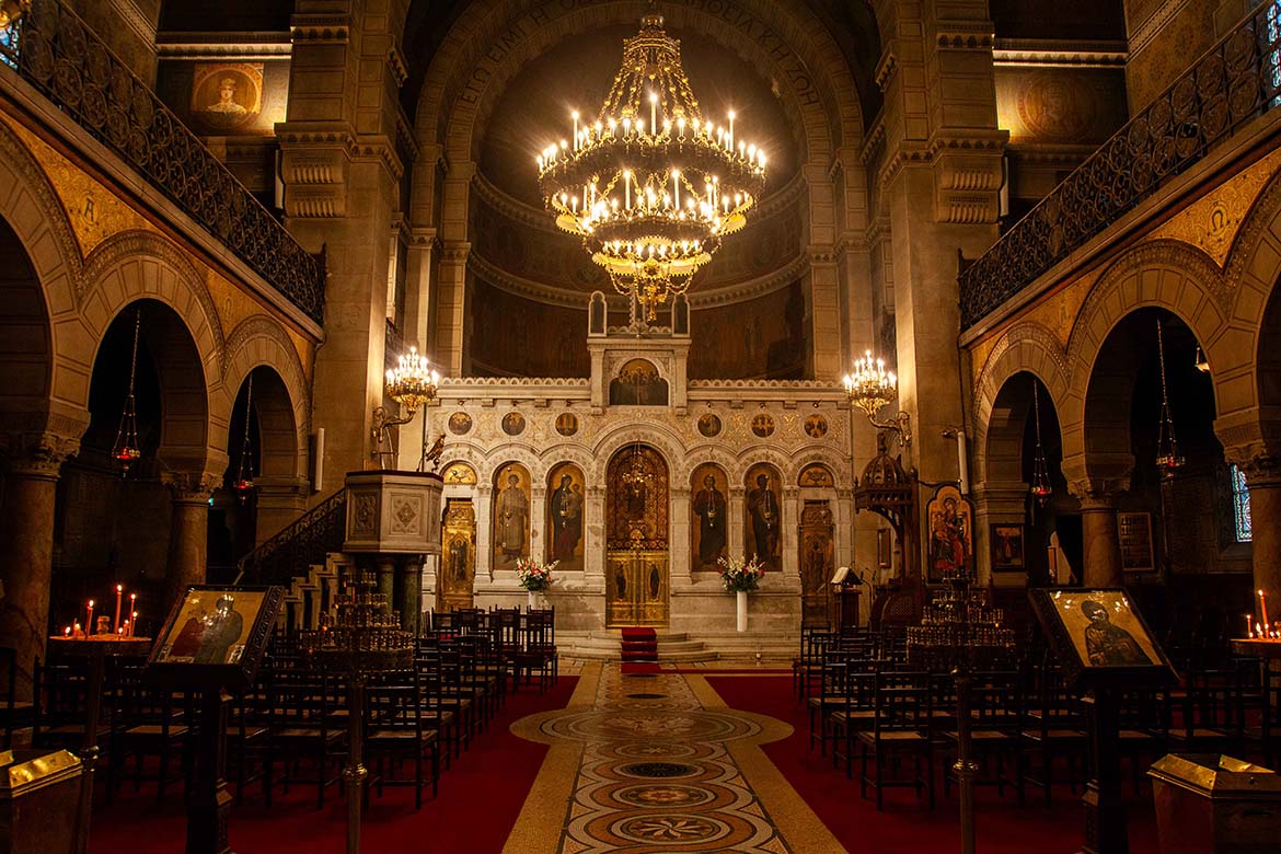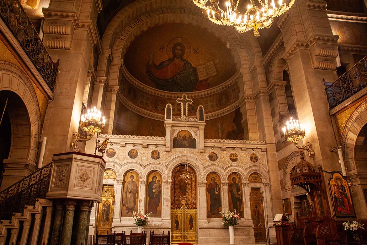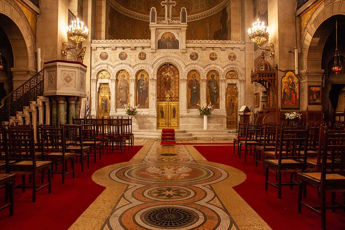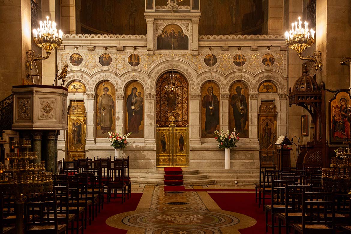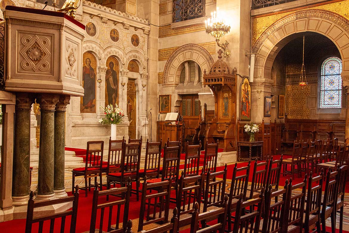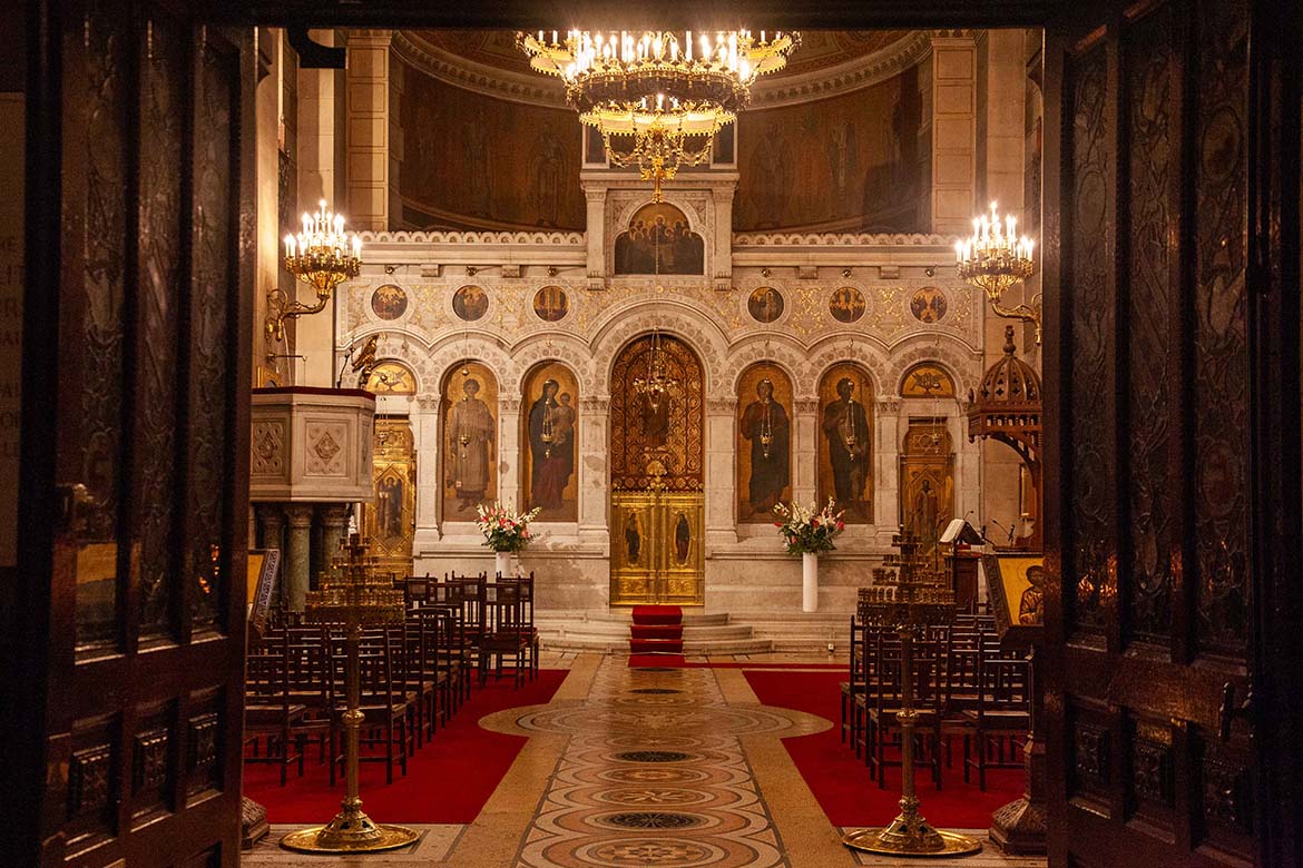 La cathédrale métropolitaine grecque orthodoxe de France est une église majestueuse et accueillante. Nichée dans un quartier paisible et élégant, elle captive fidèles et visiteurs par sa beauté architecturale et son riche patrimoine spirituel. L’église est réputée pour son style byzantin, son dôme majestueux et ses détails extérieurs complexes. À l’intérieur, les murs et le plafond sont ornés de fresques murales colorées et d’icônes représentant de magnifiques scènes bibliques. L’atmosphère lumineuse et paisible invite à la méditation, à la prière et à la contemplation. Un porche permet d’accéder a une cour donnant  sur une salle paroissiale , un bureau d’accueil, et une salle de réunion bibliothèque.