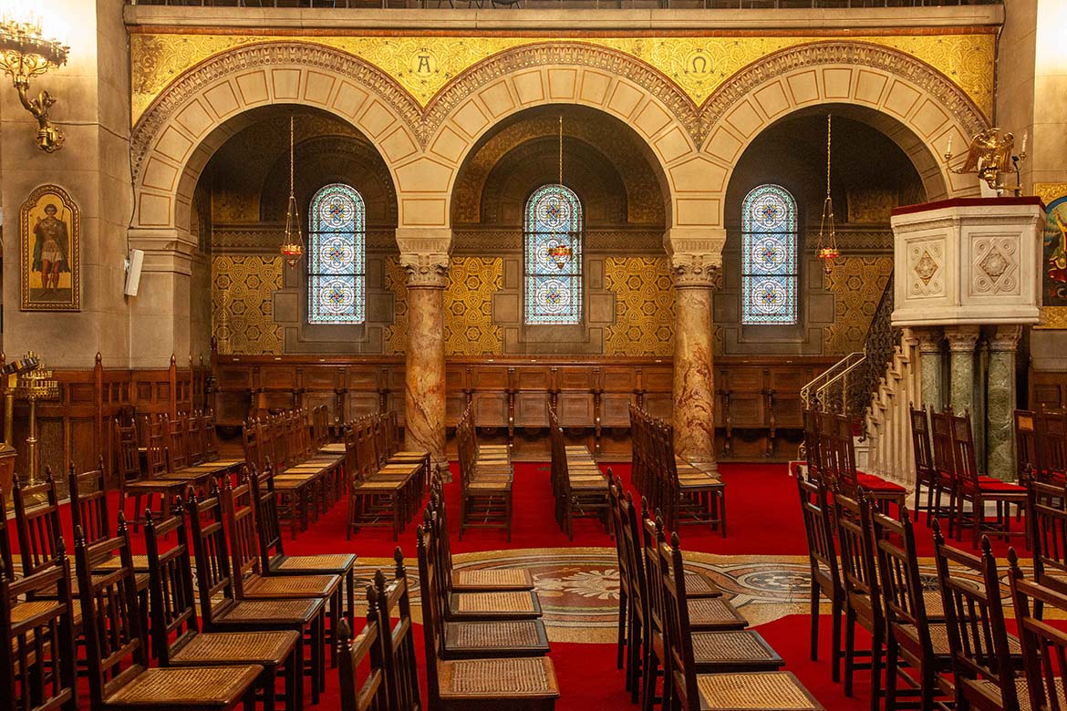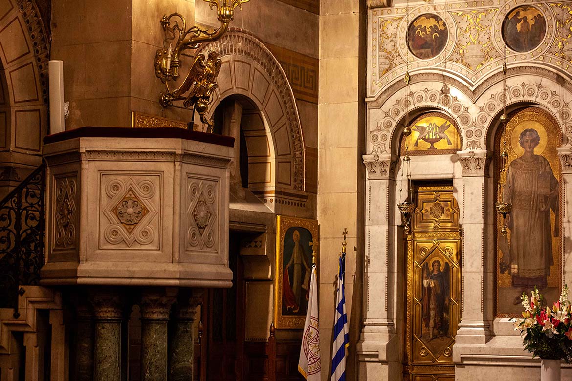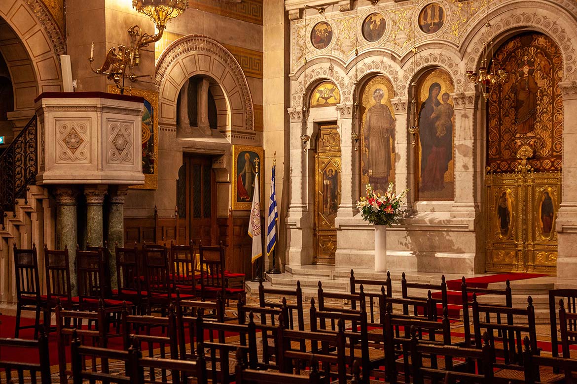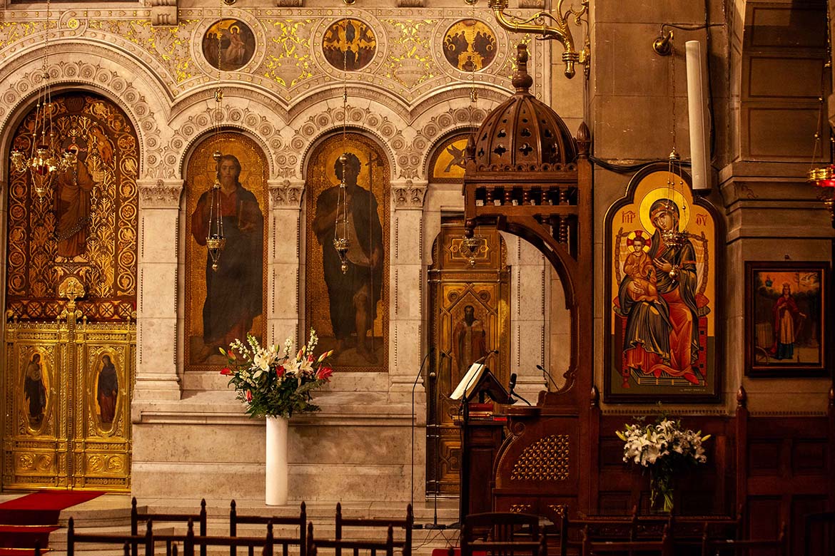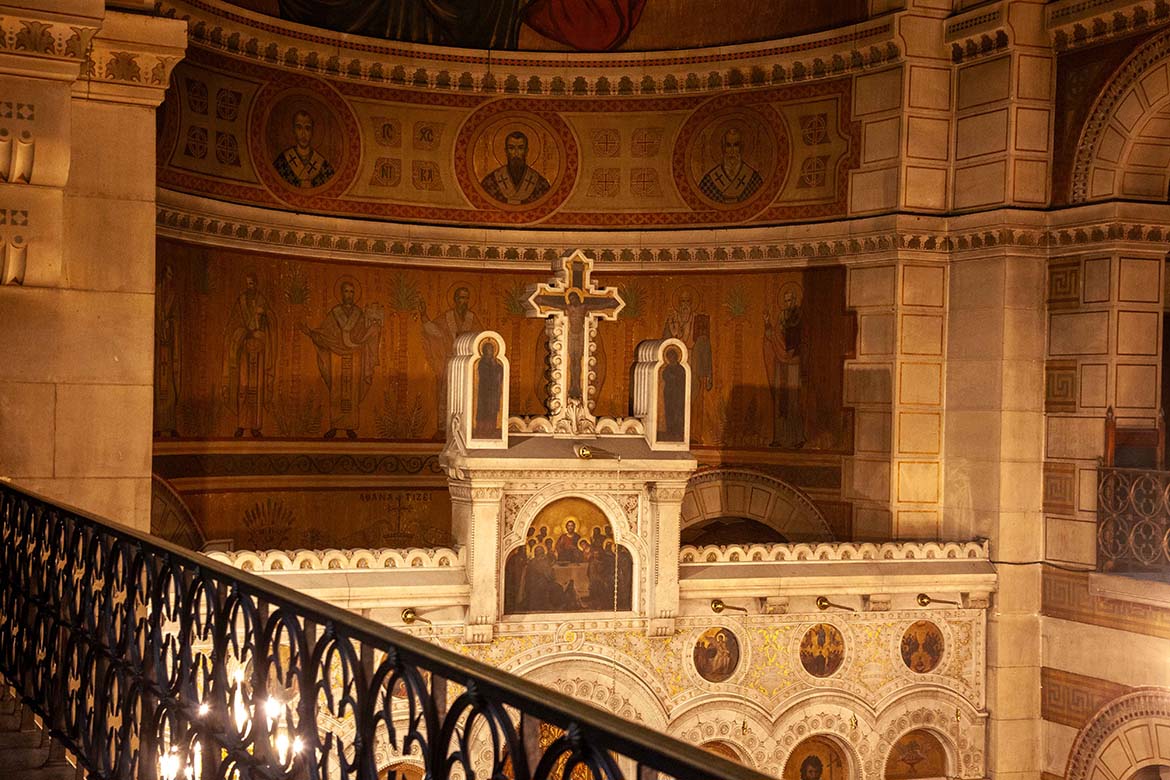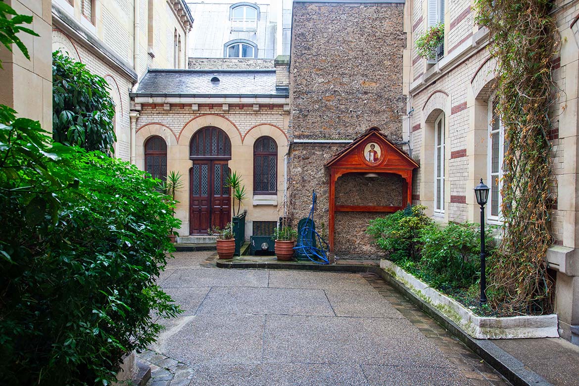 La cathédrale métropolitaine grecque orthodoxe de France est une église majestueuse et accueillante. Nichée dans un quartier paisible et élégant, elle captive fidèles et visiteurs par sa beauté architecturale et son riche patrimoine spirituel. L’église est réputée pour son style byzantin, son dôme majestueux et ses détails extérieurs complexes. À l’intérieur, les murs et le plafond sont ornés de fresques murales colorées et d’icônes représentant de magnifiques scènes bibliques. L’atmosphère lumineuse et paisible invite à la méditation, à la prière et à la contemplation. Un porche permet d’accéder a une cour donnant  sur une salle paroissiale , un bureau d’accueil, et une salle de réunion bibliothèque.