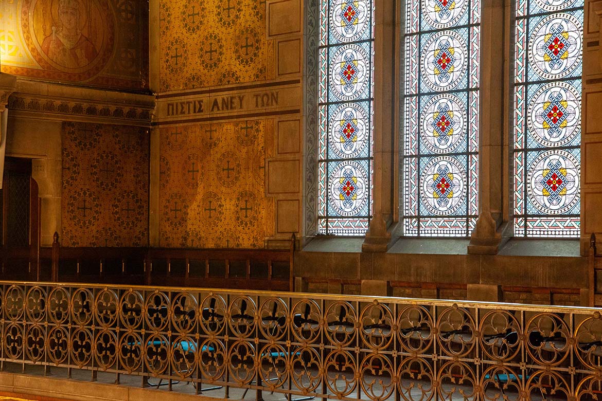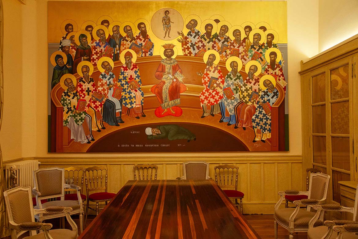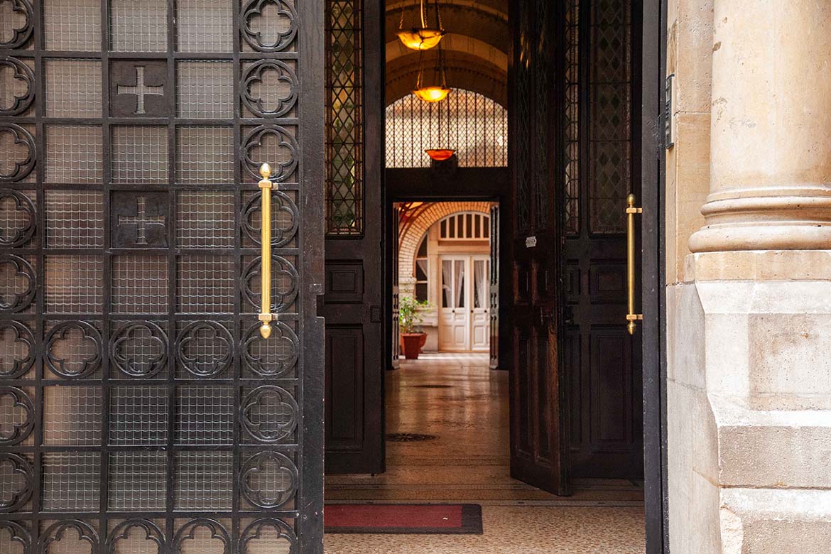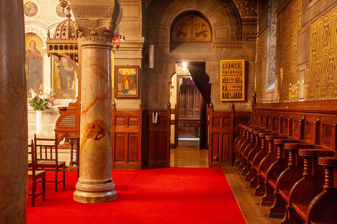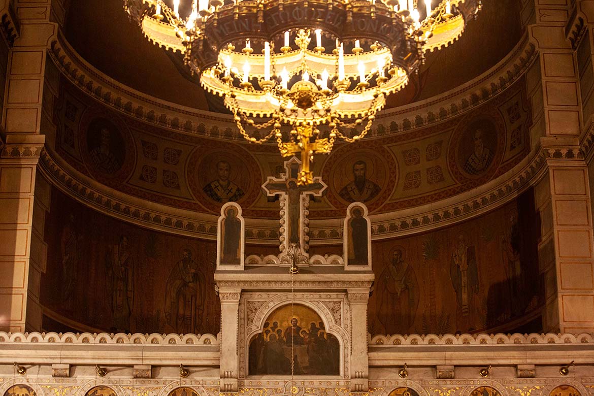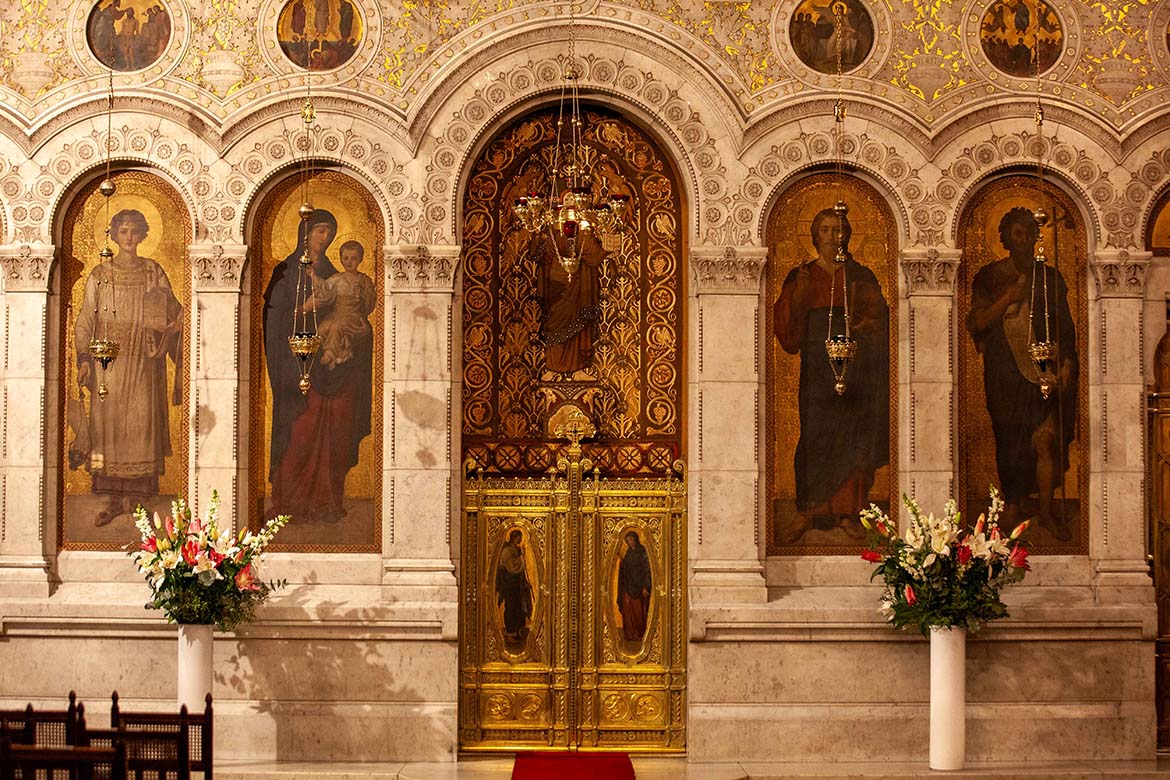La cathédrale métropolitaine grecque orthodoxe de France est une église majestueuse et accueillante. Nichée dans un quartier paisible et élégant, elle captive fidèles et visiteurs par sa beauté architecturale et son riche patrimoine spirituel. L’église est réputée pour son style byzantin, son dôme majestueux et ses détails extérieurs complexes. À l’intérieur, les murs et le plafond sont ornés de fresques murales colorées et d’icônes représentant de magnifiques scènes bibliques. L’atmosphère lumineuse et paisible invite à la méditation, à la prière et à la contemplation. Un porche permet d’accéder a une cour donnant  sur une salle paroissiale , un bureau d’accueil, et une salle de réunion bibliothèque.