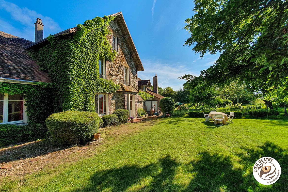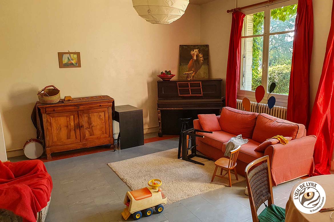 Une ferme du début du siècle dernier avec toute son authenticité, ses murs de pierre, ses vignes qui montent le long des murs et un très grand jardin resté assez vierge dans certaines parties. De vieux objets, livres, instruments de musique, cheminée jonchent la maison. Le tout bien au calme au milieu des champs (production bio) loin des maison voisines. Un coté donne sur le jardin avec une terrasse, l’autre côté donne sur la grande cour avec un long perron depuis lequel on peut admirer les derniers rayons du soleil le soir.