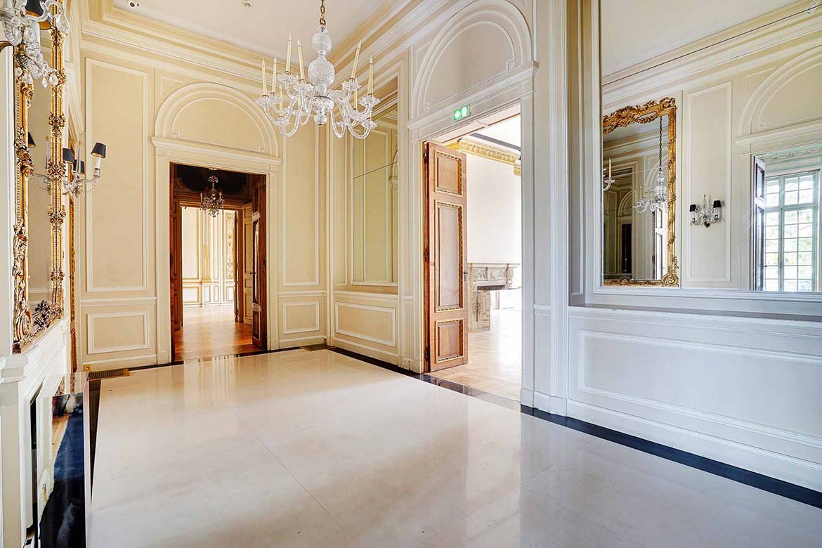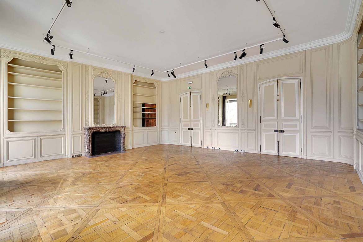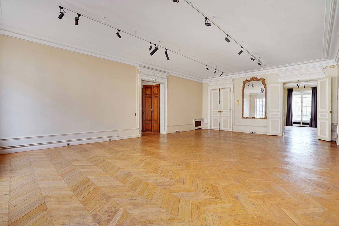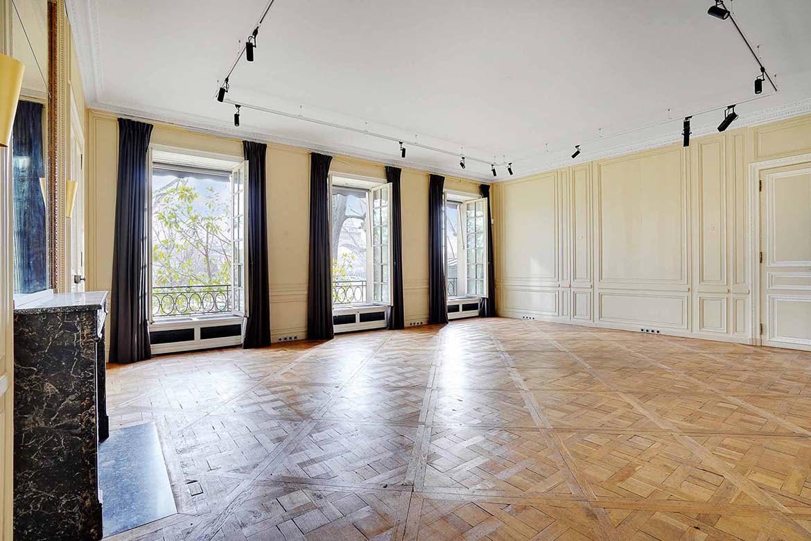 Hotel particulier de la fin du XIXème siècles aux décors classiques du XVIIIe. au rez de chaussée, l’hôtel conserve de beaux salons décorés de boiseries anciennes ou de papiers peints à motifs chinois. Cet ensemble de 1600m2, sur 3 niveaux et un entre-sol, en retrait d’une avenue, donne sur une terrasse et un  jardin. Cet hôtel particulier fut un lieu de vie et de réception, et la maitresse de maison y reçut des personnages publics et des personnages des arts, tel que le président Roosevelt, le président Eisenhower, le duc de Windsor, la princesse Grace de Monaco , Greta Garbo, Cristobal Balenciaga, Salvador Dali, Hubert de Givenchy, Tennessee Williams, Truman Capote, Paul Newman, etc…  Le 1er étage, qui n’est pas dans la sélection de photos permettra de représenter des bureaux tel que bureaux d’avocats, ou de chef d’entreprise. Le R+2, indépendant, pourrait être utiliser pour des bureaux de préparation et de tournage.