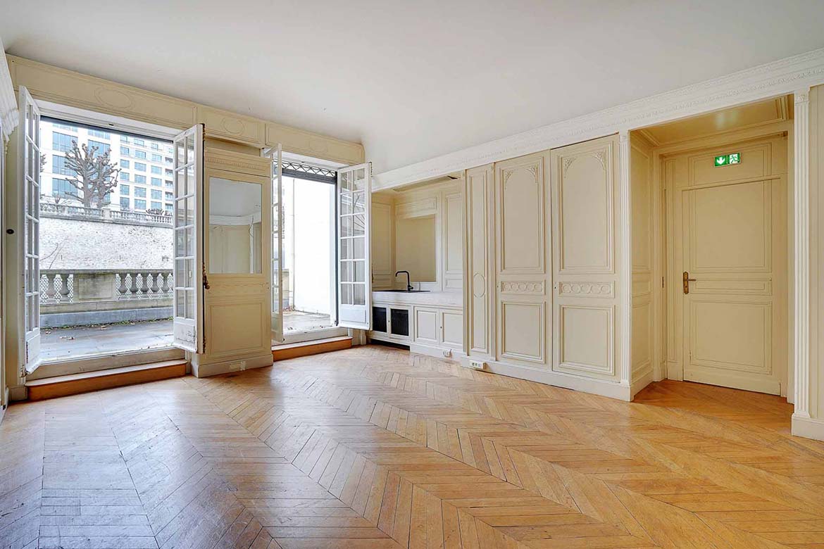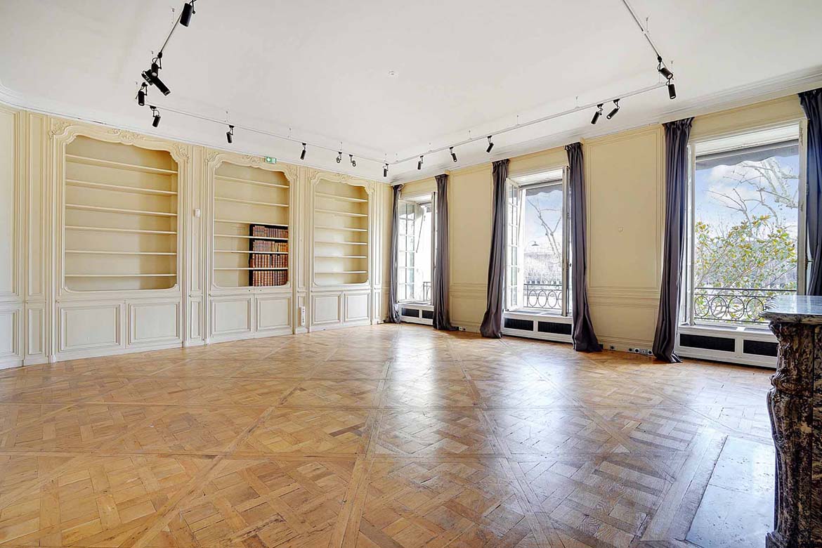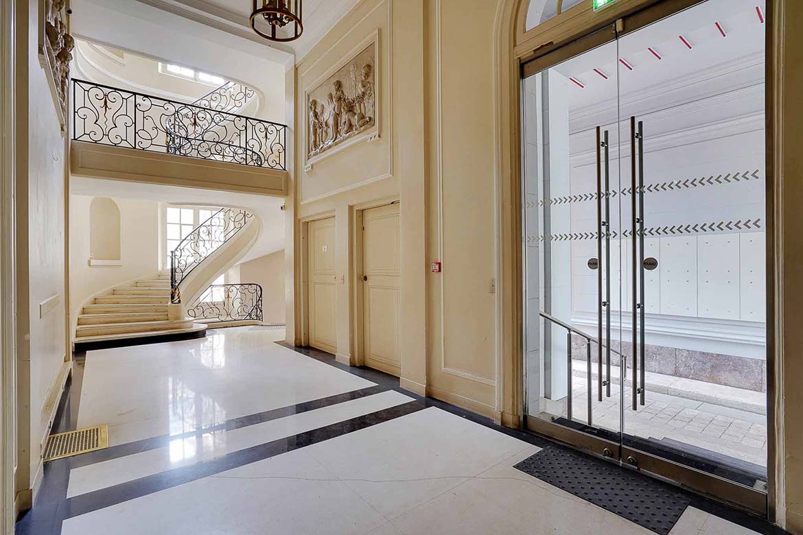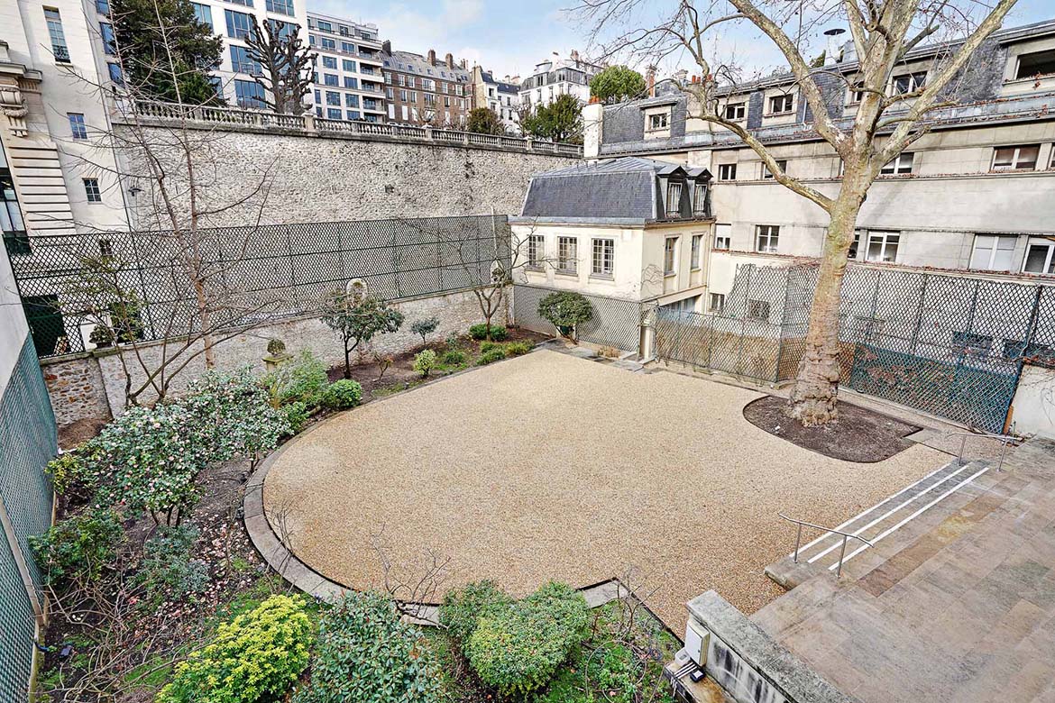 Hotel particulier de la fin du XIXème siècles aux décors classiques du XVIIIe. au rez de chaussée, l’hôtel conserve de beaux salons décorés de boiseries anciennes ou de papiers peints à motifs chinois. Cet ensemble de 1600m2, sur 3 niveaux et un entre-sol, en retrait d’une avenue, donne sur une terrasse et un  jardin. Cet hôtel particulier fut un lieu de vie et de réception, et la maitresse de maison y reçut des personnages publics et des personnages des arts, tel que le président Roosevelt, le président Eisenhower, le duc de Windsor, la princesse Grace de Monaco , Greta Garbo, Cristobal Balenciaga, Salvador Dali, Hubert de Givenchy, Tennessee Williams, Truman Capote, Paul Newman, etc…  Le 1er étage, qui n’est pas dans la sélection de photos permettra de représenter des bureaux tel que bureaux d’avocats, ou de chef d’entreprise. Le R+2, indépendant, pourrait être utiliser pour des bureaux de préparation et de tournage.
