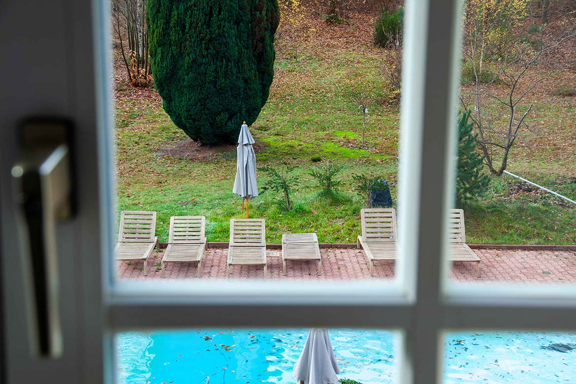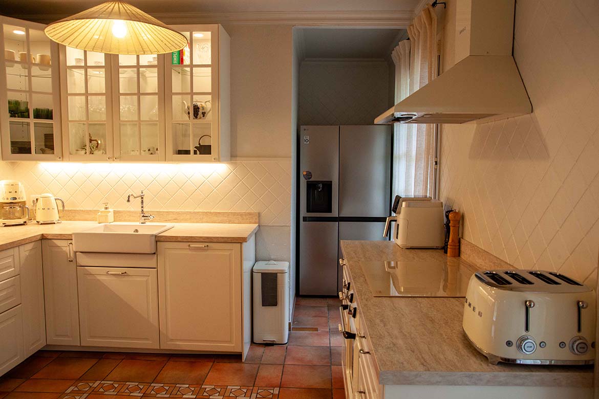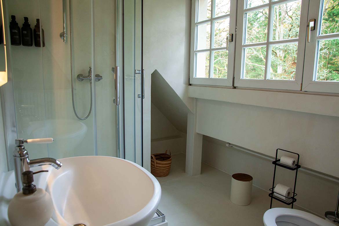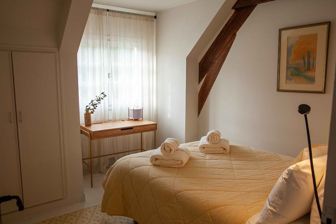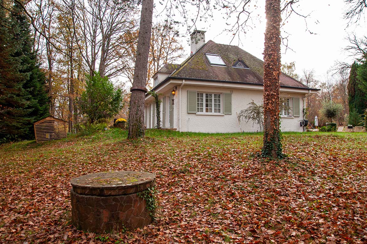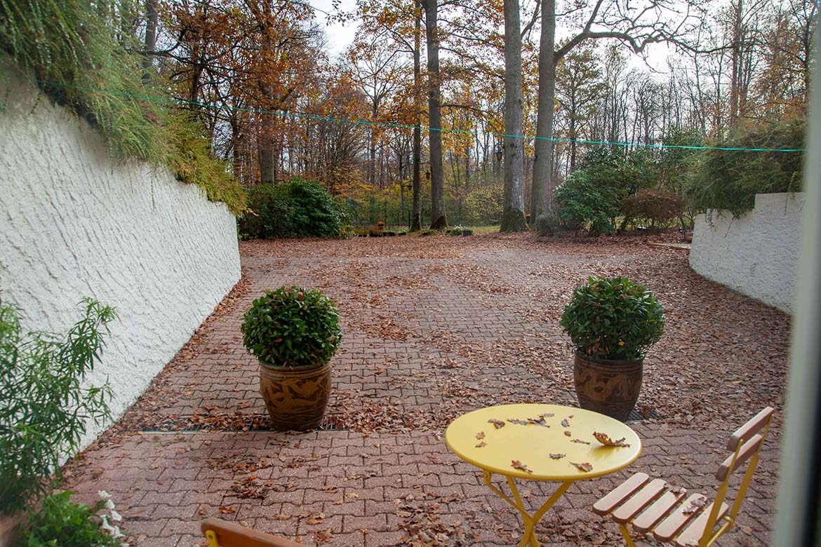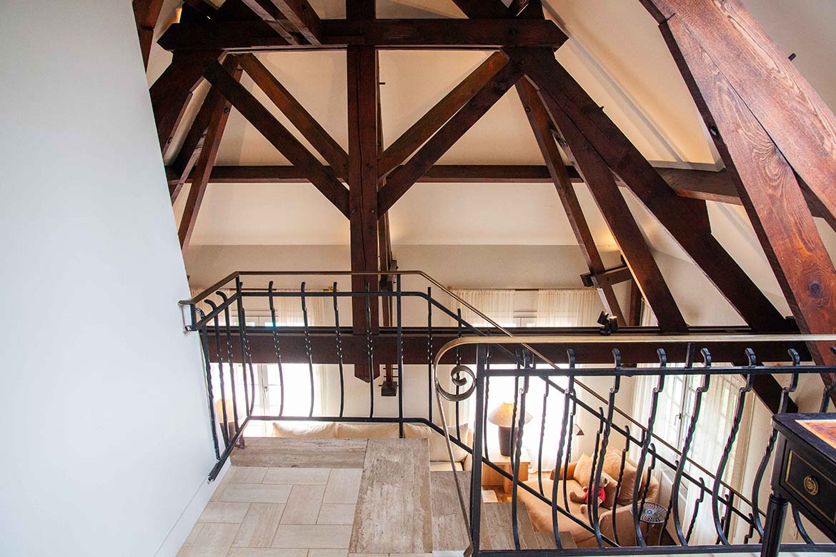 Nous avons découvert les Vaux de Cernay un matin de décembre, juste après un séjour de Noël à l’Abbaye. L’abbaye était encore plongée dans l’ambiance des fêtes : décorations, chaleur du bois, et ce calme particulier propre à l’hiver en forêt. En repartant, il faisait un soleil incroyable pour la saison. La rosée du matin recouvrait encore le sol, et les rayons traversaient les arbres de la forêt domaniale de Rambouillet, donnant à la route une lumière presque cinématographique. Lorsque nous sommes arrivés à la maison, la première chose qui frappe, c’est le terrain. L’espace. Les grands arbres. La façon dont la maison est posée dans la nature, avec la forêt tout autour. On sent immédiatement une respiration, une ouverture, quelque chose de rare si proche de Paris.