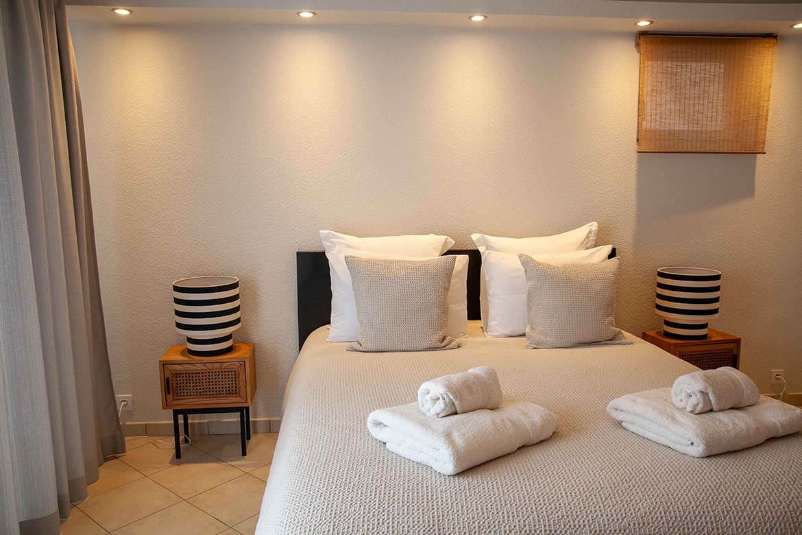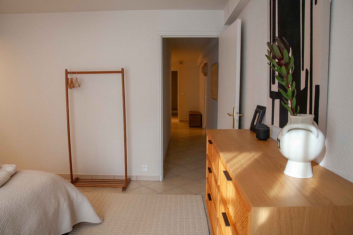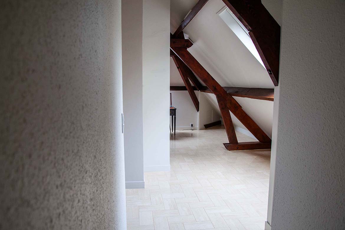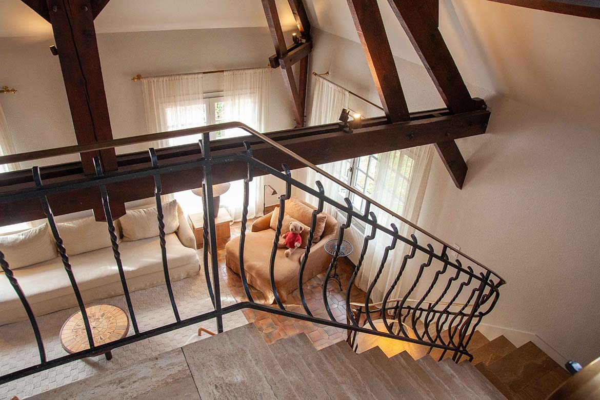 Puis, en entrant, l’atmosphère est encore différente. Ce jour-là, un immense feu crépitait dans la cheminée monumentale. La chaleur, le son du bois qui brûle, la hauteur sous plafond et la lumière qui entrait par les grandes ouvertures formaient un ensemble très fort. La maison dégageait une présence immédiate, comme un décor déjà prêt à être filmé. On s’est projetés sans effort : Noël, les guirlandes, le sapin, la lumière du feu qui se reflète au sol, la forêt visible depuis les fenêtres… À ce moment-là, c’était évident pour nous. La maison avait tout de grands volumes,une luminosité naturelle constante, un terrain entouré d’arbres, une atmosphère chaleureuse et authentique, et surtout, une identité visuelle très marquée.