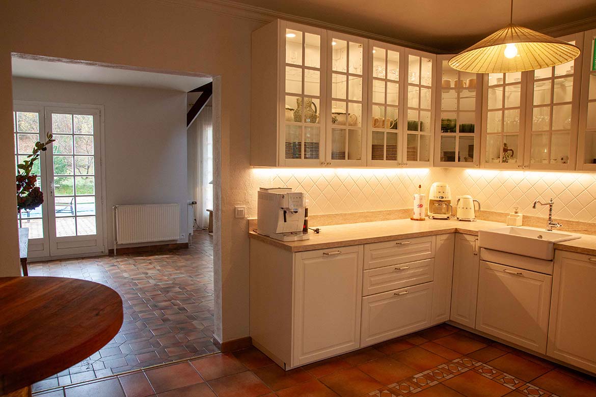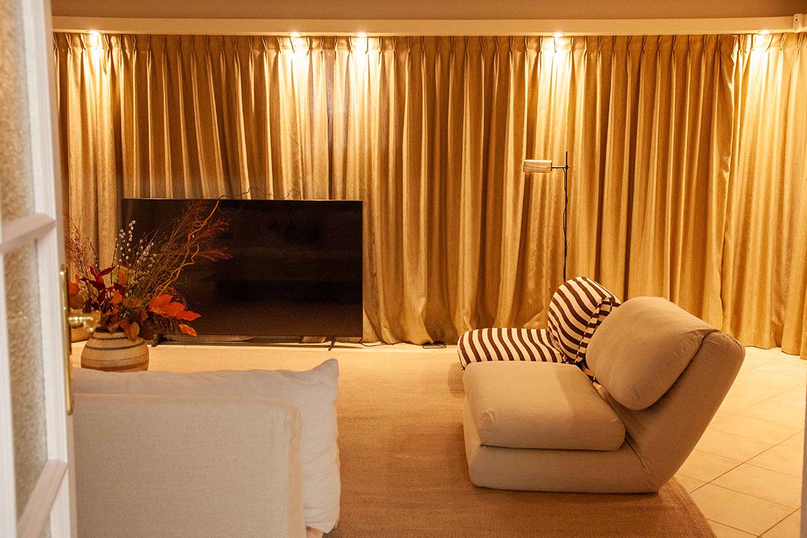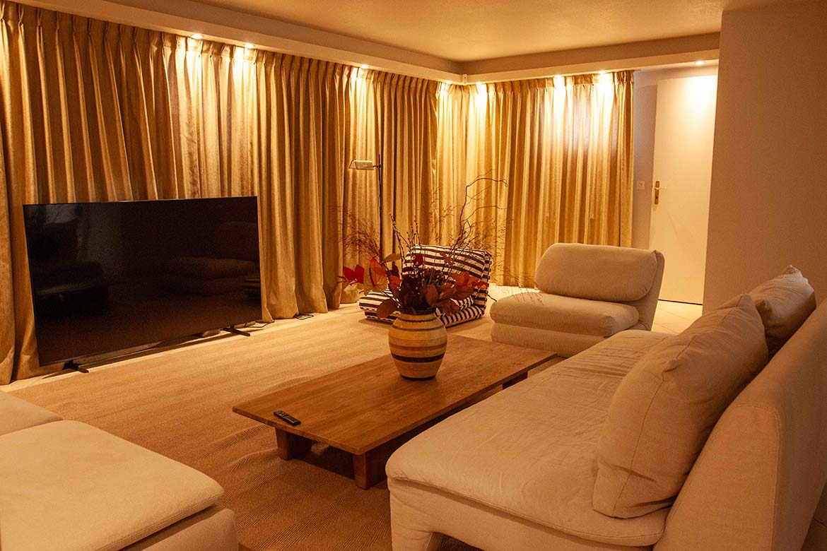 Depuis, nous avons simplement accompagné ce potentiel, sans le dénaturer. La maison est restée ce qu’elle était : un lieu vivant, lumineux, ouvert sur la nature. Une maison facile à investir pour un tournage, avec des espaces modulables, une circulation fluide et une atmosphère qui s’adapte autant aux scènes de jour qu’aux ambiances plus intimes du soir. Aujourd’hui, nous sommes heureux de la partager avec les équipes créatives. C’est un lieu qui offre naturellement des images fortes : la lumière dans les arbres, le soleil d’hiver, la rosée au sol, la chaleur du feu, la profondeur du terrain… Un décor réel, authentique, qui raconte déjà quelque chose avant même que la caméra ne tourne.