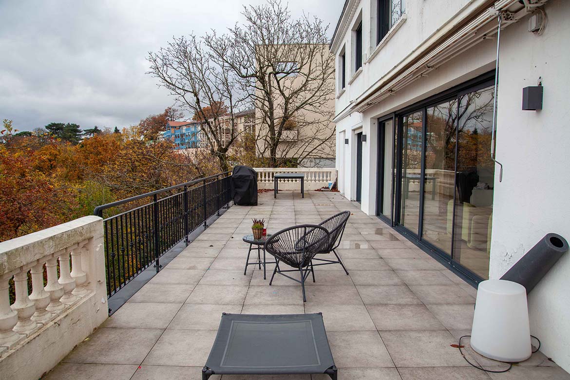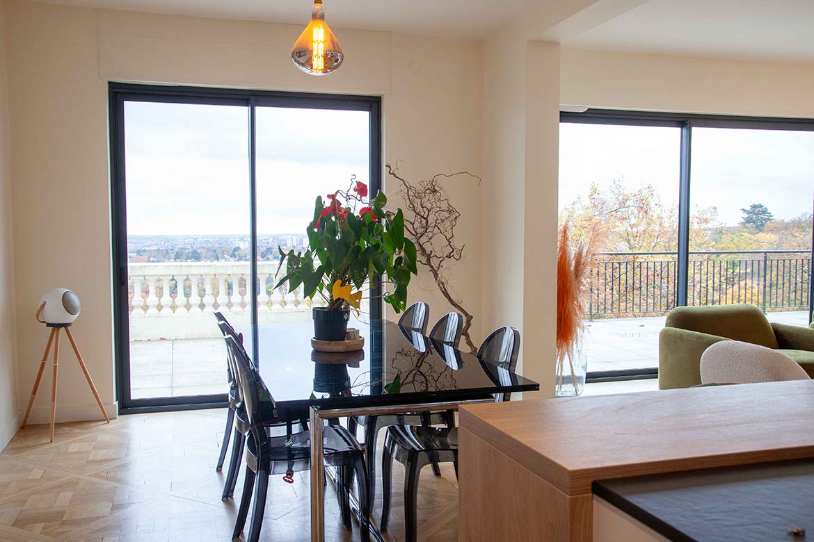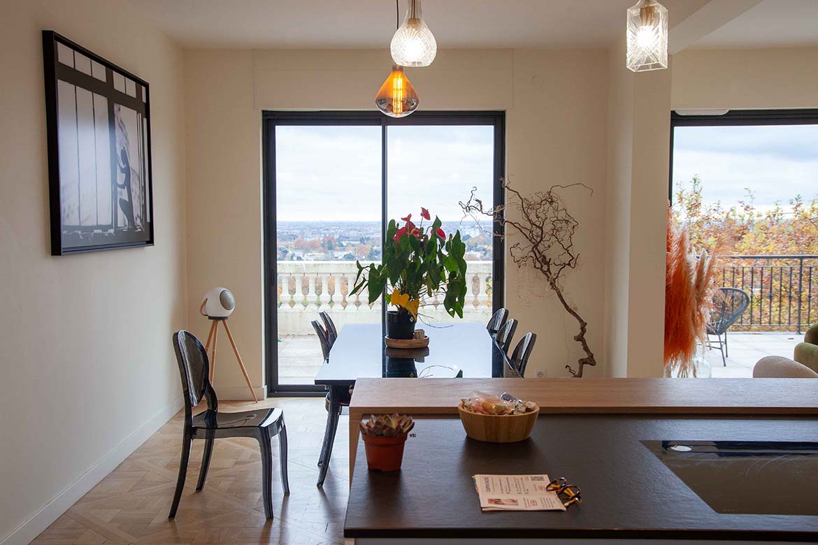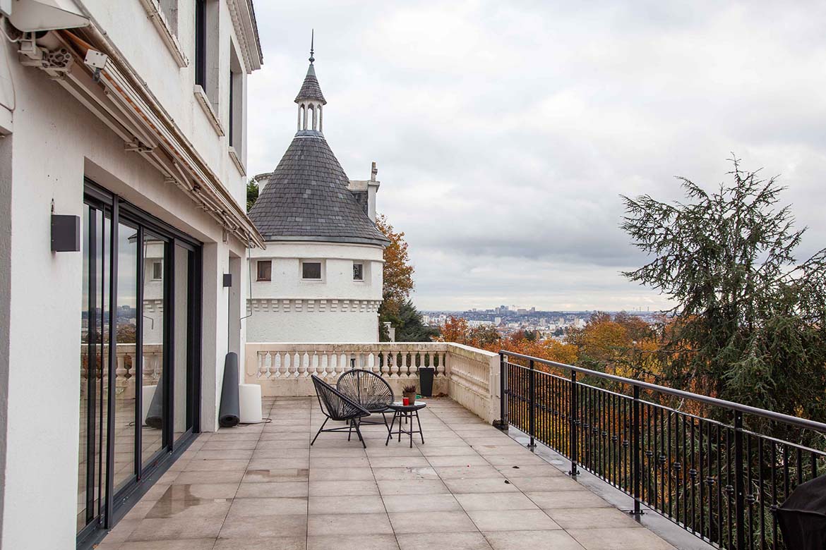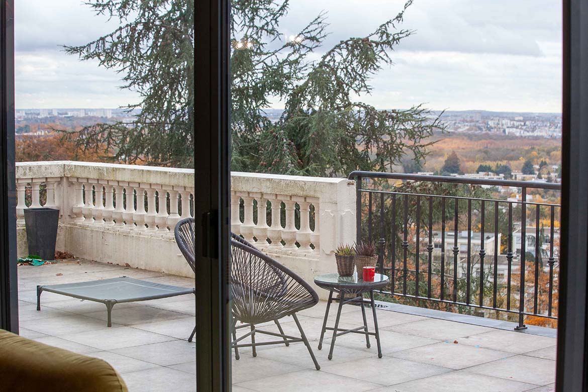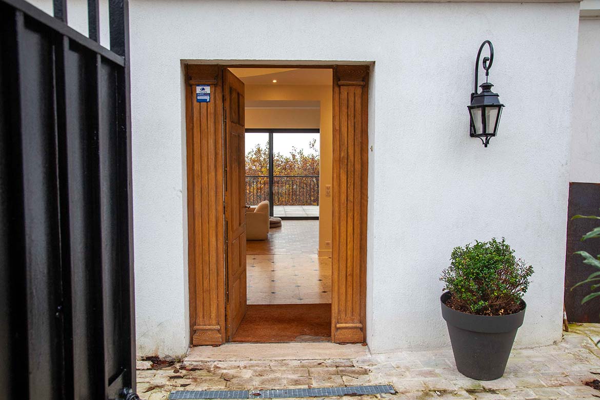 Située dans un quartier résidentiel aux portes de Paris, cette maison de 1975, entièrement rénovée par un architecte, offre une alliance réussie entre authenticité et modernité. D’une surface d’environ 400 m², la propriété se distingue par ses volumes généreux, sa luminosité exceptionnelle, sa vue imprenable et son aménagement pensé dans les moindres détails. Le rez-de-chaussée accueille une vaste pièce de vie traversante de 150 m2, baignée de lumière naturelle grâce à de grandes baies vitrées s’ouvrant sur une terrasse spacieuse de 80 m2, et offrant une vue dégagée spectaculaire. L’espace comprend un salon avec hauteur sous plafond de plus de 3m et parquet ancien, une salle à manger conviviale, une bibliothèque avec sa cheminée fonctionnelle et une cuisine ouverte moderne et entièrement équipée. Le premier étage dessert 3 chambres dont deux chambres d’enfant et une suite parentale avec double dressing et salle de bain privative. Une seconde salle de bain avec baignoire vient compléter cet étage. Au deuxième étage se trouve le bureau et une seconde suite parentale pour les amis.
