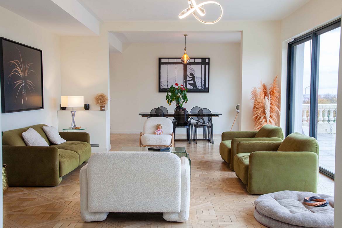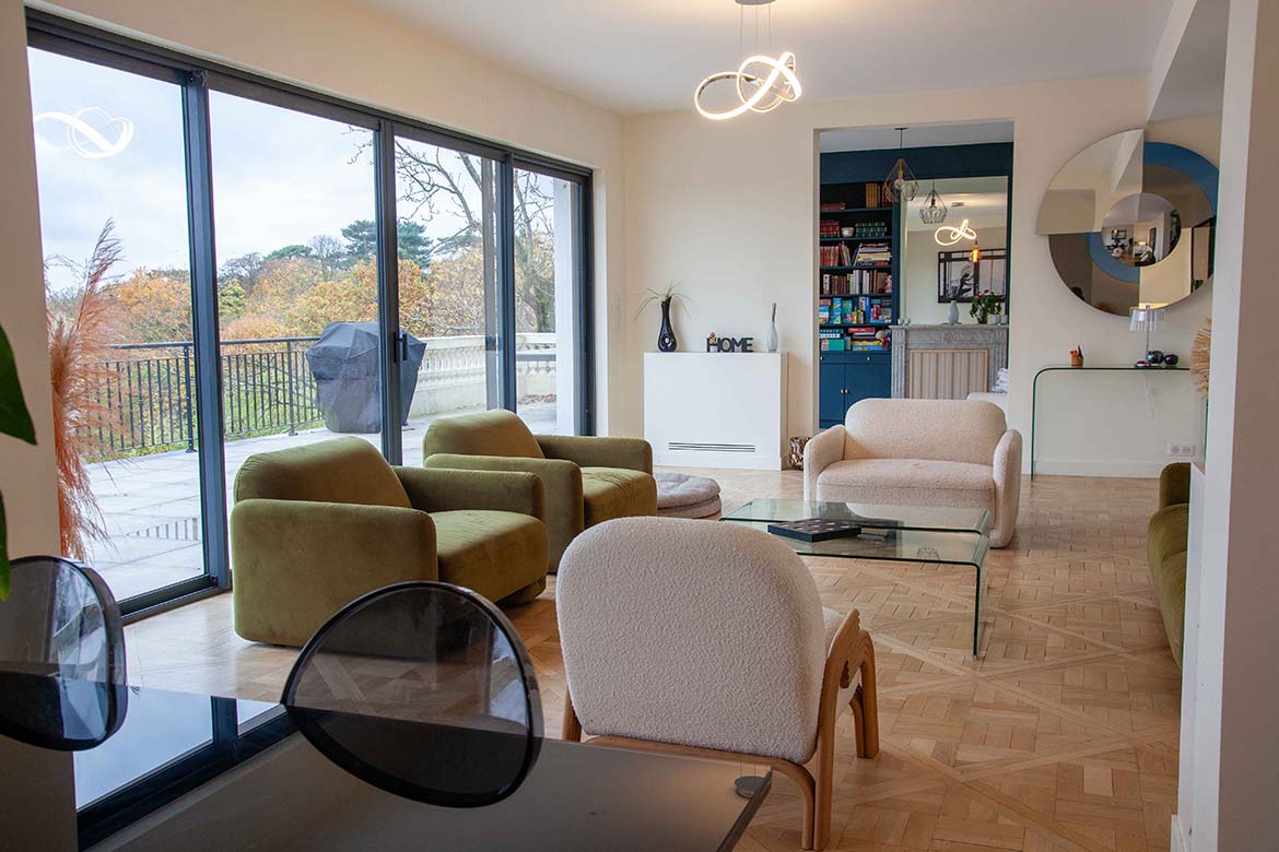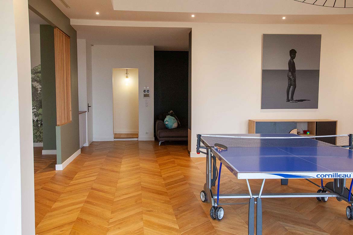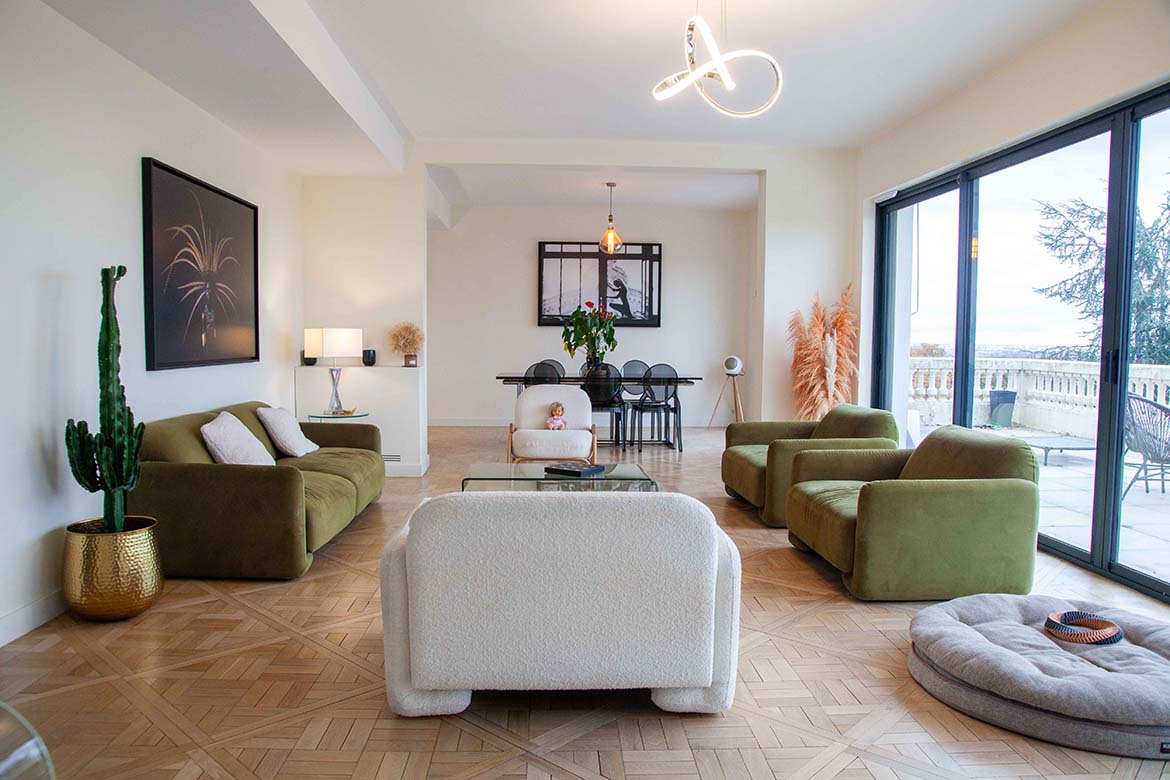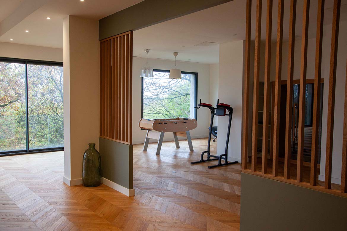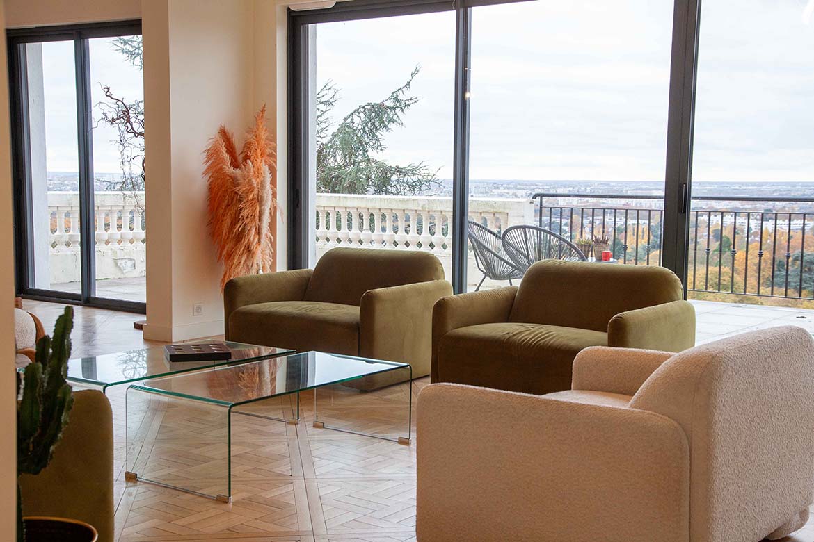 Située dans un quartier résidentiel aux portes de Paris, cette maison de 1975, entièrement rénovée par un architecte, offre une alliance réussie entre authenticité et modernité. D’une surface d’environ 400 m², la propriété se distingue par ses volumes généreux, sa luminosité exceptionnelle, sa vue imprenable et son aménagement pensé dans les moindres détails. Le rez-de-chaussée accueille une vaste pièce de vie traversante de 150 m2, baignée de lumière naturelle grâce à de grandes baies vitrées s’ouvrant sur une terrasse spacieuse de 80 m2, et offrant une vue dégagée spectaculaire. L’espace comprend un salon avec hauteur sous plafond de plus de 3m et parquet ancien, une salle à manger conviviale, une bibliothèque avec sa cheminée fonctionnelle et une cuisine ouverte moderne et entièrement équipée. Le premier étage dessert 3 chambres dont deux chambres d’enfant et une suite parentale avec double dressing et salle de bain privative. Une seconde salle de bain avec baignoire vient compléter cet étage. Au deuxième étage se trouve le bureau et une seconde suite parentale pour les amis.