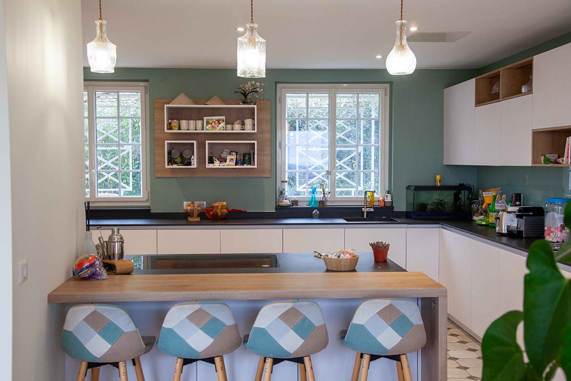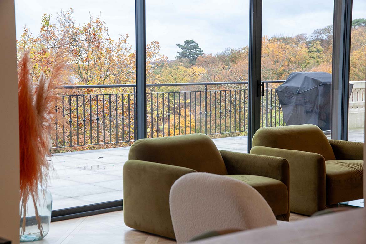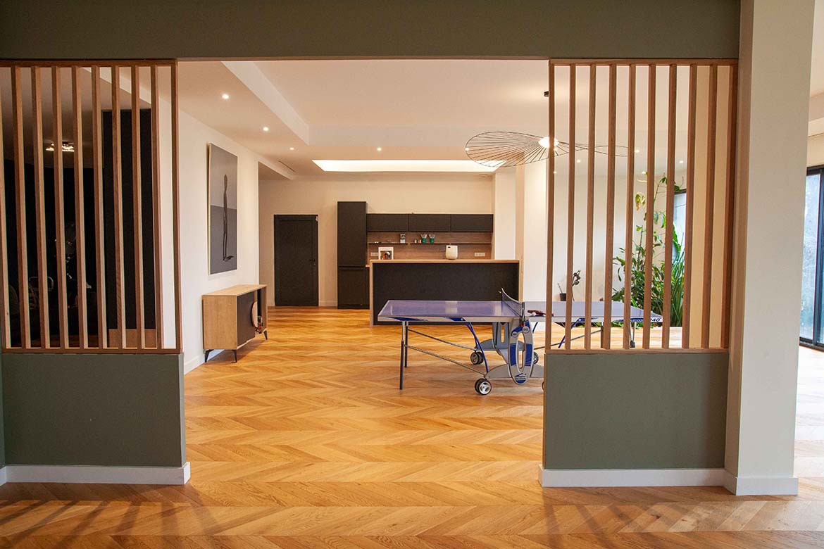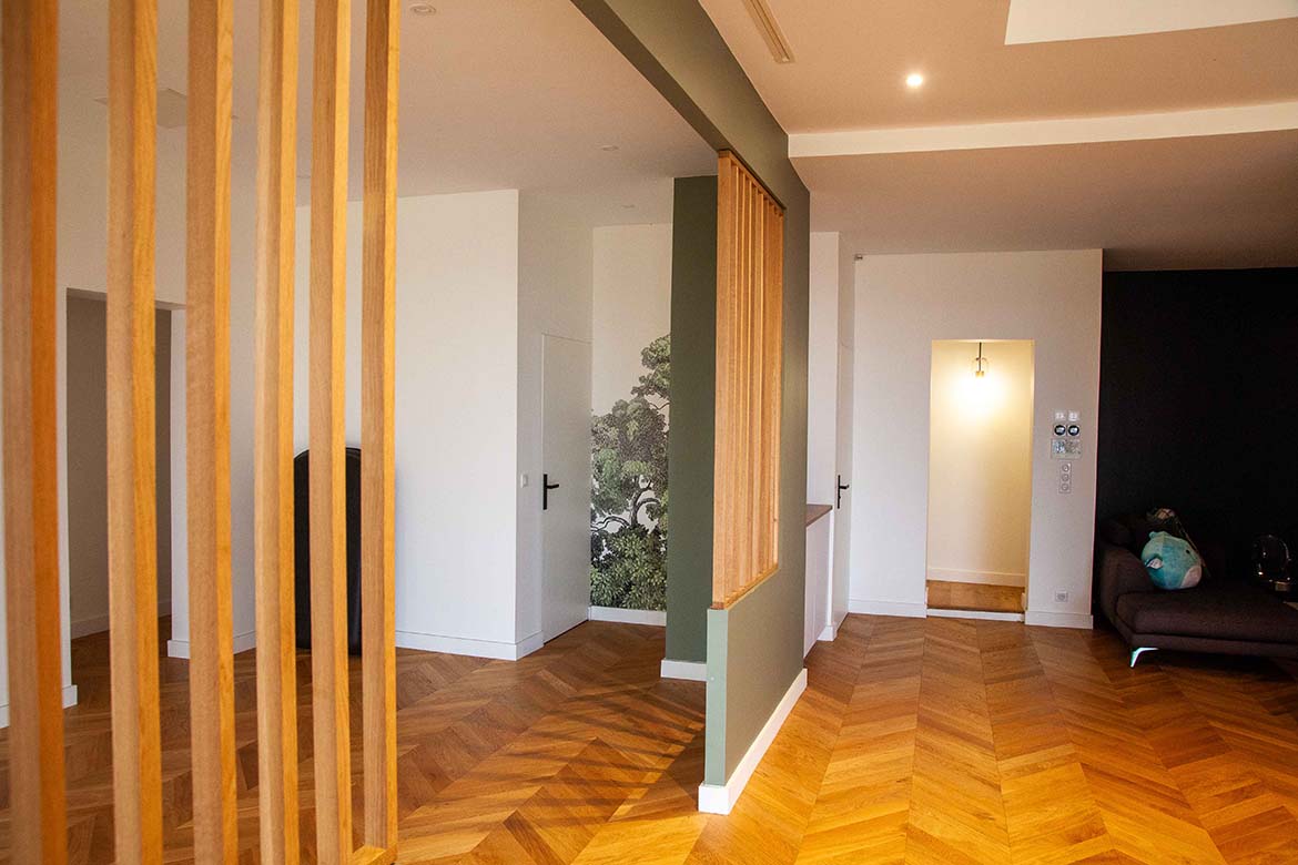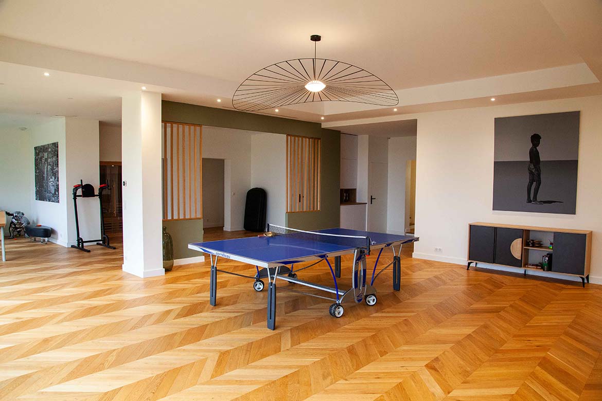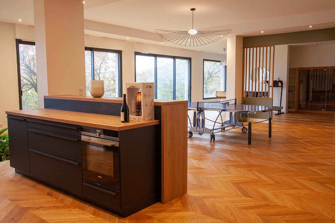 Située dans un quartier résidentiel aux portes de Paris, cette maison de 1975, entièrement rénovée par un architecte, offre une alliance réussie entre authenticité et modernité. D’une surface d’environ 400 m², la propriété se distingue par ses volumes généreux, sa luminosité exceptionnelle, sa vue imprenable et son aménagement pensé dans les moindres détails. Le rez-de-chaussée accueille une vaste pièce de vie traversante de 150 m2, baignée de lumière naturelle grâce à de grandes baies vitrées s’ouvrant sur une terrasse spacieuse de 80 m2, et offrant une vue dégagée spectaculaire. L’espace comprend un salon avec hauteur sous plafond de plus de 3m et parquet ancien, une salle à manger conviviale, une bibliothèque avec sa cheminée fonctionnelle et une cuisine ouverte moderne et entièrement équipée. Le premier étage dessert 3 chambres dont deux chambres d’enfant et une suite parentale avec double dressing et salle de bain privative. Une seconde salle de bain avec baignoire vient compléter cet étage. Au deuxième étage se trouve le bureau et une seconde suite parentale pour les amis.