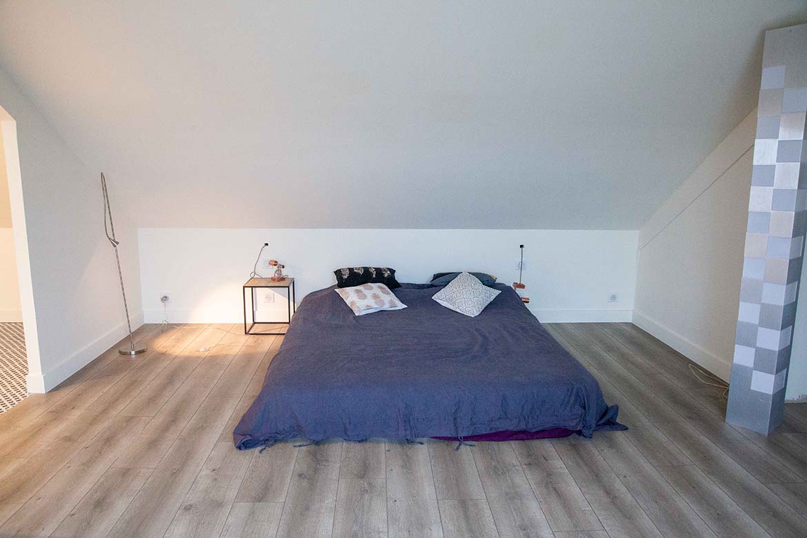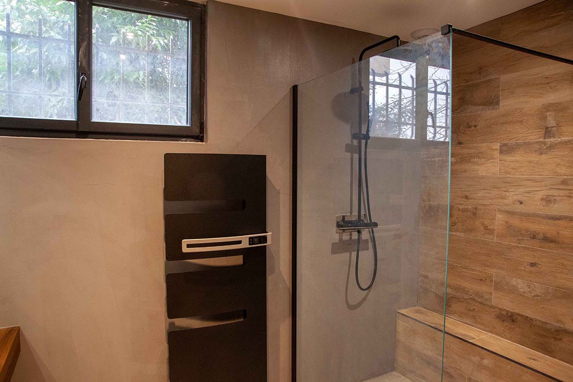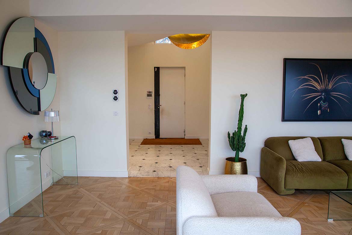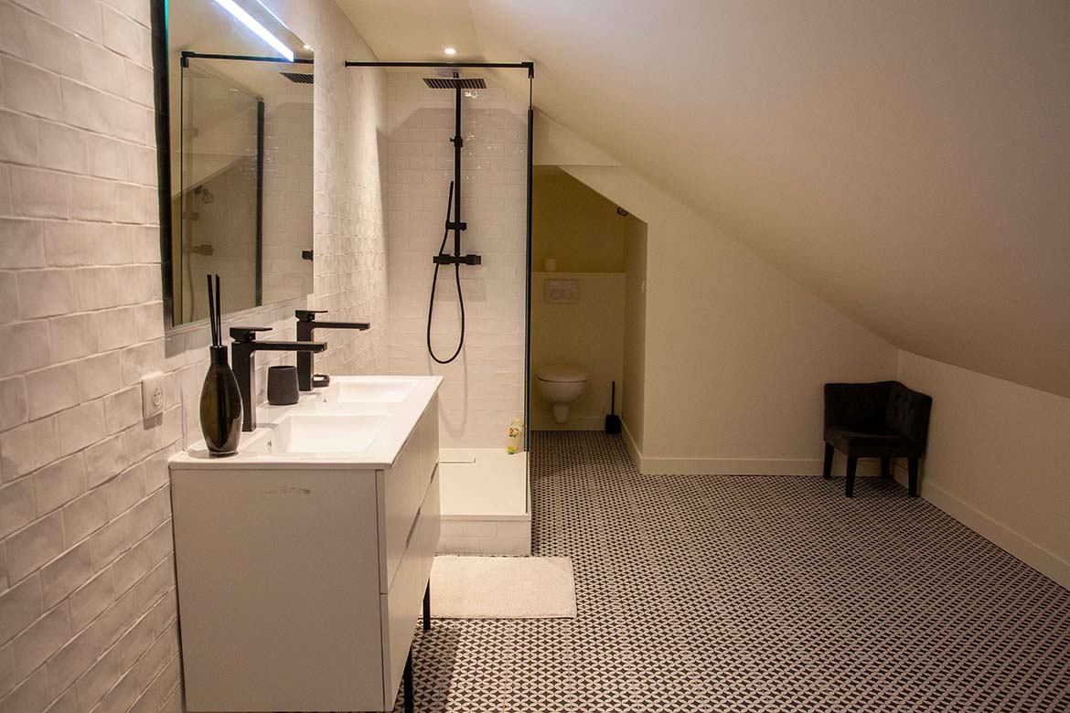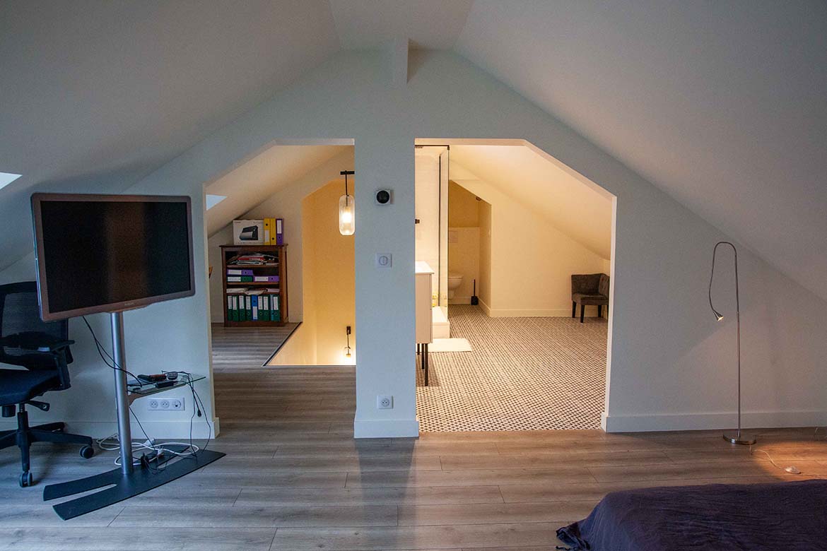 L’ensemble offre un effet “wahou” dès l’entrée, renforcé par la luminosité omniprésente et les perspectives ouvertes sur l’extérieur. Il y a également un garage et un double parking.
