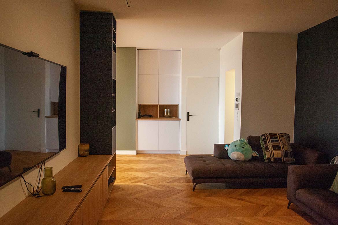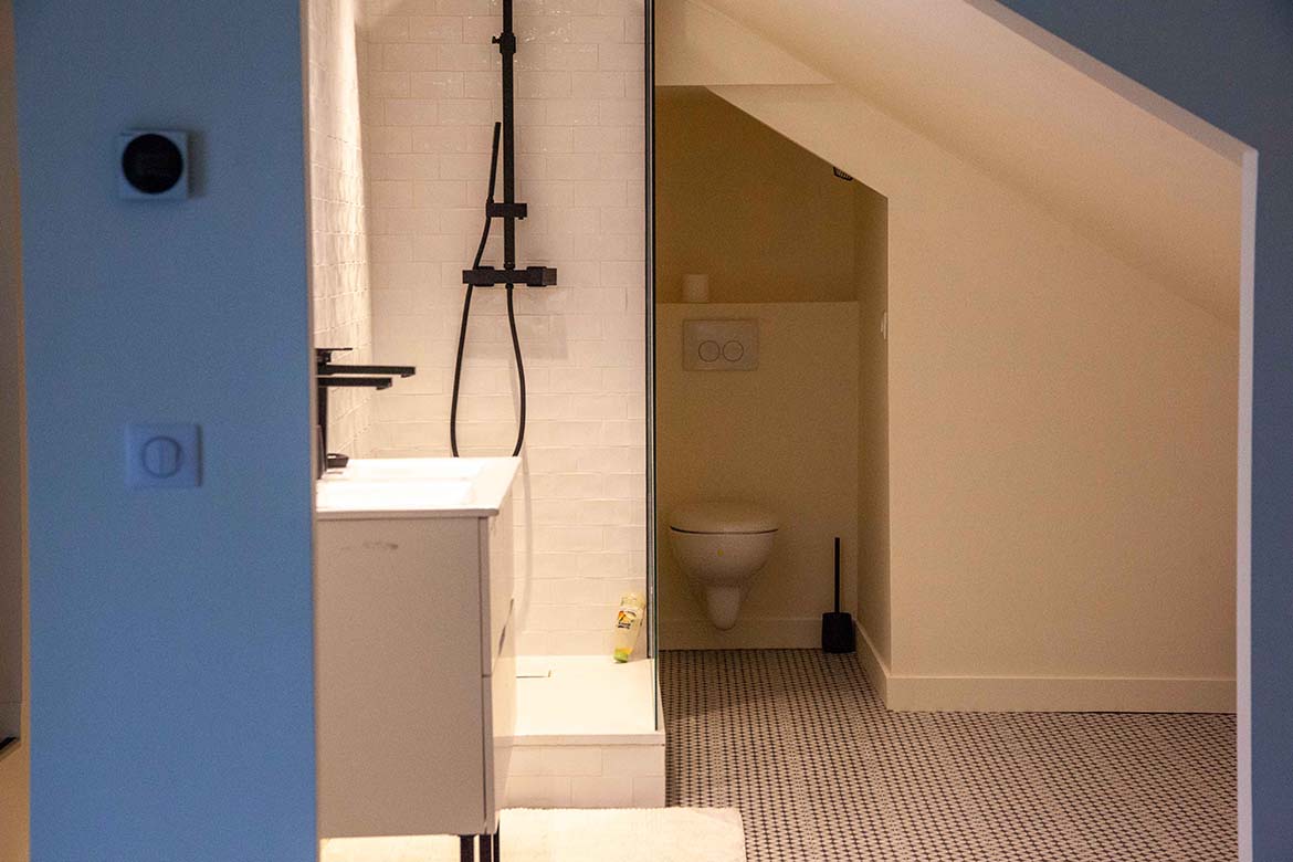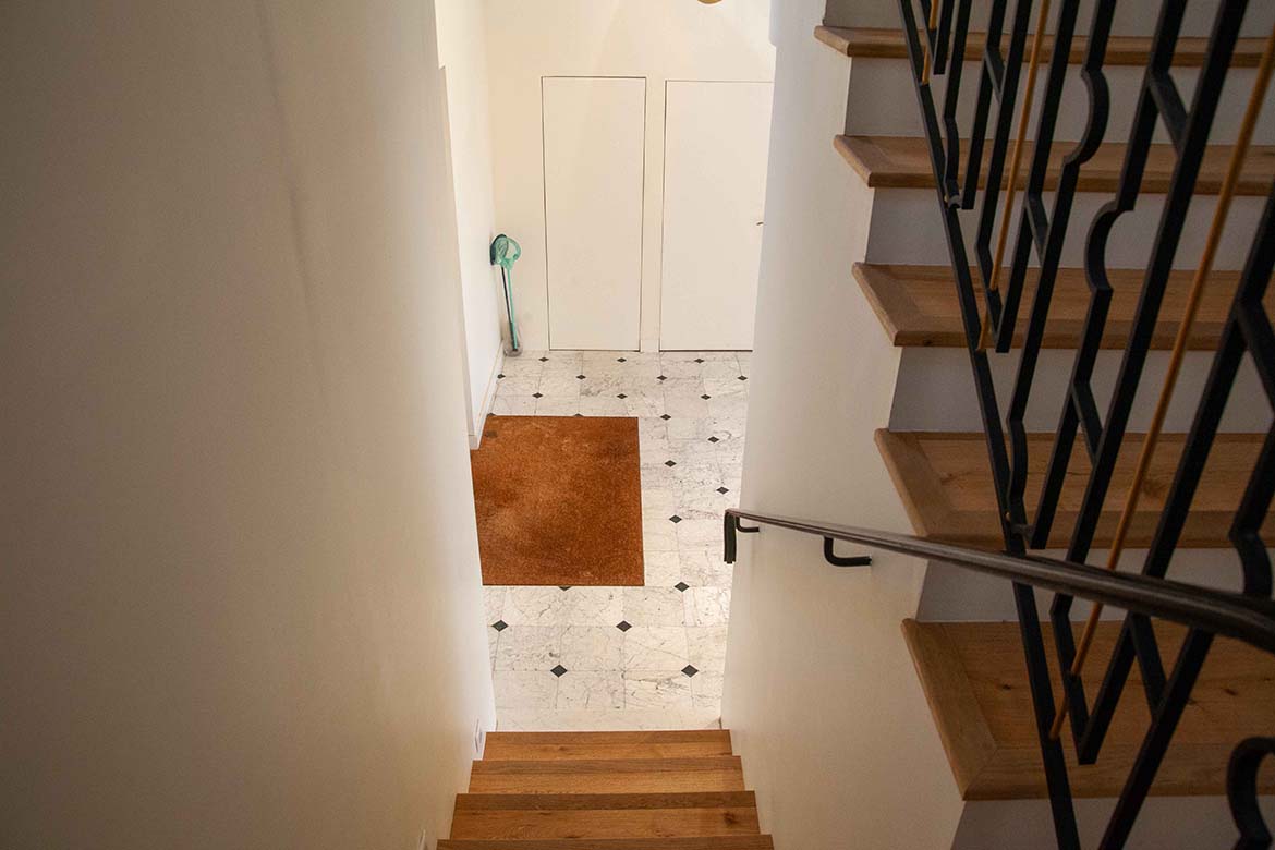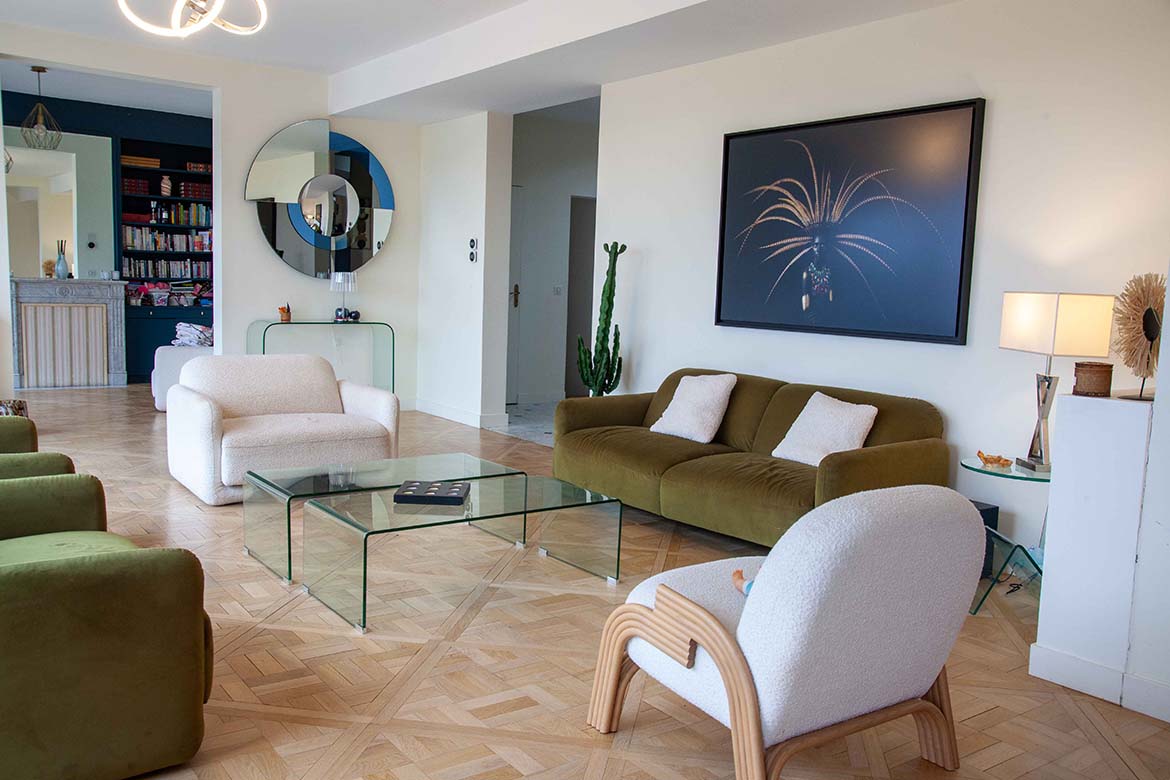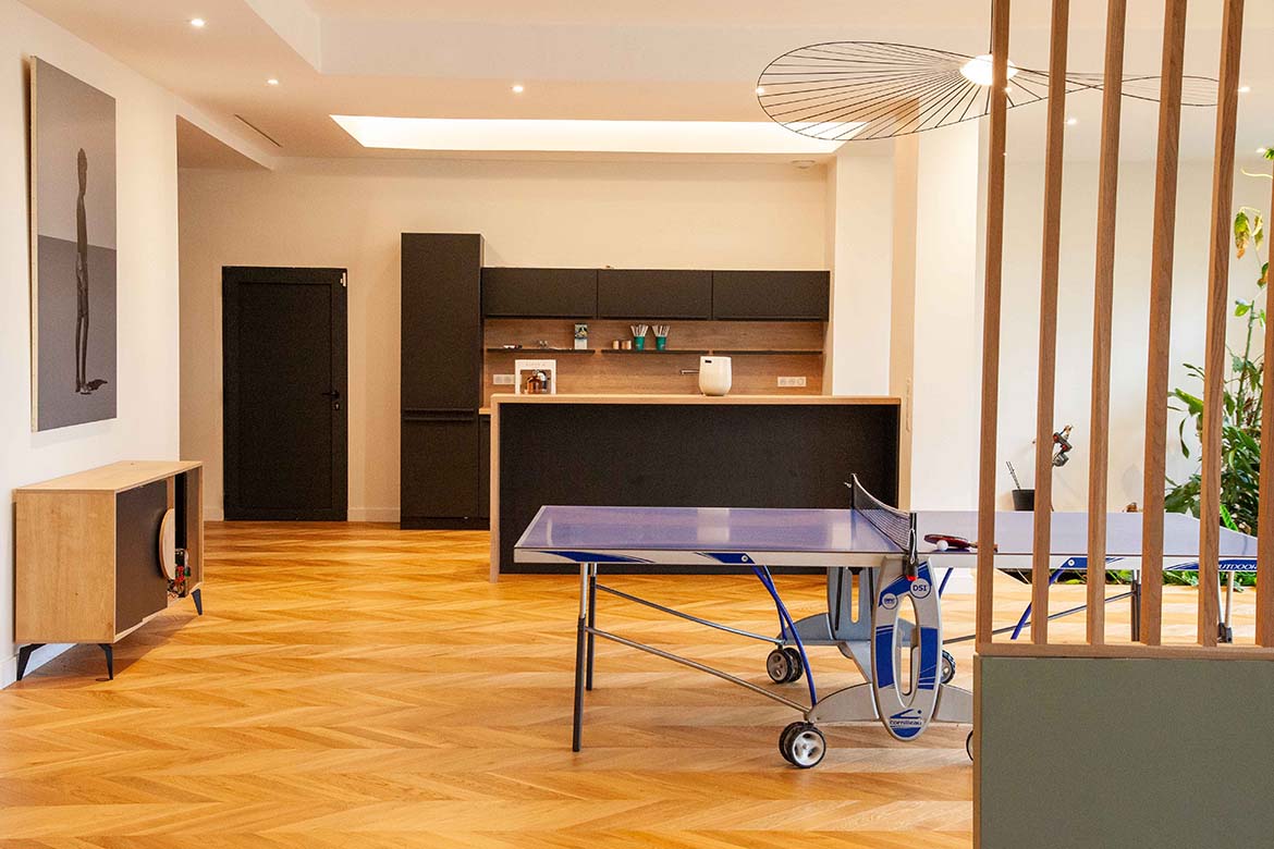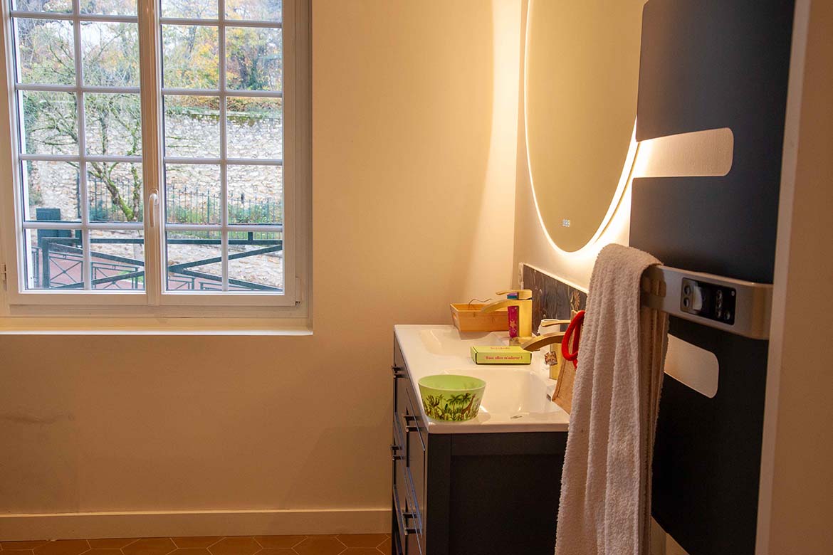 L’ensemble offre un effet “wahou” dès l’entrée, renforcé par la luminosité omniprésente et les perspectives ouvertes sur l’extérieur. Il y a également un garage et un double parking.