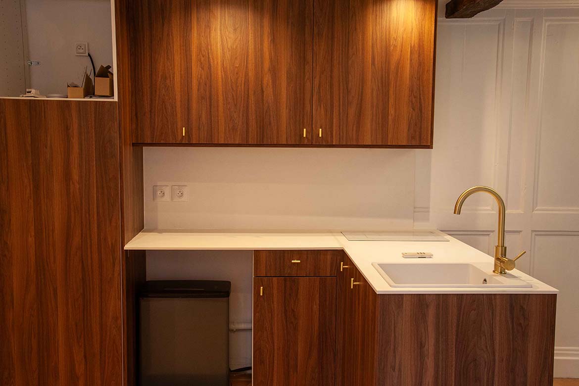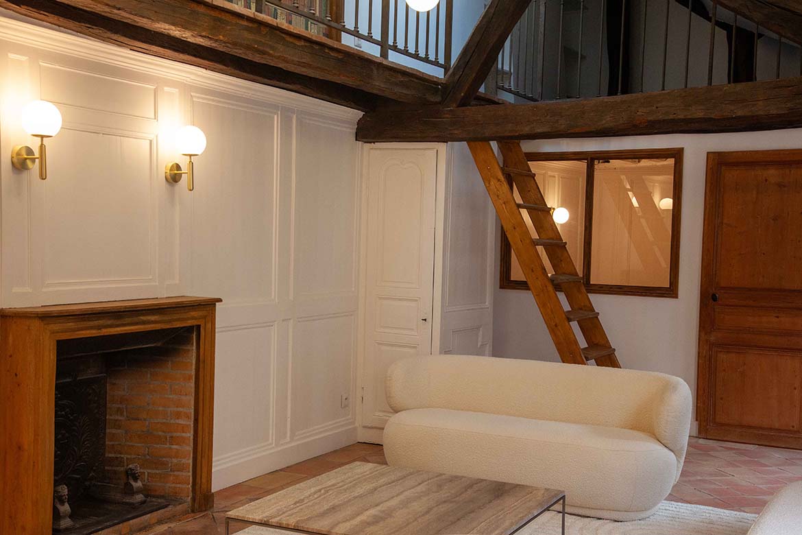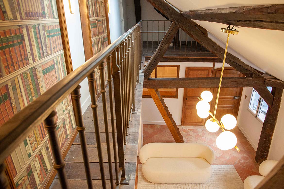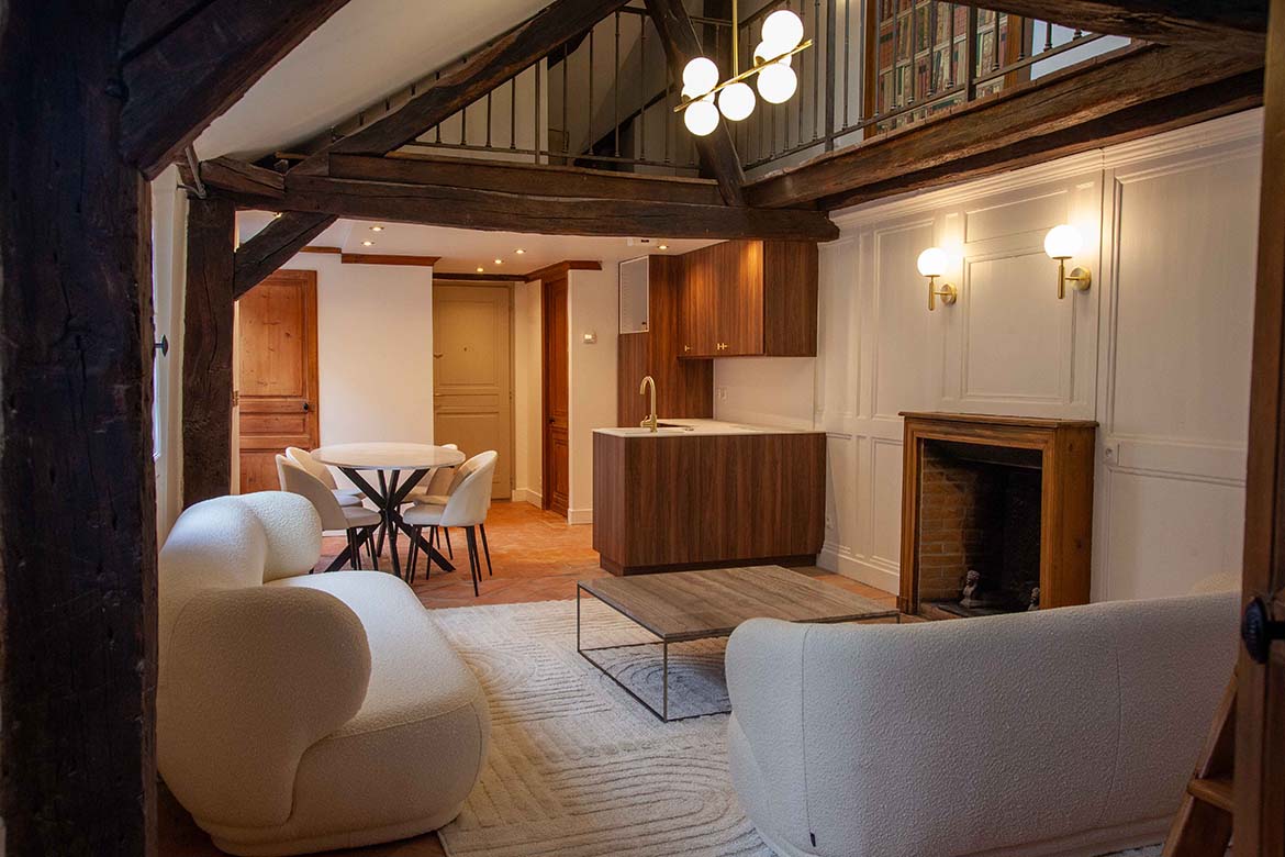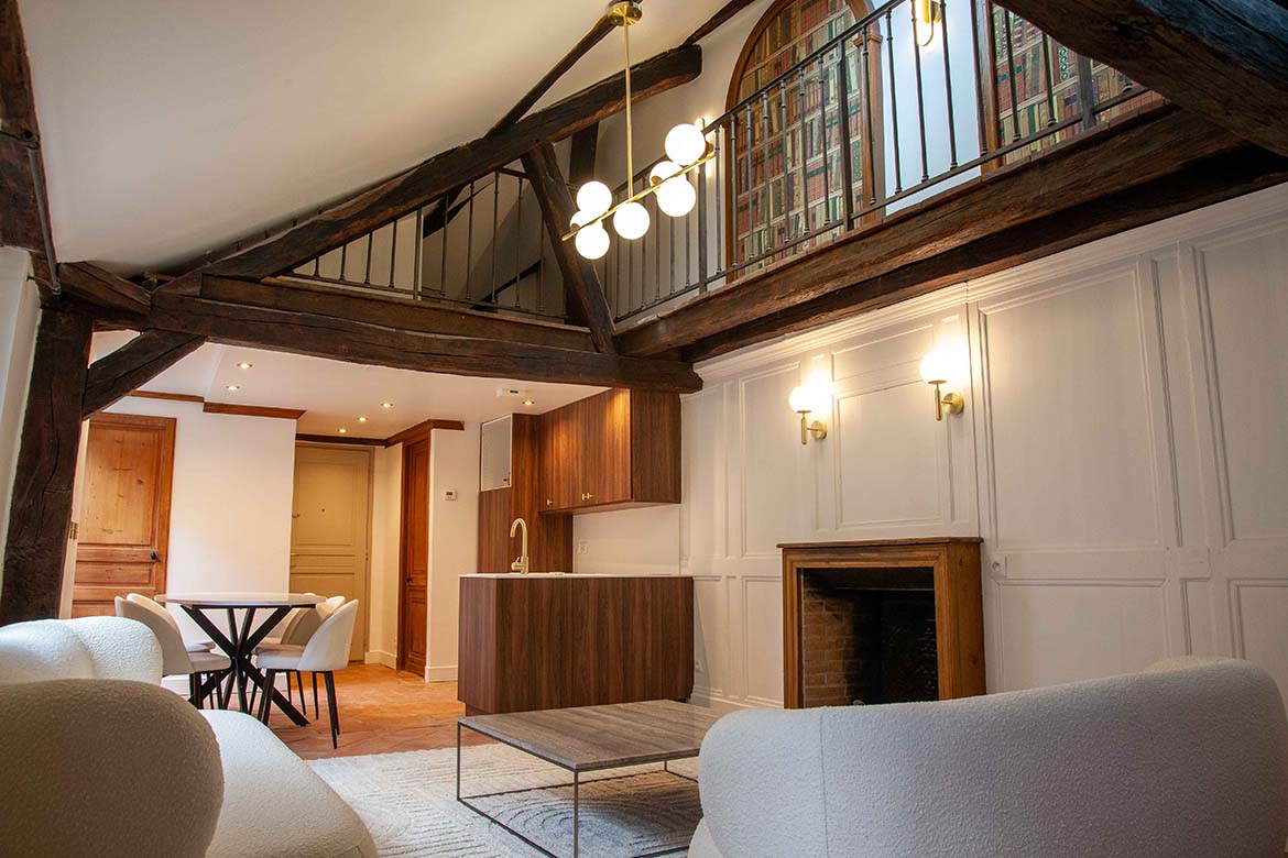 C’est un appartement de 3 pièces, offrant le charme de l’ancien, au 4ème et dernier étage sans ascenseur d’un immeuble ancien bien entretenu, au calme sur cour, rue de Lille. Il se compose d’un spacieux séjour avec une cuisine ouverte aménagée, d’un espace dînatoire, et d’un séjour lumineux, le tout offrant une grande hauteur sous plafond, des velux ainsi que de poutres apparentes, une cheminée en état de fonctionnement ainsi qu’une mezzanine décorative. S’ensuit une première chambre vide avec poutres apparentes peintes et verrière, s’ensuit une deuxième chambre vide avec poutres apparentes, un dressing et rangements et sa salle de bain et de douche avec wc. L’appartement dispose d’une deuxième salle de douche et d’un second wc. A l’étage, la mezzanine décorative offre différents espaces de rangements. Il faut privilégier pour ce décors des tournages en équipes légères