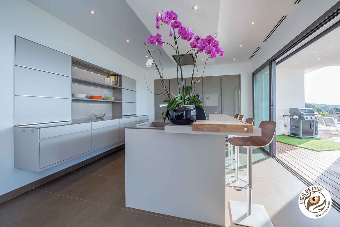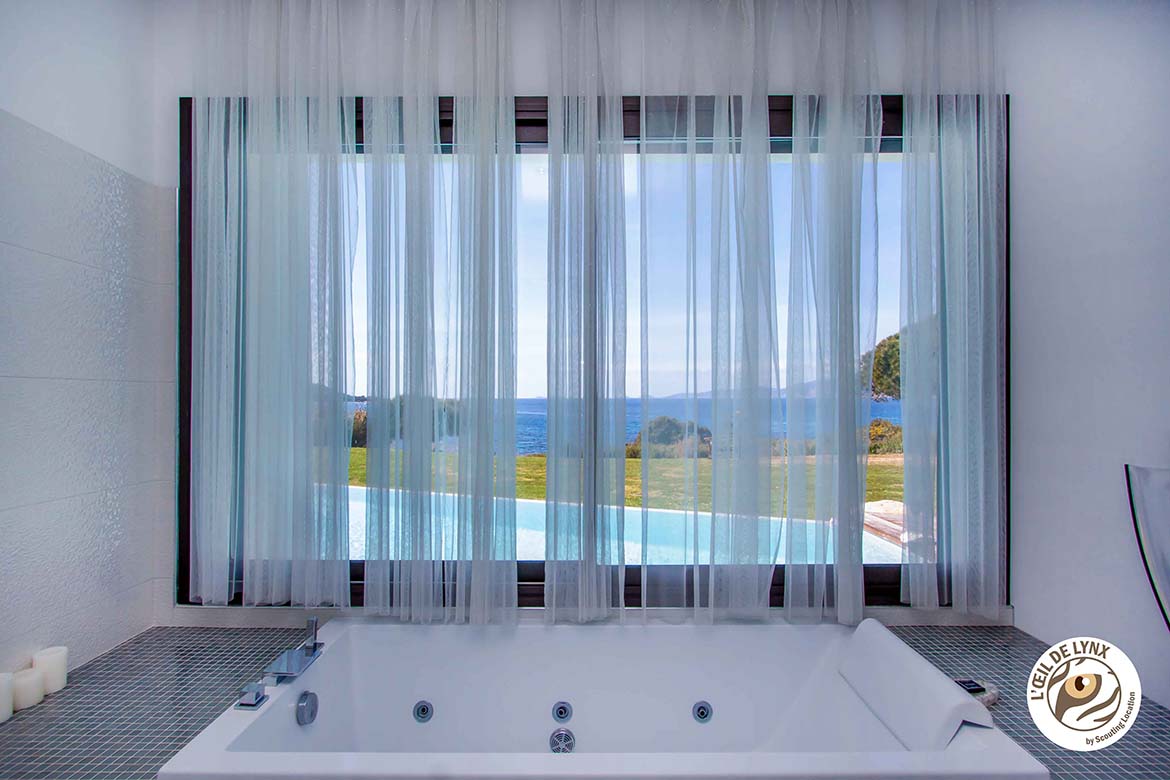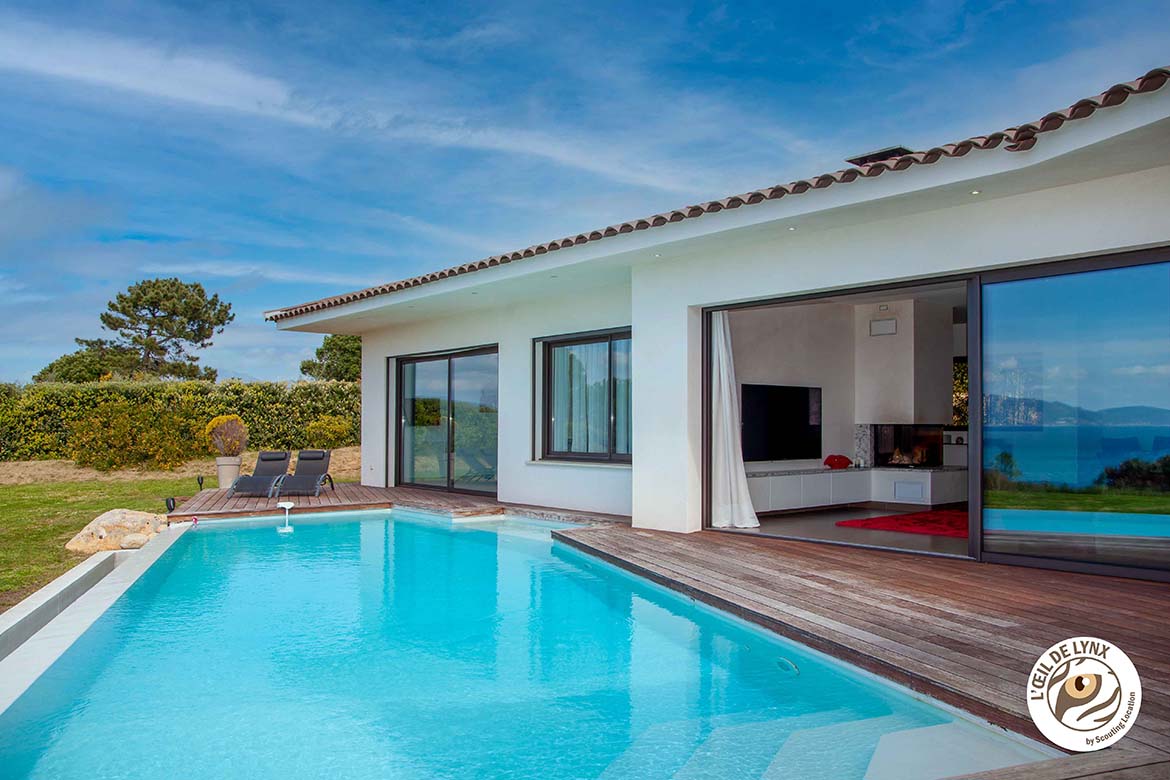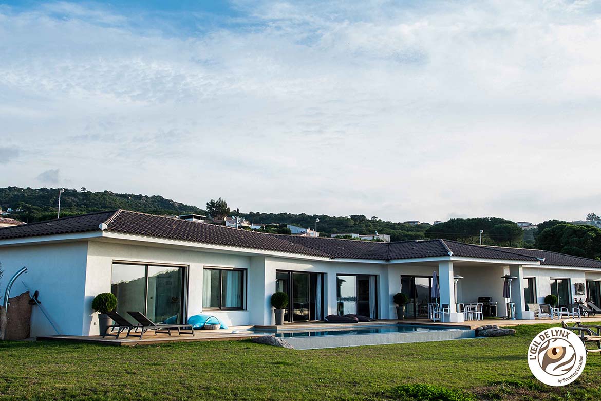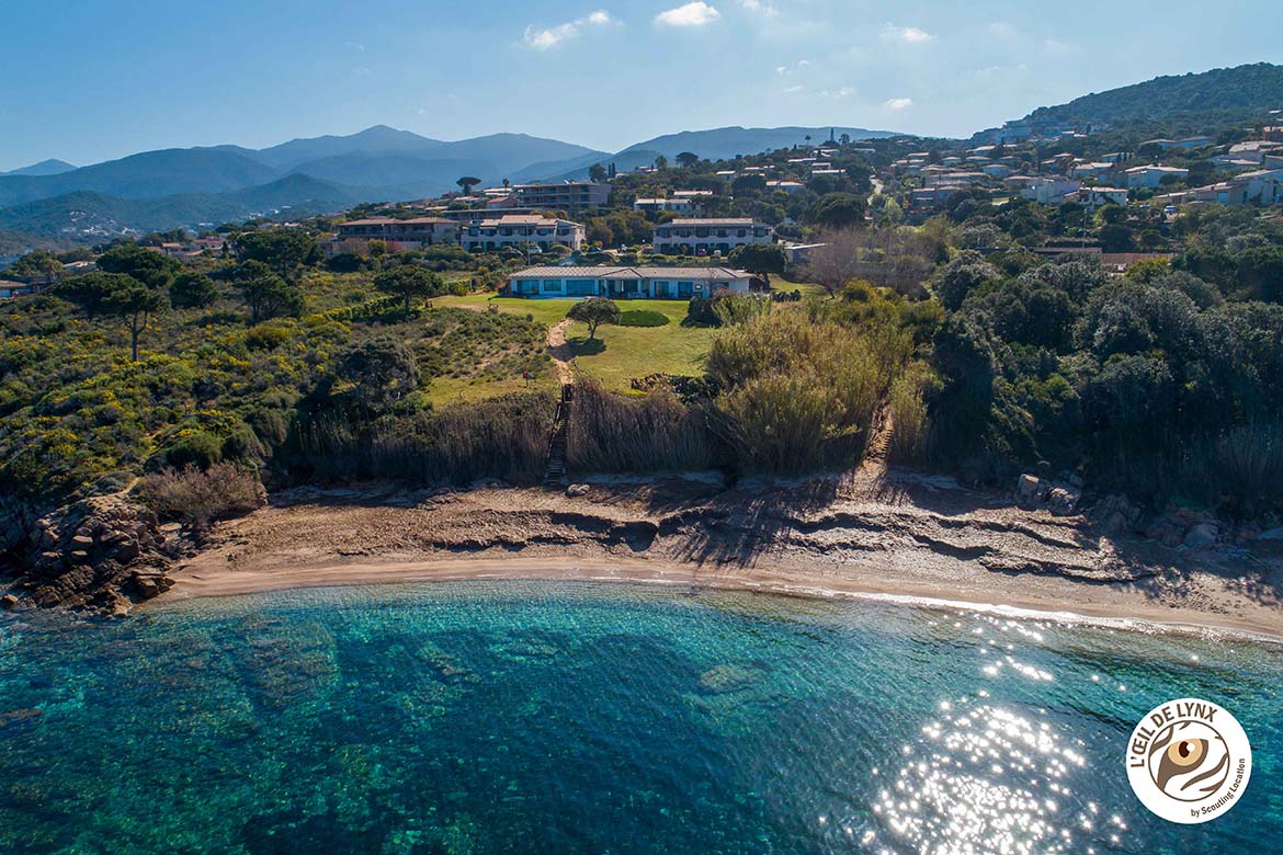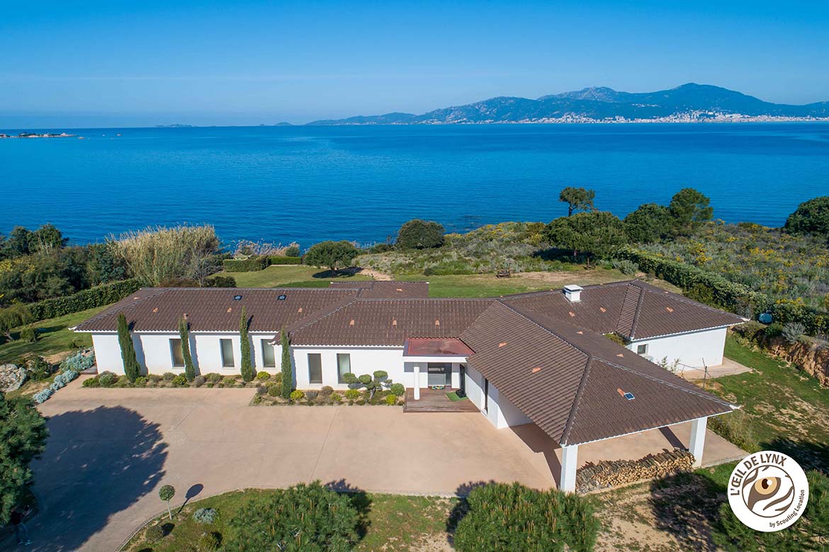 Magnifique villa contemporaine, pieds dans l’eau ,avec vue imprenable sur les Îles Sanguinaires et la presqu’île de l’Isolella . Villa d’architecte moderne avec piscine à débordement en pierre de Bali et jacuzzi intégré, terrain partiellement arboré avec une partie restée naturelle. 270 m2 habitable, 6700 m2 de terrain avec accès privé à la mer et vue panoramique.