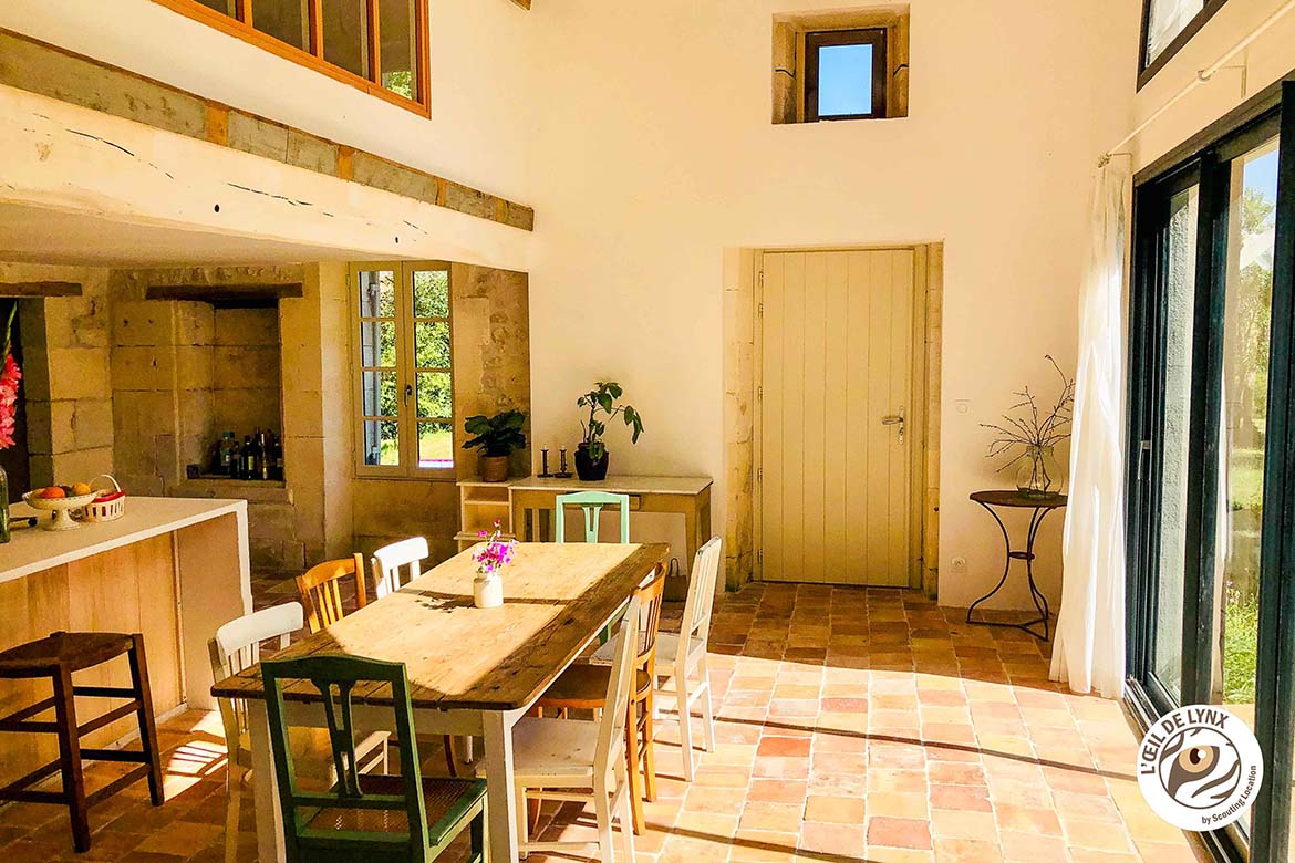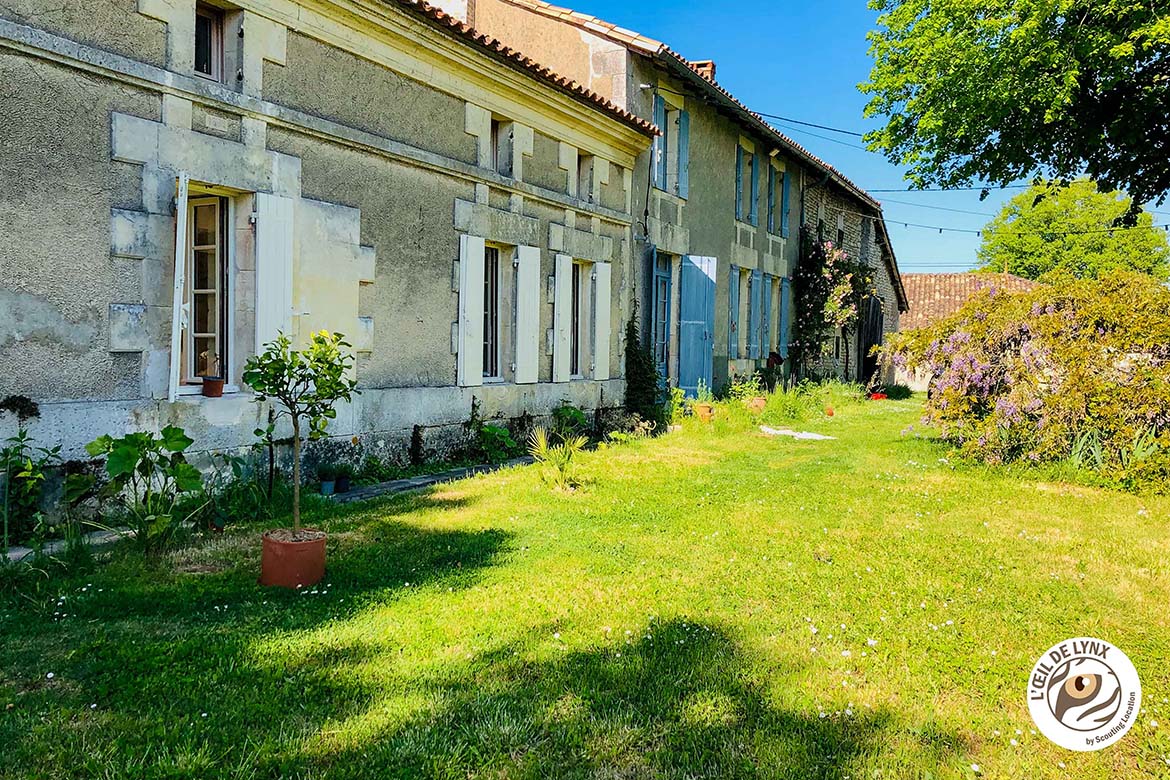 Maison de campagne de 150m2 typique charentaise, rénovée avec des matériaux anciens. Cette maison fait partie d’un hameau paisible depuis plusieurs centaines d’années. La pièce à vivre est une grande cuisine lumineuse orientée à l’ouest donnant sur des vignes. Il y a également un salon avec une cheminée pour l’hiver, 3 chambres et une salle de bain.