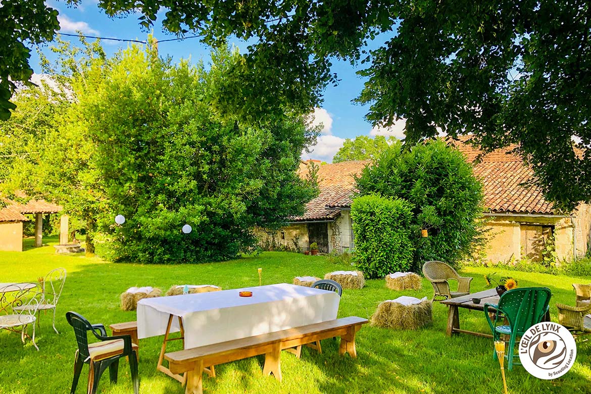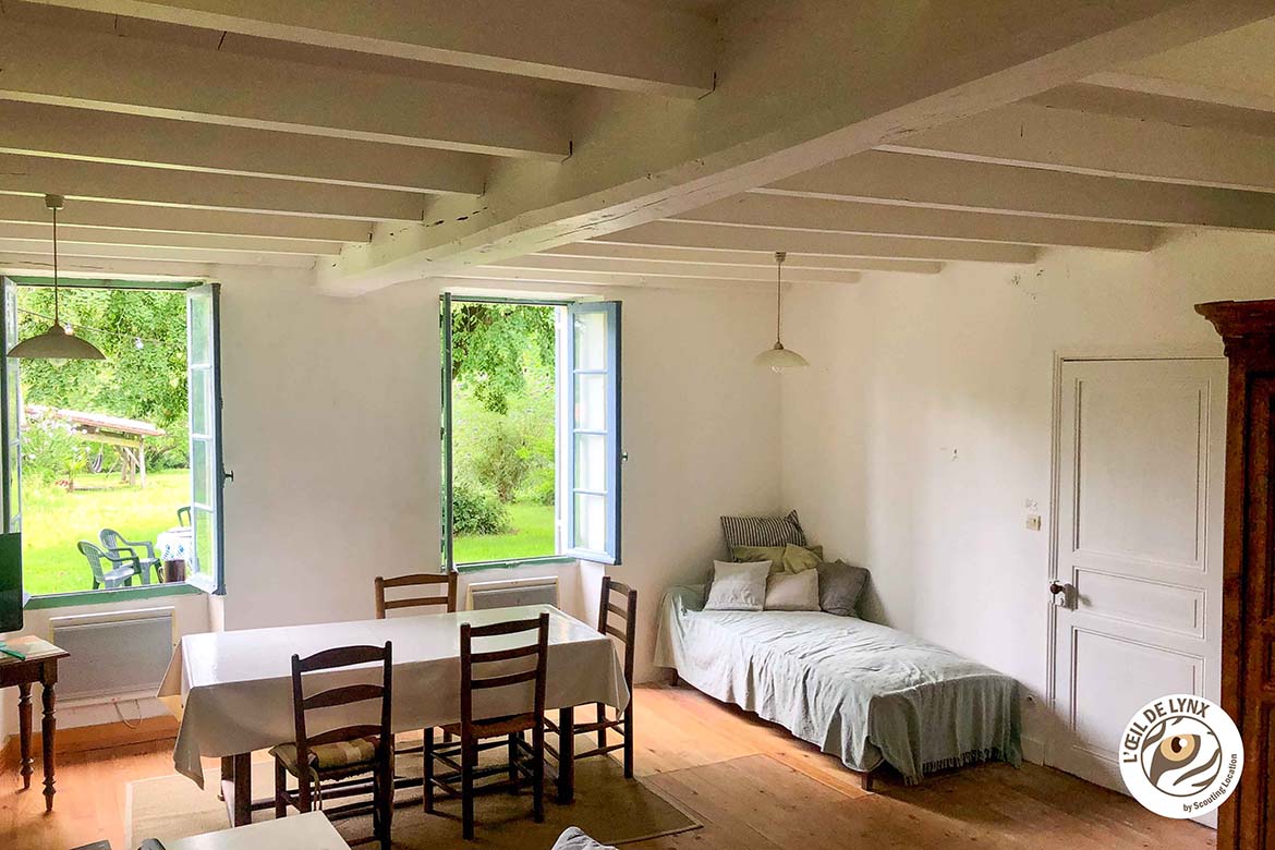 Ce décor peut accueillir des équipes nombreuses et l’espace disponible dans le hameau permet une installation facile du matériel. Elle fait partie d’un hameau comportant 4 maisons et 3 granges. Tout le hameau appartient à ma famille et peut être proposé en location. Les autres maisons n’ont pas été rénovées récemment, elles sont agréables l’été mais assez mal isolées l’hiver. Cependant, ce sont des maisons charentaises typiques avec de beaux matériaux (tommettes, planchers en chêne, cheminées…). Elle se trouve sur un terrain de plusieurs hectares entouré de champs et de forêts.