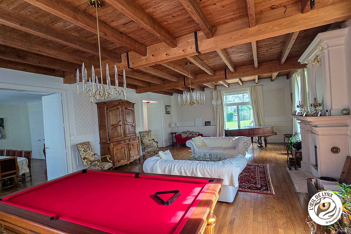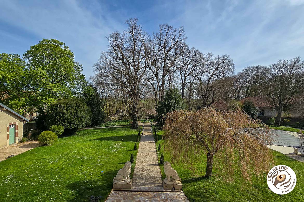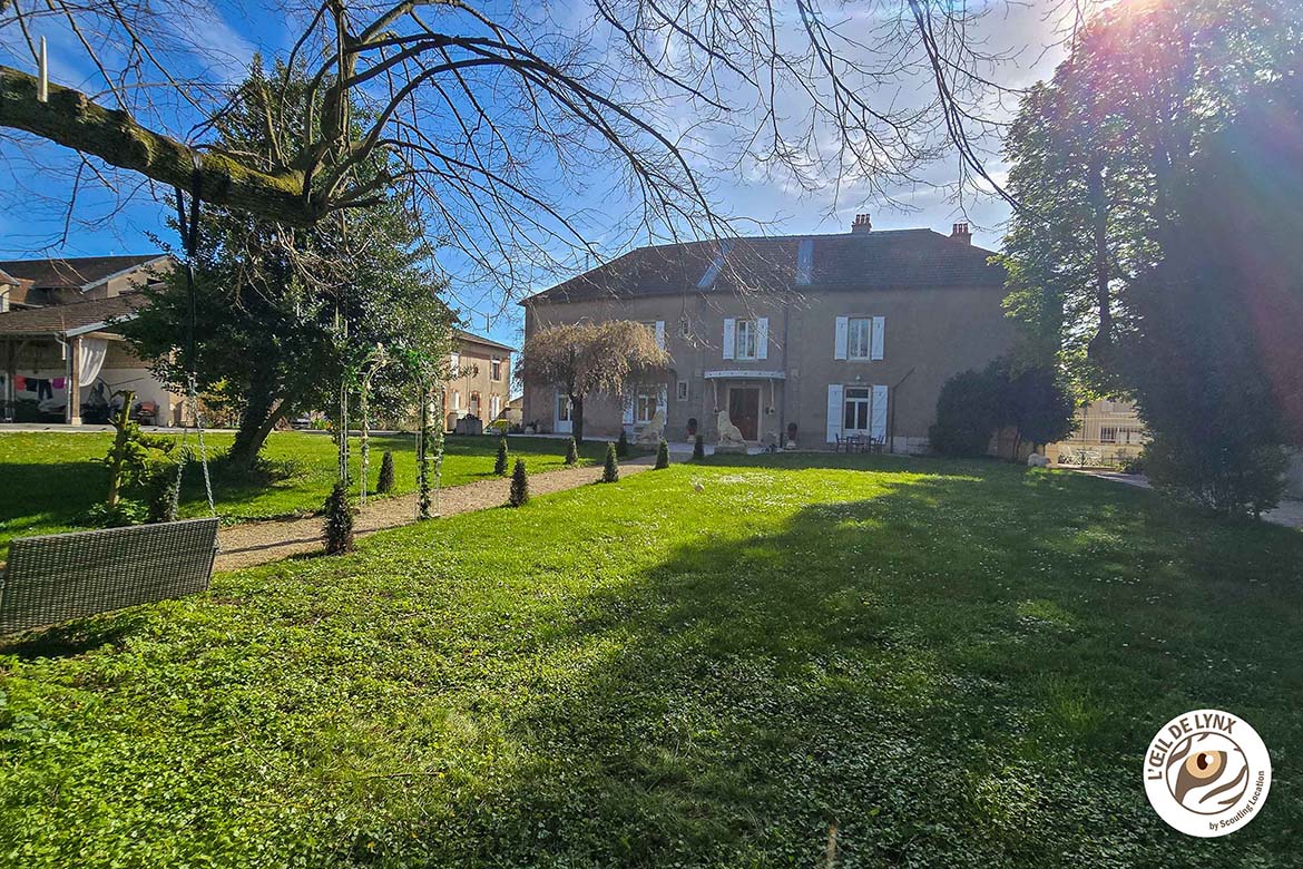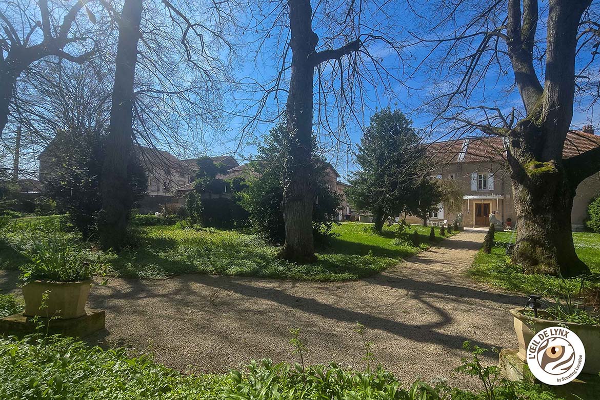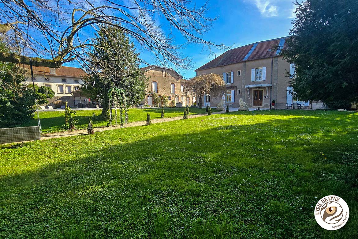 Maison de Maître au cœur d’un village lorrain typique et chargé d’histoire. Parc avec grands arbres multiséculaires, entièrement entouré de murs. Grandes dépendances. La maison d’habitation et les dépendances sont toutes tournées vers le parc créant un mini univers hors du temps. Hall d’entré avec escalier suspendu XIXème et galerie, sol en pierre de taille, salons en enfilade lumière du matin et de l’après midi, très grande luminosité. Belle hauteur sous plafond de 3 m à 3m3 selon les pièces. 420m2, sur 13 pièces, grand salon plus de 70 m2 , cheminées, parquets de chêne, fourneau en faïence. Cuisine avec cheminée monumentale et carreaux de ciment au sol. Mobilier ancien et moderne. Piscine et jacuzzi. Le village a été construit autour de la maison, les 2 rues du villages mènent toutes deux face aux portails de la propriété, l’un monumental avec des ferronneries de Jean Lamour comme la place Stanislas à Nancy, l’autre vous transporte dans les années 20. Une fois passé les portails,  la sérénité vous envahi, le parfum des tilleuls vous invite à flâner dans le parc, ou à vous laisser enivrer sur la balancelle à la branche d’un tilleul tricentenaire. Remontez l’allée et appréciez le soleil traversant la maison, la demeure des comtes d’une vieille famille Lorraine s’offre à vous, voyagez à travers 6 siècles d’histoire de l’ancienne demeure seigneuriales aux murs de plus 1.2m d’épaisseur,  aux croix de Lorraine symbole des patriotismes lorrain d’abord, français ensuite, à quelques mètres de la frontière d’après 1870, aux traces laissées dans la cave par les soldats américain en 1944, jusqu’aux salons confortables de nos jours, une maison qui traverse les siècles hors du temps.