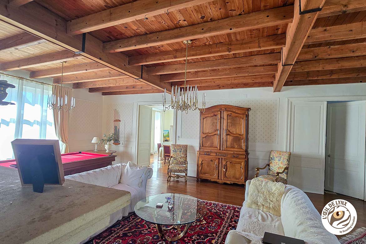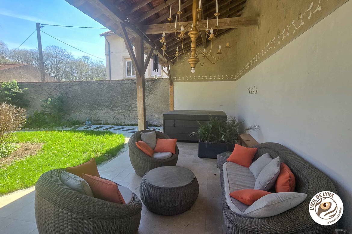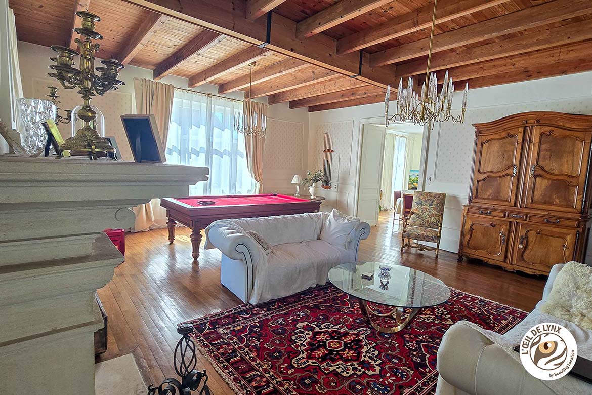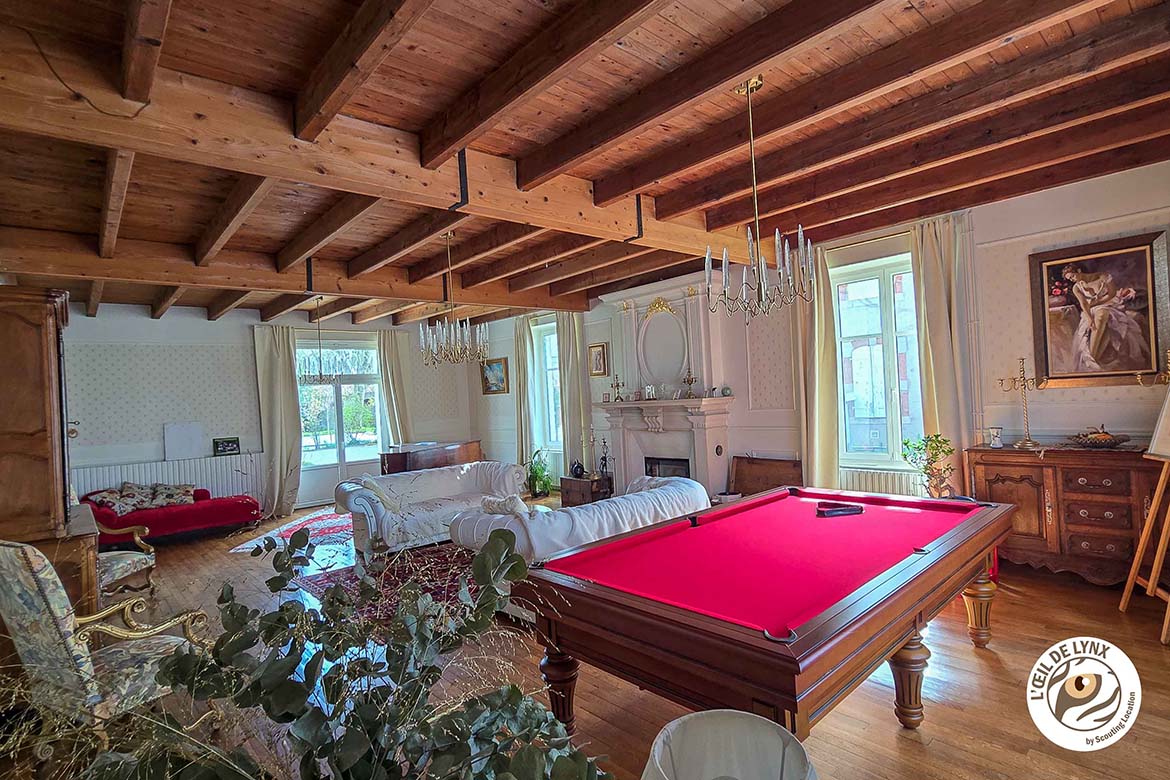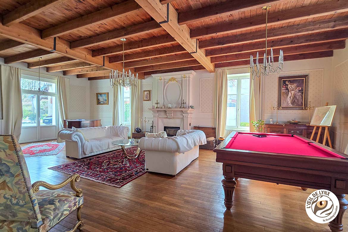 Maison de Maître au cœur d’un village lorrain typique et chargé d’histoire. Parc avec grands arbres multiséculaires, entièrement entouré de murs. Grandes dépendances. La maison d’habitation et les dépendances sont toutes tournées vers le parc créant un mini univers hors du temps. Hall d’entré avec escalier suspendu XIXème et galerie, sol en pierre de taille, salons en enfilade lumière du matin et de l’après midi, très grande luminosité. Belle hauteur sous plafond de 3 m à 3m3 selon les pièces. 420m2, sur 13 pièces, grand salon plus de 70 m2 , cheminées, parquets de chêne, fourneau en faïence. Cuisine avec cheminée monumentale et carreaux de ciment au sol. Mobilier ancien et moderne. Piscine et jacuzzi. Le village a été construit autour de la maison, les 2 rues du villages mènent toutes deux face aux portails de la propriété, l’un monumental avec des ferronneries de Jean Lamour comme la place Stanislas à Nancy, l’autre vous transporte dans les années 20. Une fois passé les portails,  la sérénité vous envahi, le parfum des tilleuls vous invite à flâner dans le parc, ou à vous laisser enivrer sur la balancelle à la branche d’un tilleul tricentenaire. Remontez l’allée et appréciez le soleil traversant la maison, la demeure des comtes d’une vieille famille Lorraine s’offre à vous, voyagez à travers 6 siècles d’histoire de l’ancienne demeure seigneuriales aux murs de plus 1.2m d’épaisseur,  aux croix de Lorraine symbole des patriotismes lorrain d’abord, français ensuite, à quelques mètres de la frontière d’après 1870, aux traces laissées dans la cave par les soldats américain en 1944, jusqu’aux salons confortables de nos jours, une maison qui traverse les siècles hors du temps.