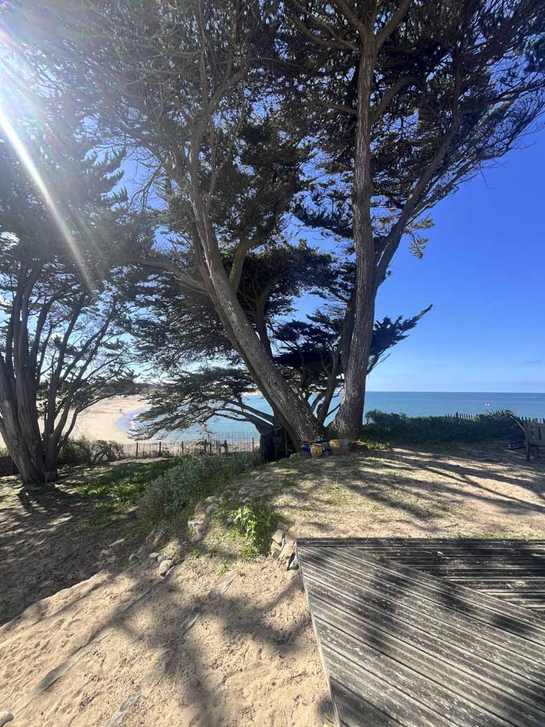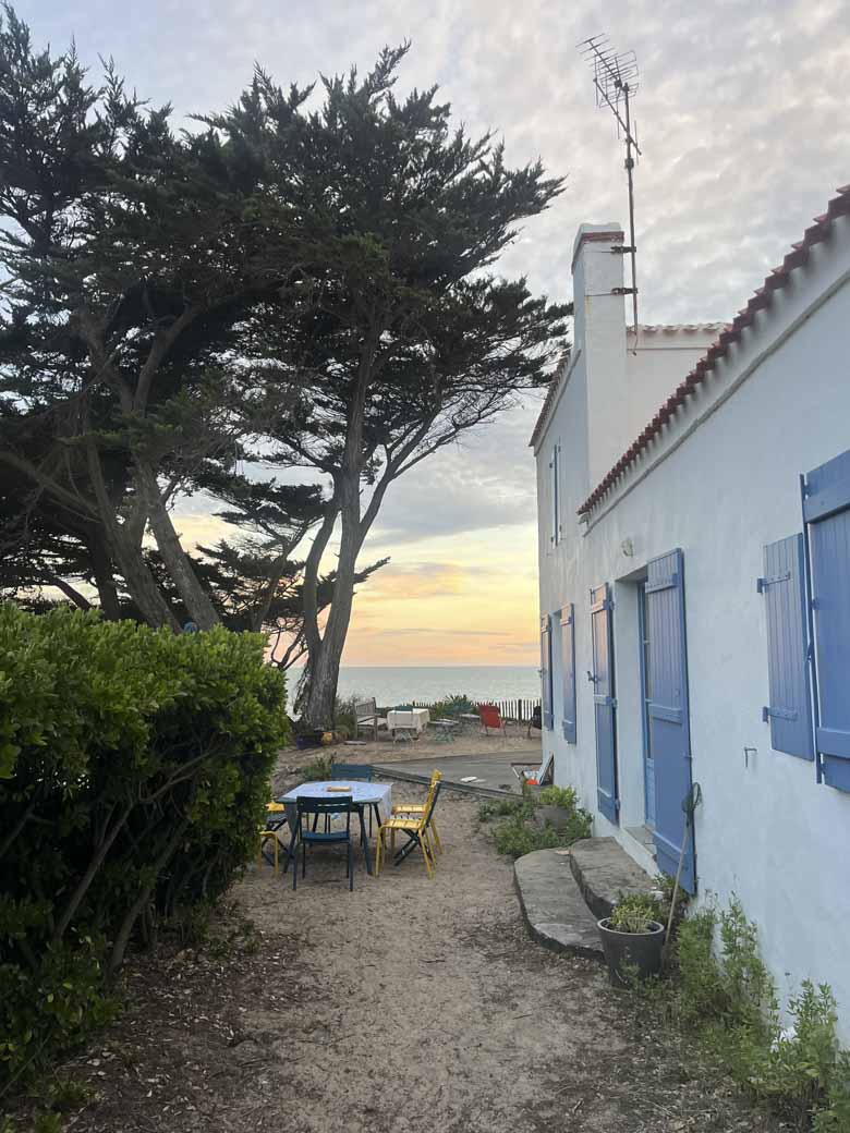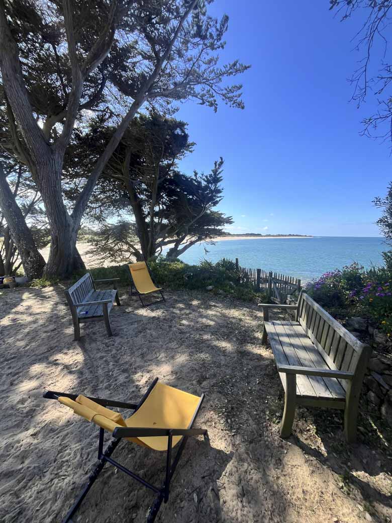 Surnommée Amici Villa, elle dégage une atmosphère rare : celle des refuges maritimes où le temps se suspend, entre mémoire des hommes et puissance des éléments. L’été venu, aux journées, passées sur les chiliennes, le temps est suspendu avec le brouhaha de la plage en contre-bas ; aux longues soirées, de grandes tablées s’installent face à l’océan. Un peu de musique flotte dans l’air, les rires se mêlent au vent, sous l’ombre majestueuse des pins maritimes. Un décor vivant, habité, profondément cinématographique.
