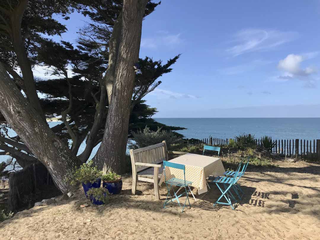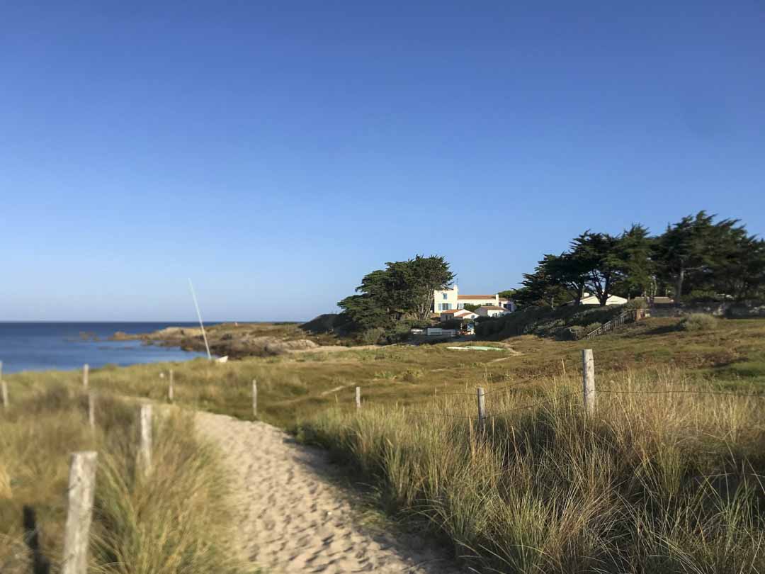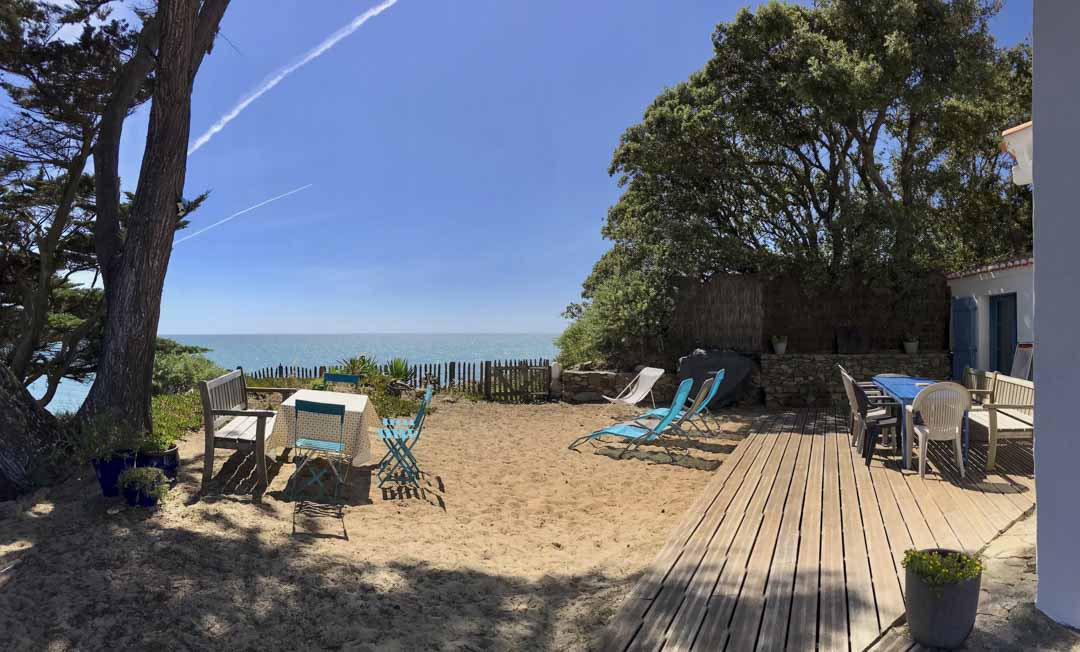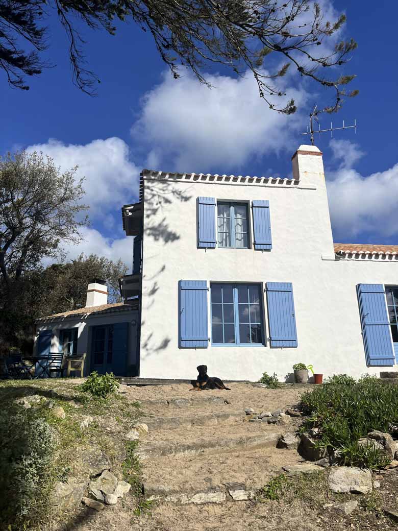 En surplomb de la baie de Luzéronde, ouverte sur l’immensité de l’Atlantique, cette maison rare semble posée au bord du monde. Un sentier mène directement à la plage ; autour, les dunes, la forêt et les marais composent un paysage demeuré intact. Ici, la nature impose son rythme, sa lumière, son silence. Le lieu possède cette force brute des décors que l’on n’invente pas. Maison familiale typiquement vendéenne, préservée dans son jus, elle a gardé l’âme des maisons habitées longtemps : matières patinées, objets choisis sans apprêt, simplicité juste, charme discret. Rien d’ostentatoire. Tout respire l’authenticité. Le regard se porte d’abord vers l’horizon, la course des nuages, les pins courbés par le vent, la mer changeante. Depuis la terrasse et le jardin clos, arboré de beaux sujets, la vue embrasse toute la baie. Le soir, les couchers de soleil y prennent des teintes spectaculaires, dans une lumière ample et dorée.