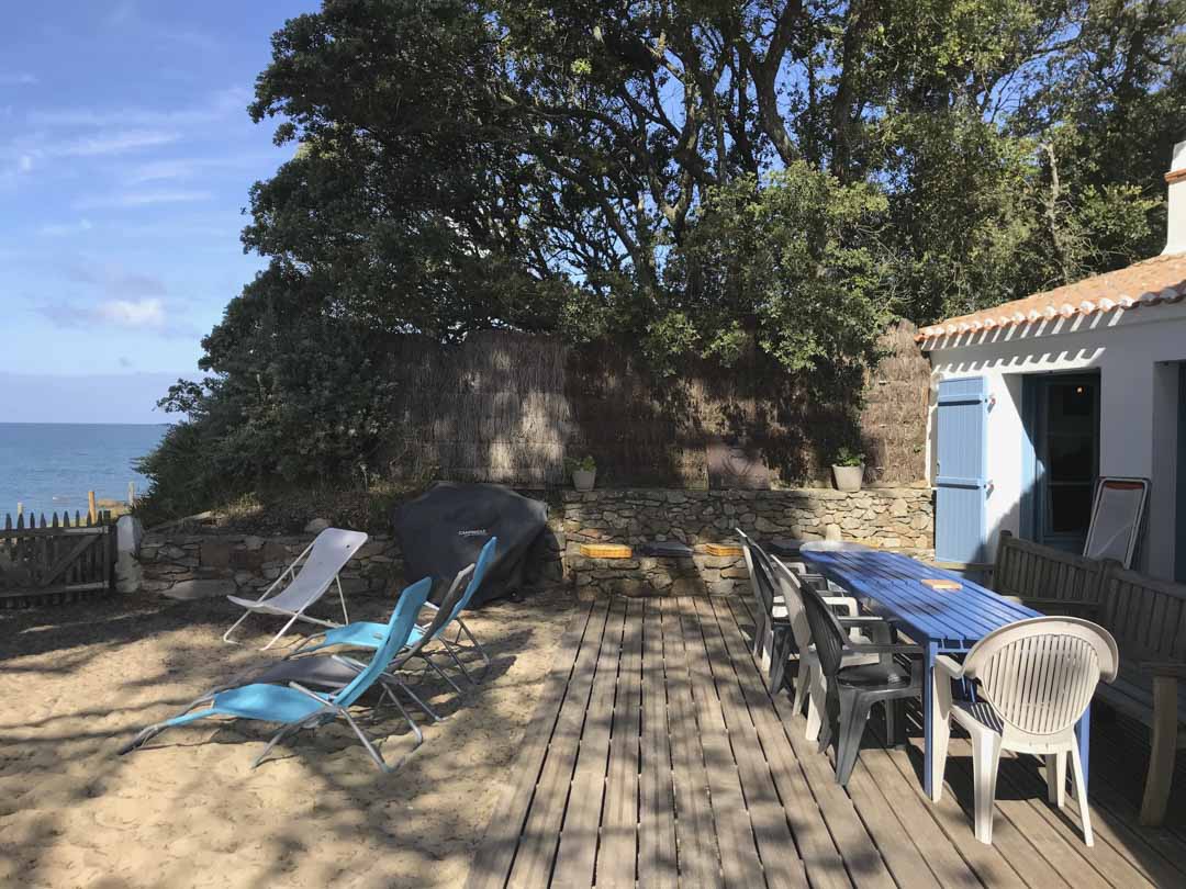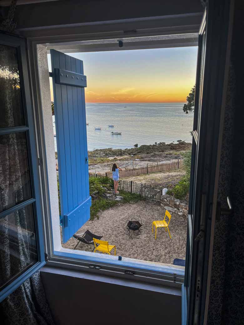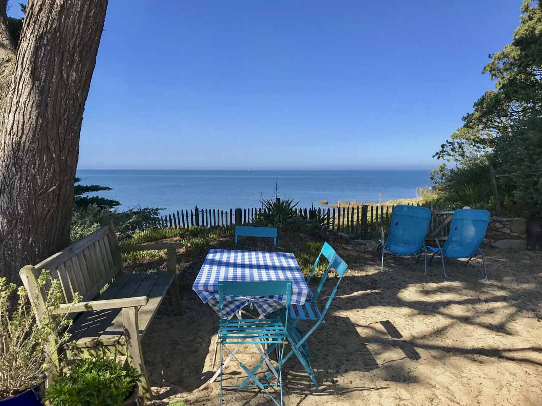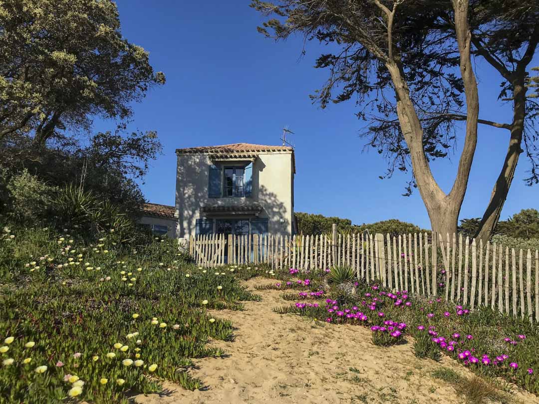 La propriété dispose de neuf chambres, réparties entre la maison principale (quatre chambres) et trois dépendances(cinq chambres), offrant de multiples possibilités d’hébergement, de loges ou d’espaces de production pour des tournages de plusieurs jours. L’accès se fait discrètement par une venelle. Trois véhicules légers peuvent stationner sur place, complétés par un parking public gratuit à cinquante mètres. Les ruelles d’accès, étroites, participent au charme singulier du site. Le lieu porte également les traces de l’Histoire. Durant la Seconde Guerre mondiale, la maison fut occupée comme poste d’observation stratégique. Lors de sa restauration, de nombreuses douilles furent retrouvées dans le sable. Sur la baie, un blockhaus veille encore, solitaire, sans autre construction alentour. Plus tard, la maison fut aussi habitée par un artiste peintre.