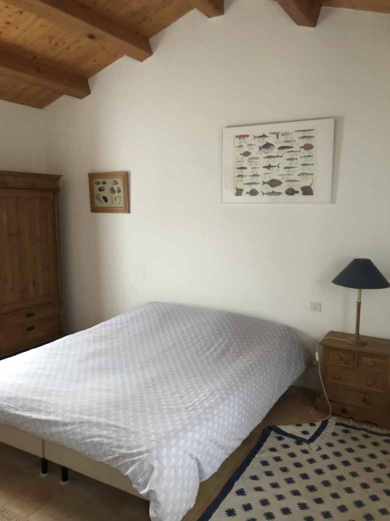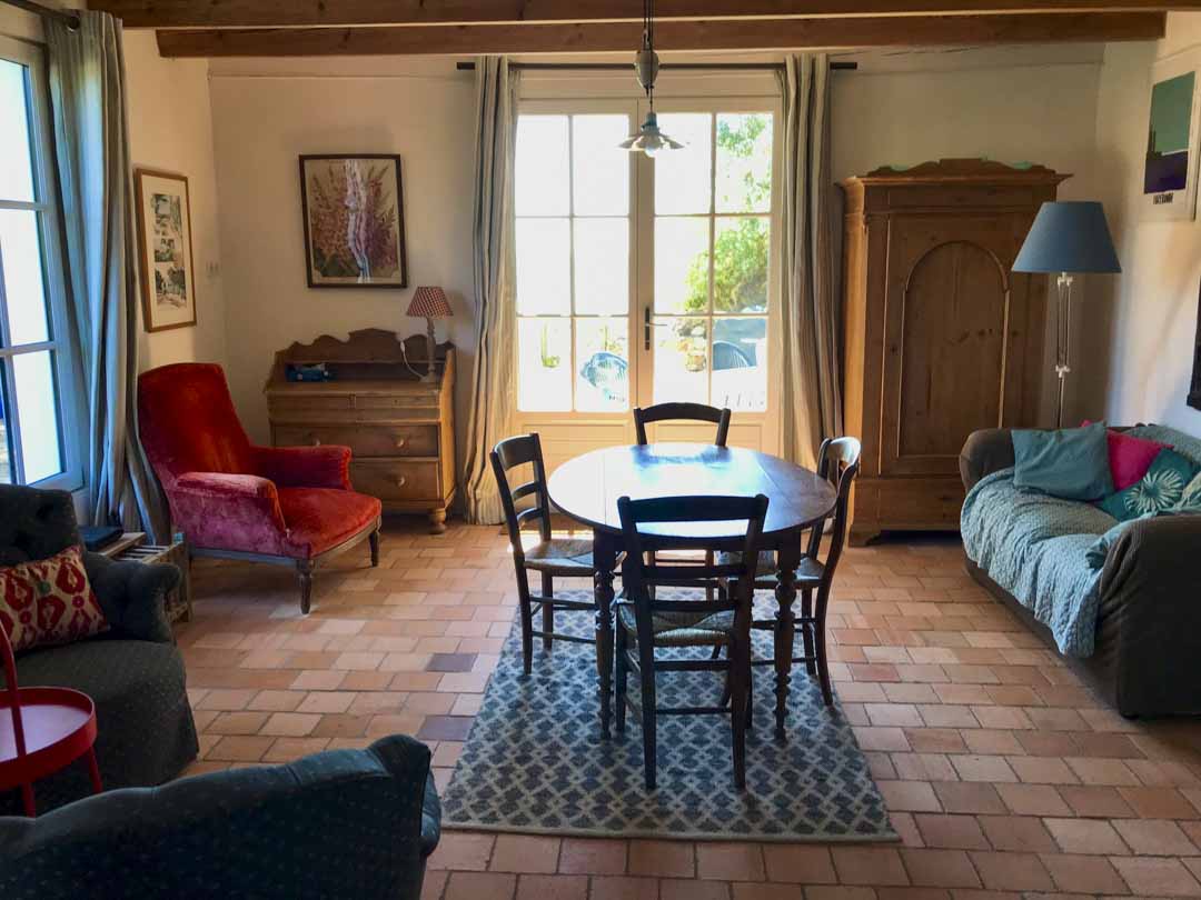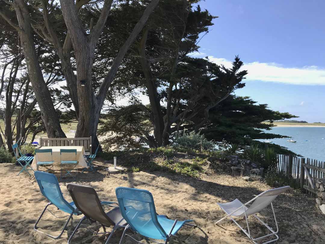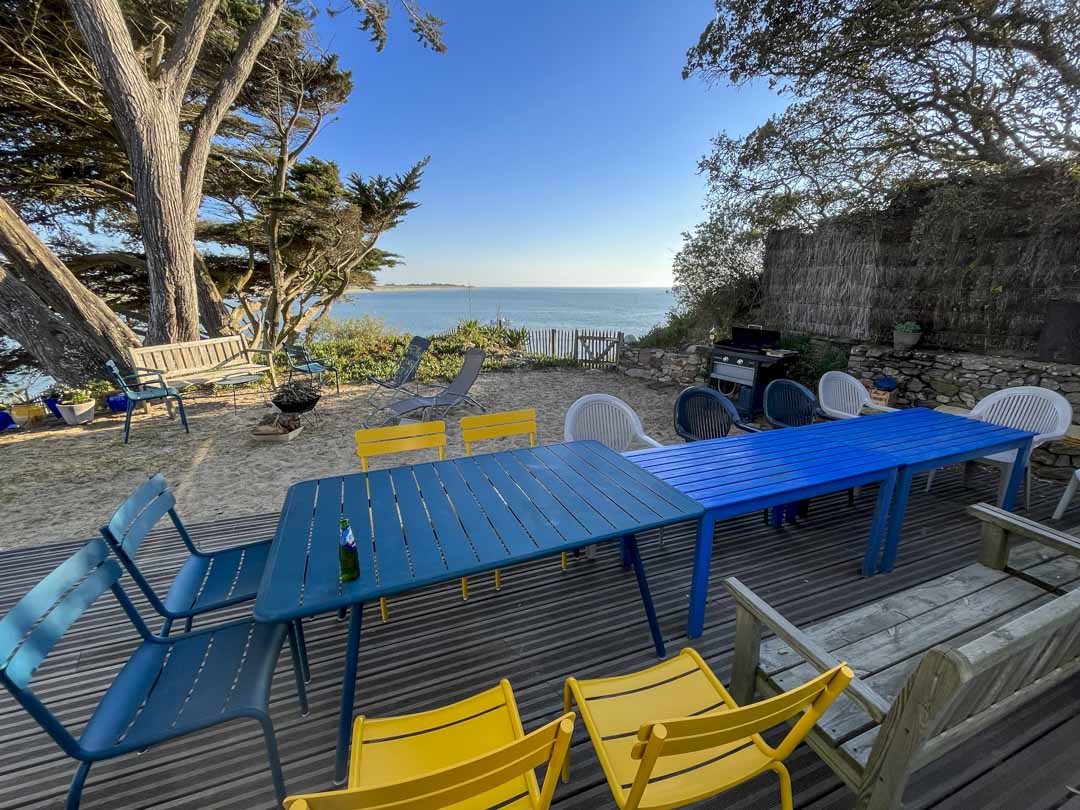 La propriété dispose de neuf chambres, réparties entre la maison principale (quatre chambres) et trois dépendances(cinq chambres), offrant de multiples possibilités d’hébergement, de loges ou d’espaces de production pour des tournages de plusieurs jours. L’accès se fait discrètement par une venelle. Trois véhicules légers peuvent stationner sur place, complétés par un parking public gratuit à cinquante mètres. Les ruelles d’accès, étroites, participent au charme singulier du site. Le lieu porte également les traces de l’Histoire. Durant la Seconde Guerre mondiale, la maison fut occupée comme poste d’observation stratégique. Lors de sa restauration, de nombreuses douilles furent retrouvées dans le sable. Sur la baie, un blockhaus veille encore, solitaire, sans autre construction alentour. Plus tard, la maison fut aussi habitée par un artiste peintre.